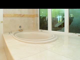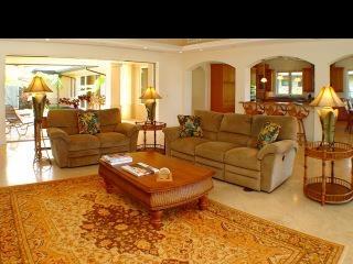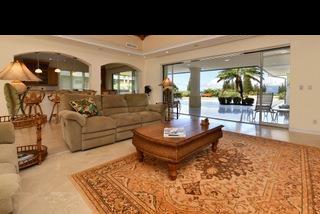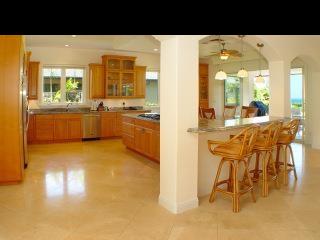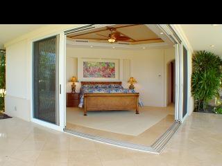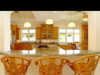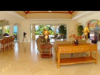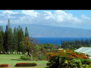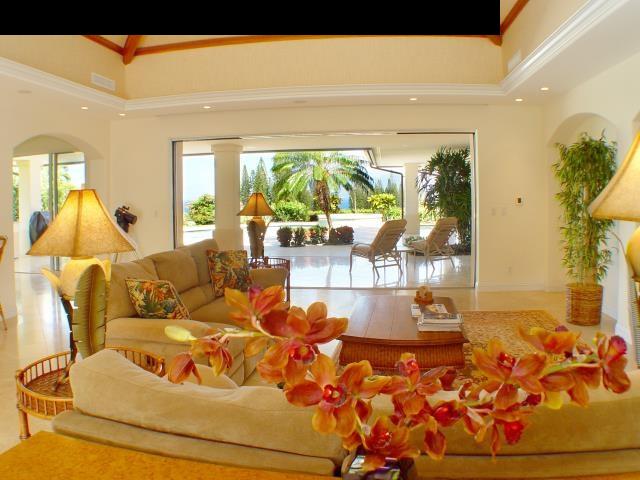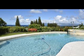 Situated in the gated community of Pineapple Hill Estates at Kapalua, this custom designed Hawaiian home, completed in 2004, sits on a 20,656 sq. ft. lot overlooking the islands of Lanai and Molokai, and world famous Kapalua Bay Golf Course. Welcoming Central Villa style courtyard is enhanced with fountain. Fantastic sunset views and whale watching. State of the art media room with 85 inch screen that can double as a fourth bedroom. Storage closet pre-plumbed can be converted to a fifth bath. Custom kitchen with Brazilian Green Waterfall granite counters. Great room has Fleetwood sliding glass walls that open to the expansive 1600 sq. ft. lanai with pool and spa. Master wing bedroom features floor to ceiling glass walls that open to gorgeous ocean views. Cathedral ceilings throughout with authentic Tapa cloth finish provide an airy feel. The perfect home for entertaining or just relaxing. Pool has fiber optic colored light system.