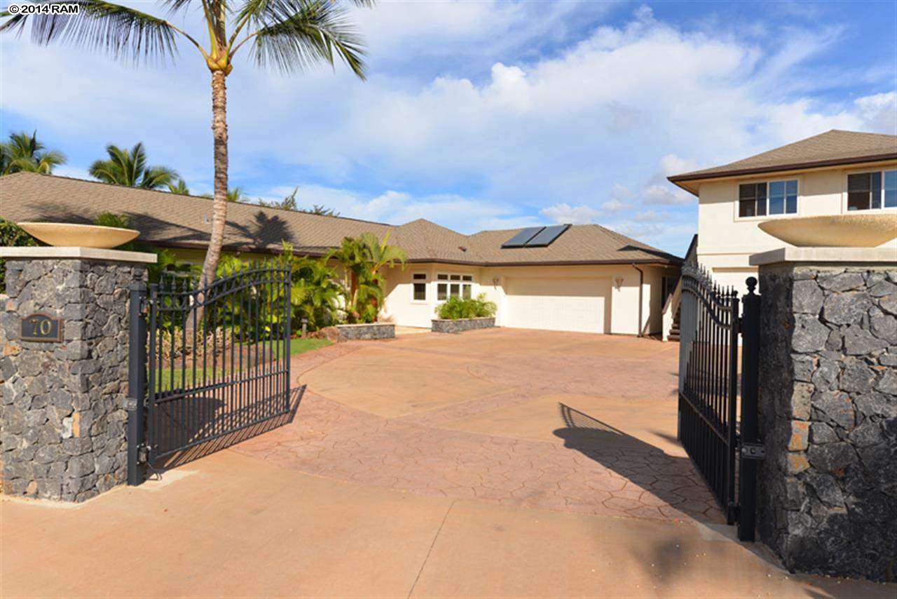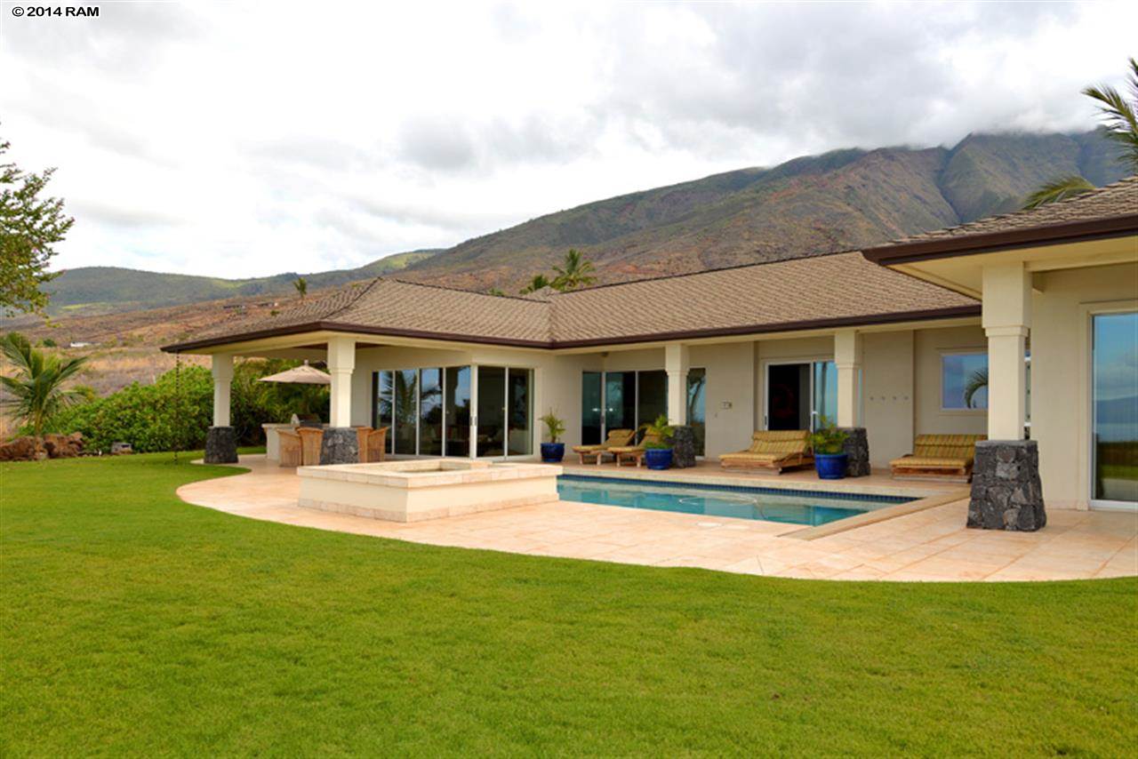 Elegant Bali modern estate on over 1.6 acres. Located on one of the most beautiful settings anywhere on Maui with unobstructed views of Kahoolawe, Lanai, and Molokai. Double gated entry for privacy. All who visit this home comment on the beauty of the home and the sense of peace and tranquility of its setting. Not included in the homes square footage is a separate structure with 864 sq. feet including 2 oversize auto doors, work bench and storage area. Above the garage and storage area is an additional office/storage of approx. 864 sq. ft. with a permitted full bath. Work out room with equipment also included. A separate storage shed of 140 sq. ft. located behind the home. Small Golf pitching area with two greens located among areca palm farm. This is a beautifully maintained property. A must see for the discerning buyer. This is a CPR property with the main house and barn, and listing agent is Owner.