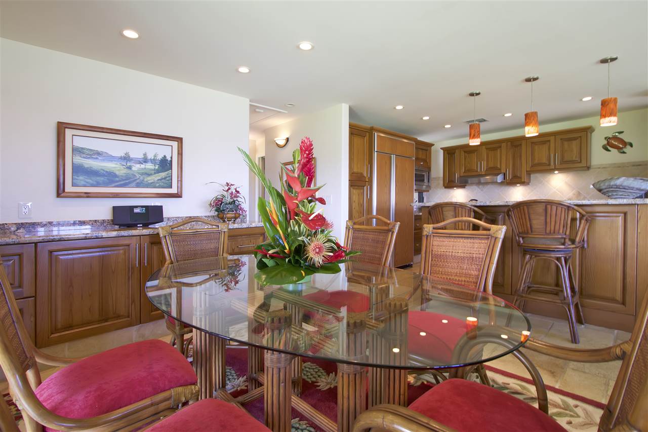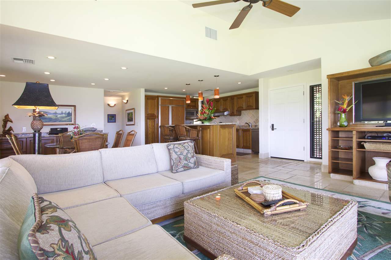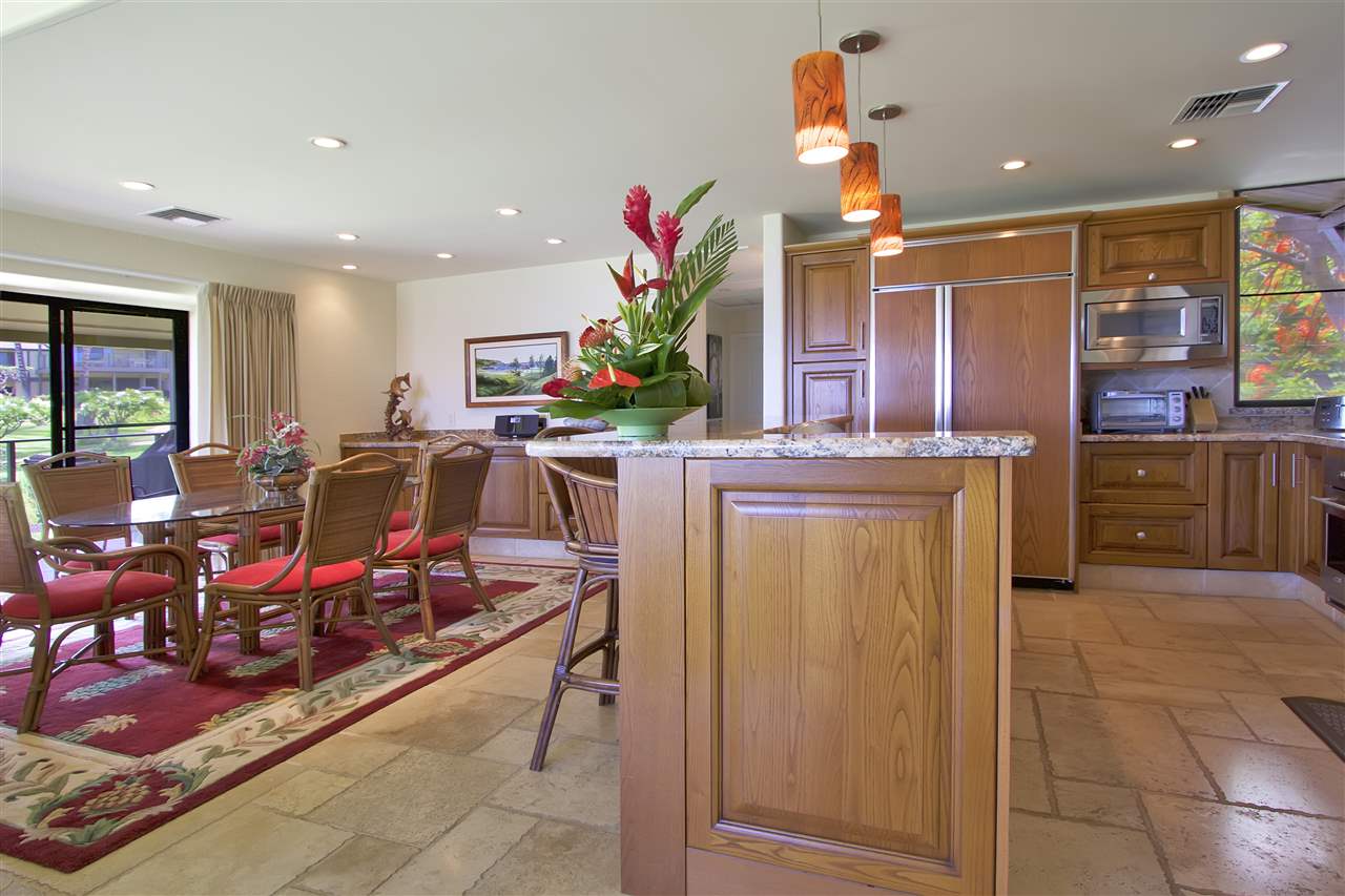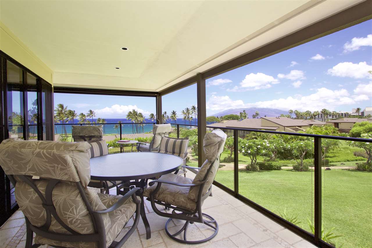 Island elegance in furnishings and ocean views create this exceptional 2nd floor, 2 bedroom, 2 bath residence. The wrap around lanai brings in Waileas sweeping ocean and mountain views to the open living, dining and kitchen area. The ideal location at the south edge of the property is close to the water yet elevated to enhance ocean views, also providing complete privacy with a stand of full-growth trees and lush tropical greenery. Completely remodeled and redesigned with open island kitchen, expanded bedrooms, Italian cabinetry, granite, marble, tile, glass and lighting create sophistication and comfort. Island style art, and accessories reflect the beauty of Maui in every room. This location in Wailea Elua is a short stroll to the beautiful garden pavilion, the pool pavilion, Waileas paved 1.5 mi. walking path, and Ulua/Mokapu Beach. Wailea Eluas fully staffed front gate ensures privacy for all residences and guests. Highly desired vacation rental property can be conveyed with existing bookings into the winter of 2016/2017.