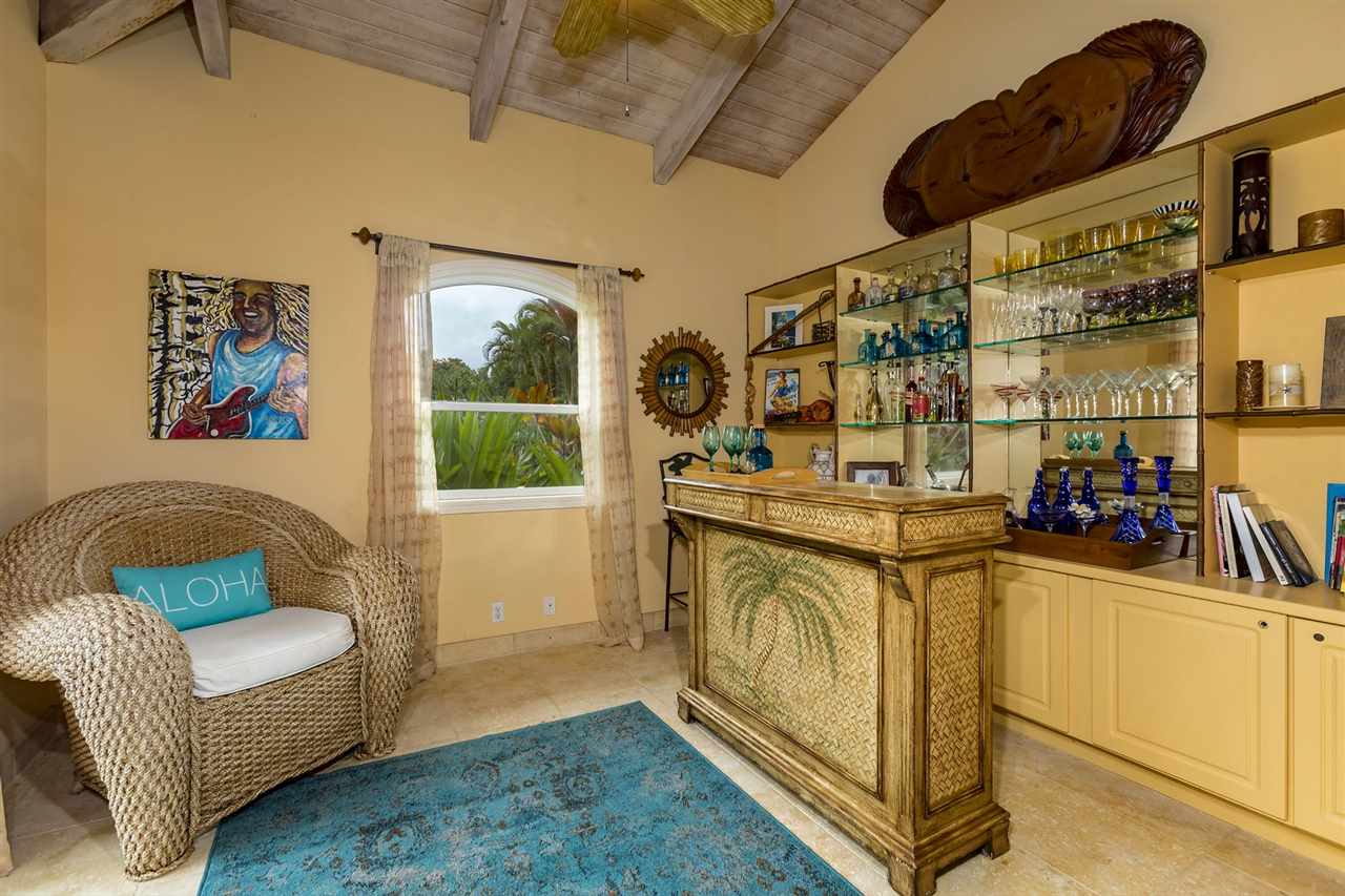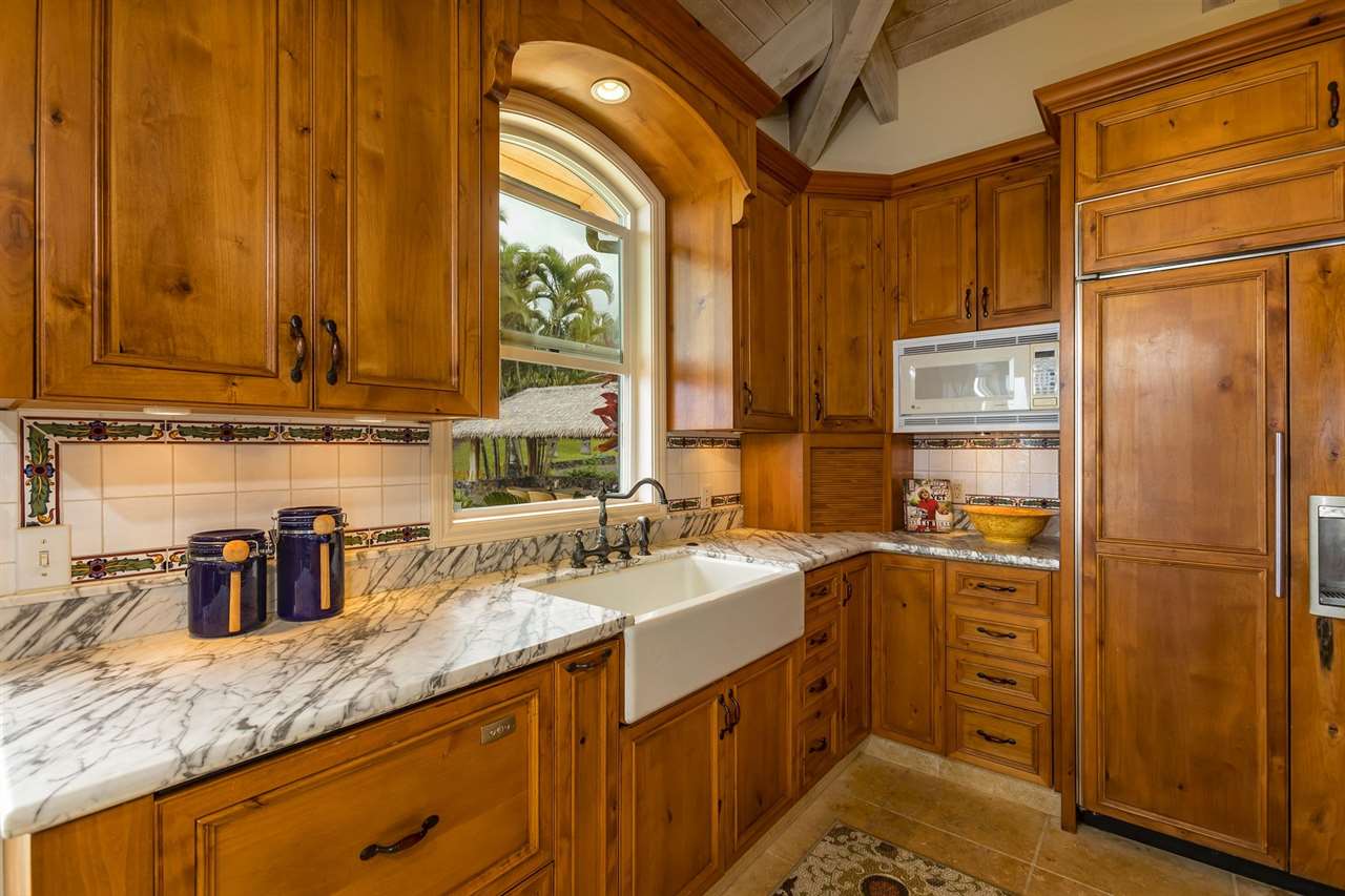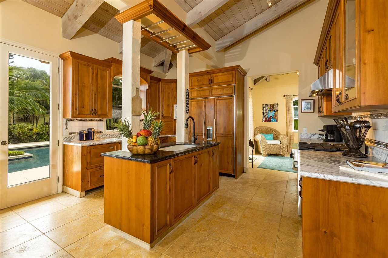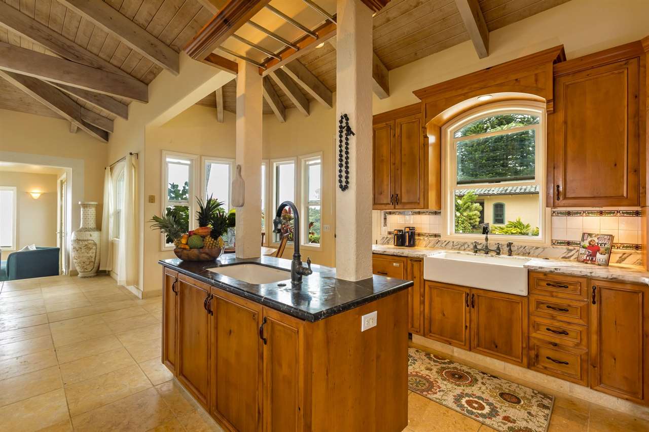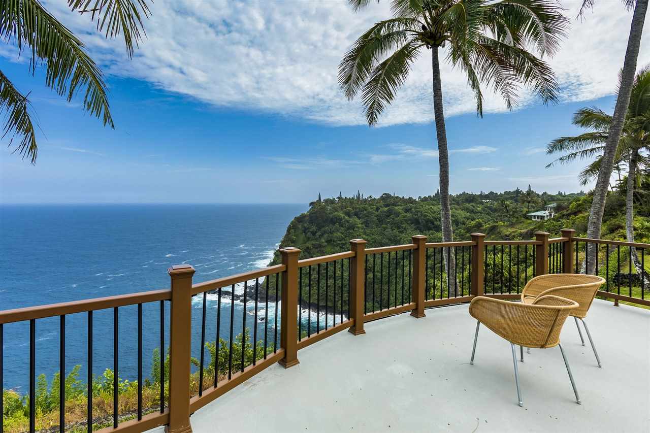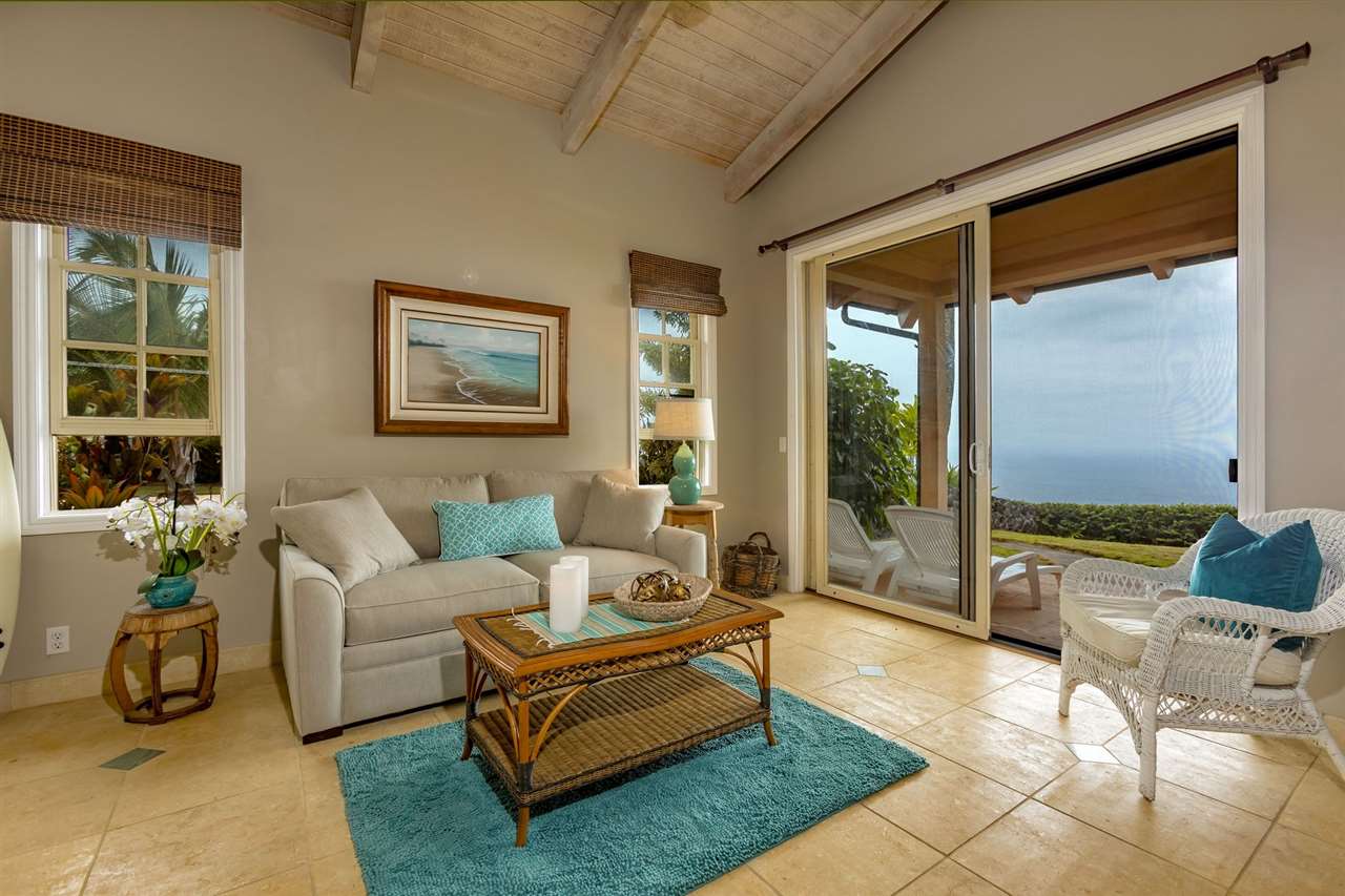 Set upon the magnificent cliffs of Waipio Bay, an oceanfront villa. Gracious & gated, the 9.82 acreage embraces solitude & seclusion. A stately palm lined drive, sprawling green lawns & flora as a flowing stream received you. A welcoming entrance extends to a single level home featuring expansive views of the blue Pacific, which are dynamic. Drawing you through the open floor plan, captivating views are ever present. A lovely country home with simplistic comforts & conveniences with pizazz. A gourmet kitchen, with European flair, where notable chefs have enjoyed memorable meals. The exterior settings propose features to reflect or to be active/engaged with family. The saline pool (with hot tub & cabana bath) craft an atmosphere of fitness or relaxation. An exhilarating venue for entertaining under the elongated Hawaiian pavilion featuring a brick pizza oven. A viewing deck for 'on top of the world' experiences. Hike to your own waterfall. Sport a round of 3 par golf, on site. Sway in an ocean breeze cradled within a hammock. The additional delightful ocean side cottage is a 'spa like' accommodation for guests. With sustainability in mind, a private well, water catchment, solar electric, Tilapia fish pond, fruit trees, & terraced vegetable gardens bring fulfillment. 20 miles from the airport, this rural locale offers discretion, privacy & quiet. An opportunity to retain one of Maui's most inimitable estates, all within a reasonable journey to local amenities.