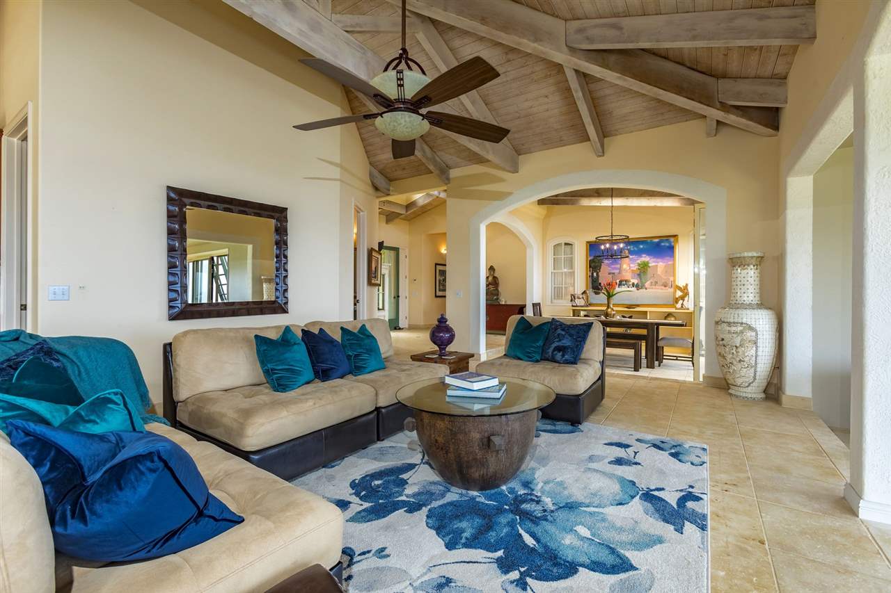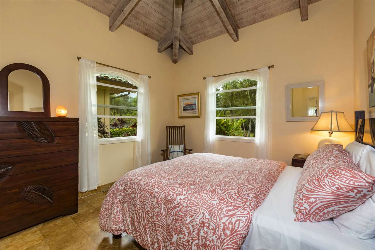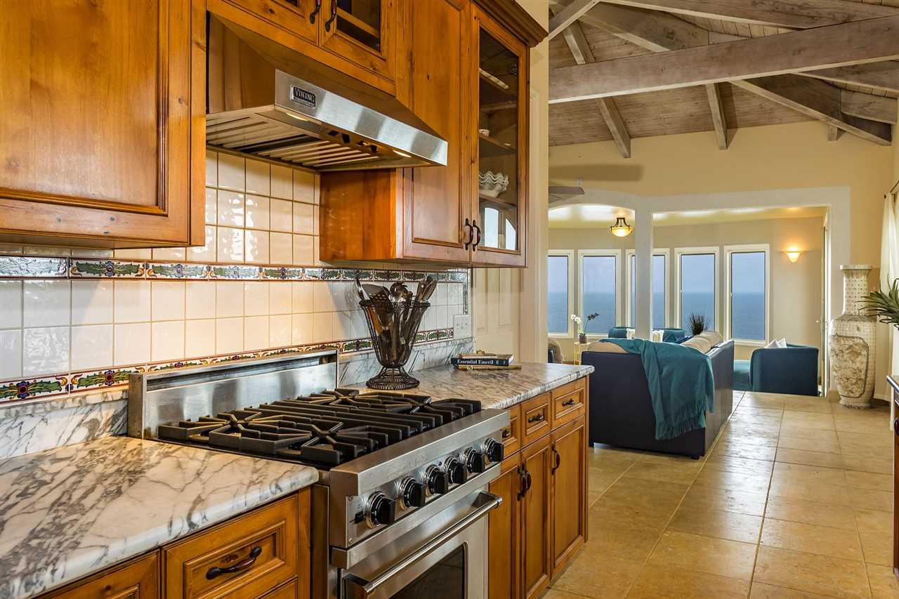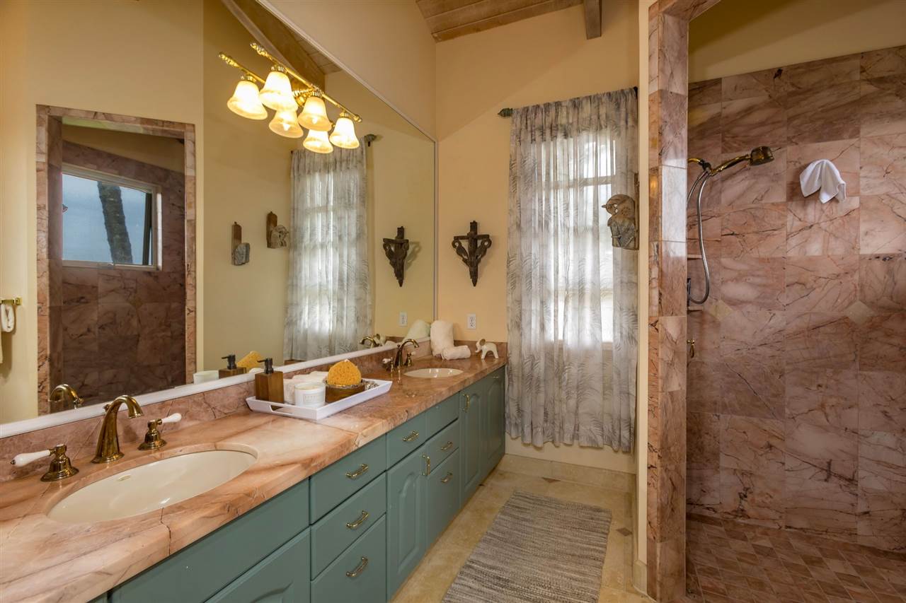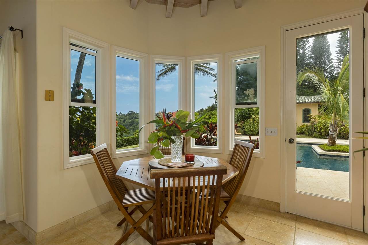 Set upon the magnificent cliffs of Waipio Bay, an oceanfront villa. Gracious & gated, the 9.82 acreage embraces solitude & seclusion. A stately palm lined drive, sprawling green lawns & flora as a flowing stream received you. A welcoming entrance extends to a single level home featuring expansive views of the blue Pacific, which are dynamic. Drawing you through the open floor plan, captivating views are ever present. A lovely country home with simplistic comforts & conveniences with pizazz. A gourmet kitchen, with European flair, where notable chefs have enjoyed memorable meals. The exterior settings propose features to reflect or to be active/engaged with family. The saline pool (with hot tub & cabana bath) craft an atmosphere of fitness or relaxation. An exhilarating venue for entertaining under the elongated Hawaiian pavilion featuring a brick pizza oven. A viewing deck for 'on top of the world' experiences. Hike to your own waterfall. Sport a round of 3 par golf, on site. Sway in an ocean breeze cradled within a hammock. The additional delightful ocean side cottage is a 'spa like' accommodation for guests. With sustainability in mind, a private well, water catchment, solar electric, Tilapia fish pond, fruit trees, & terraced vegetable gardens bring fulfillment. 20 miles from the airport, this rural locale offers discretion, privacy & quiet. An opportunity to retain one of Maui's most inimitable estates, all within a reasonable journey to local amenities.