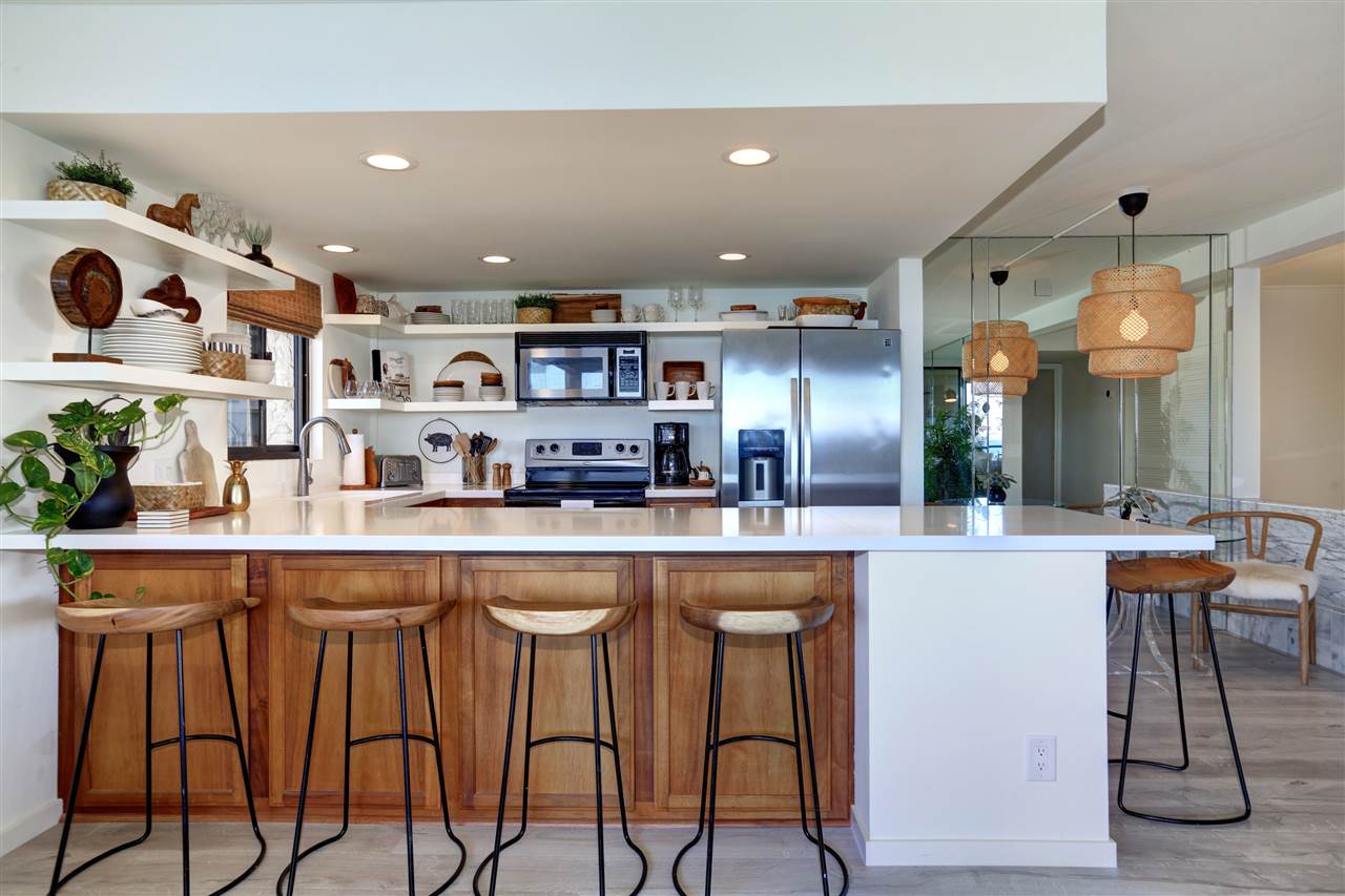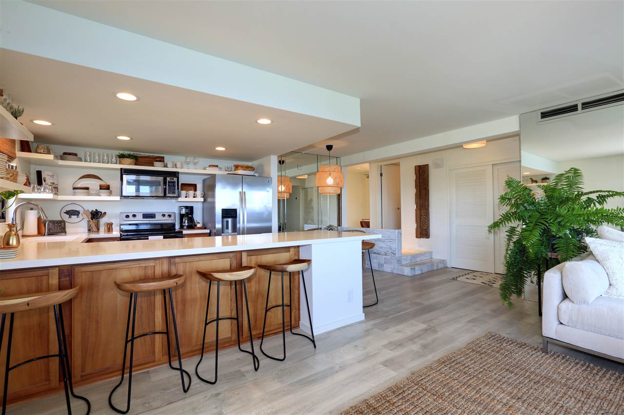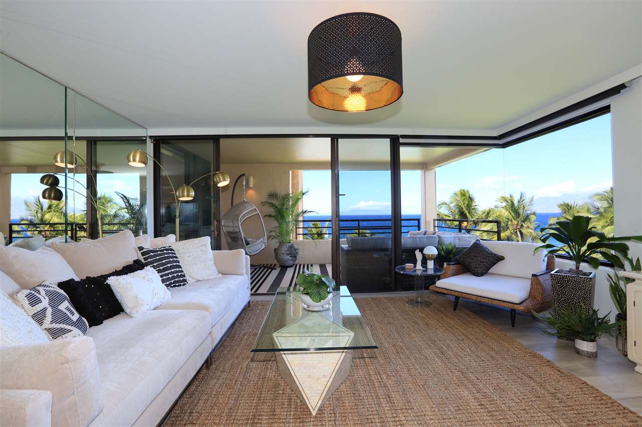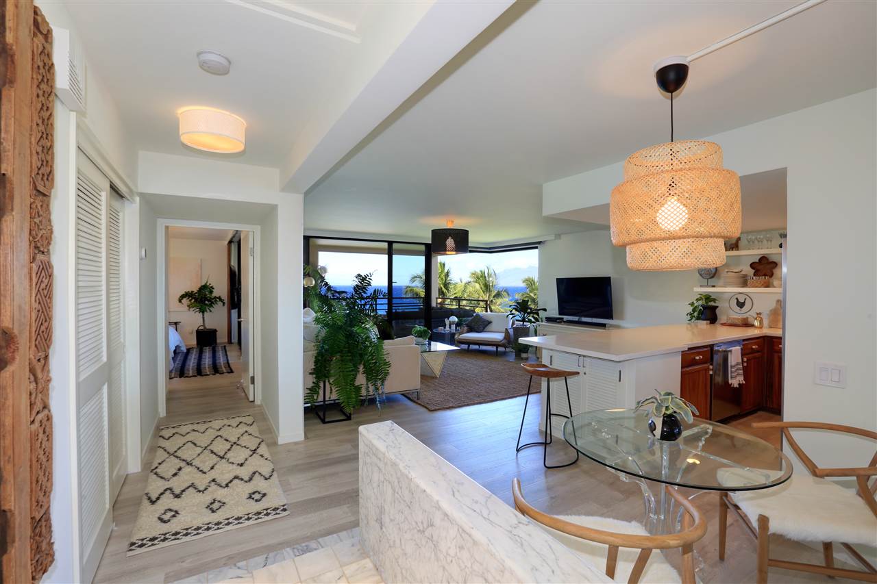 If you've seen Polo 708 you'll remember the priceless ocean and outer island views-enduring value that will never change. But everything else has changed for the better! Polo708 is back on the market after an amazing remodel. This is an exciting and entirely new offering. The interior is open, light and bright, fully furnished with creative flair and glamour. There is nothing else quite like this! Polo Beach Club offers so much that is unique and incomparable. This solid concrete structure is mere steps from the sandy shore. Every one of the 71 two-bedroom, two-bath units features fabulous ocean views, with spacious covered lanais you can live on. However, the views from the seventh and eighth floor locations may never be duplicated. Setback rules and elevation restrictions have changed since this grand property first graced the Makena coastline, "way out in the middle of nowhere". Now Polo sits amid lavish dining and entertainment options in neighboring first-class hotel resorts. Yet our intimate association with the sea and sand remain unaltered. Additional Polo features include underground parking, central air, superior concrete construction, ocean side pool and spa, lush landscaping with community herb garden and barbecues. But in the end, it's all about the beach and the views. The sweeping view from this newly revitalized Polo 708 is stunning. Breathtaking. Inspiring. This is a turn-key property, currently offered as a much-in-demand, high -end vacation rental.