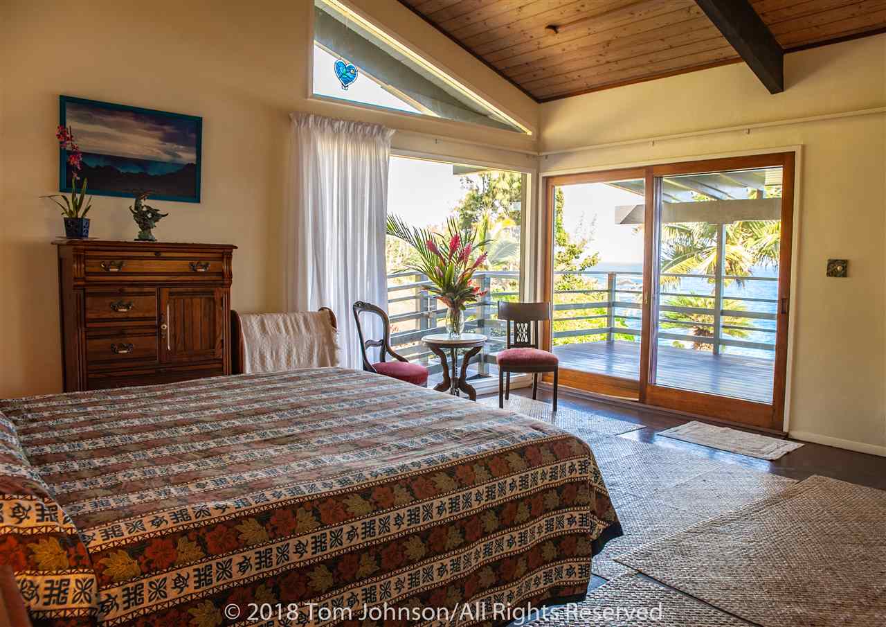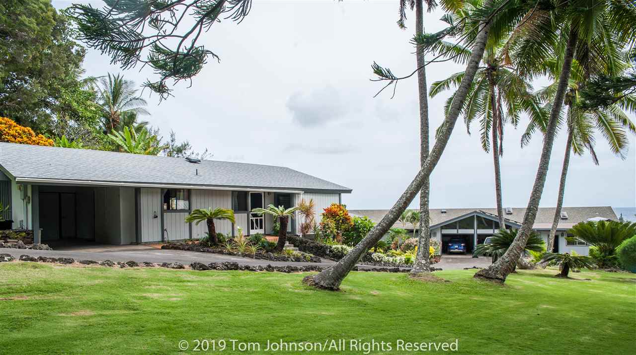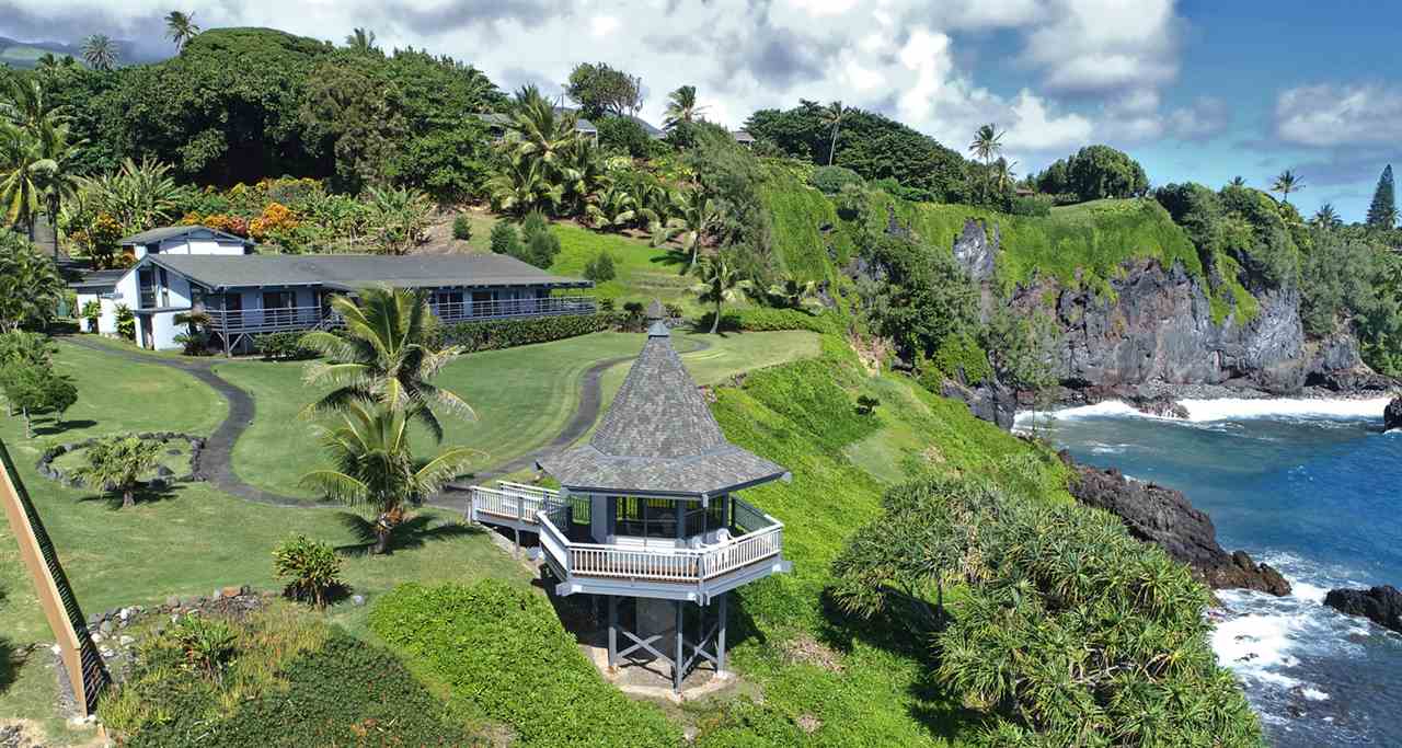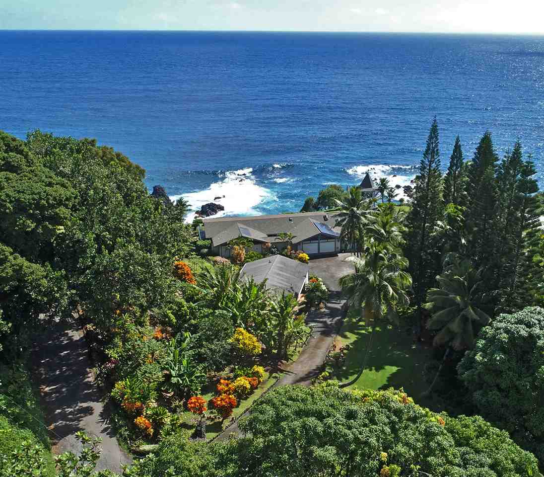 This in one of Hanas most iconic oceanfront estates and a unique opportunity to own a spectacular property along Hanas famed Gold Coast. The excellent location in the Puuiki neighborhood of Hana offers privacy while being conveniently located only minutes from Hana Town, Koki Beach and world famous Hamoa Beach. Relax into island life with sweeping coastal views from most rooms, as well as from the impressive 120-foot Ipe wood lanai. There is also a rare, permitted gazebo situated on the oceans edge. Its a perfect place for entertaining friends while watching whales, turtles and dolphins swim by, or just relax in solitude and catch the multi-colored sun and moon rises famous in East Maui. Some of the special features of the main residence are Mahogany doors, Koa cabinets throughout, Teak flooring in the family room and hallway as well as exceptional and rare book-matched Koa paneling. A large master suite wing as well as two additional bedrooms and a total of two and a half bathrooms, allows for ample guests and privacy. There is a formal living/dining room, eat-in kitchen and a family room featuring a custom and original lava rock fireplace. All the main rooms include sliding doors to the lanai. The house includes a two-car garage, laundry room, covered entry lanai, a workshop/art studio and a separate two bedroom, one bath ohana with its own carport, laundry and covered lanai.