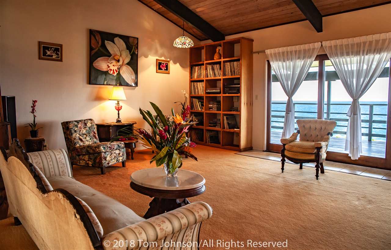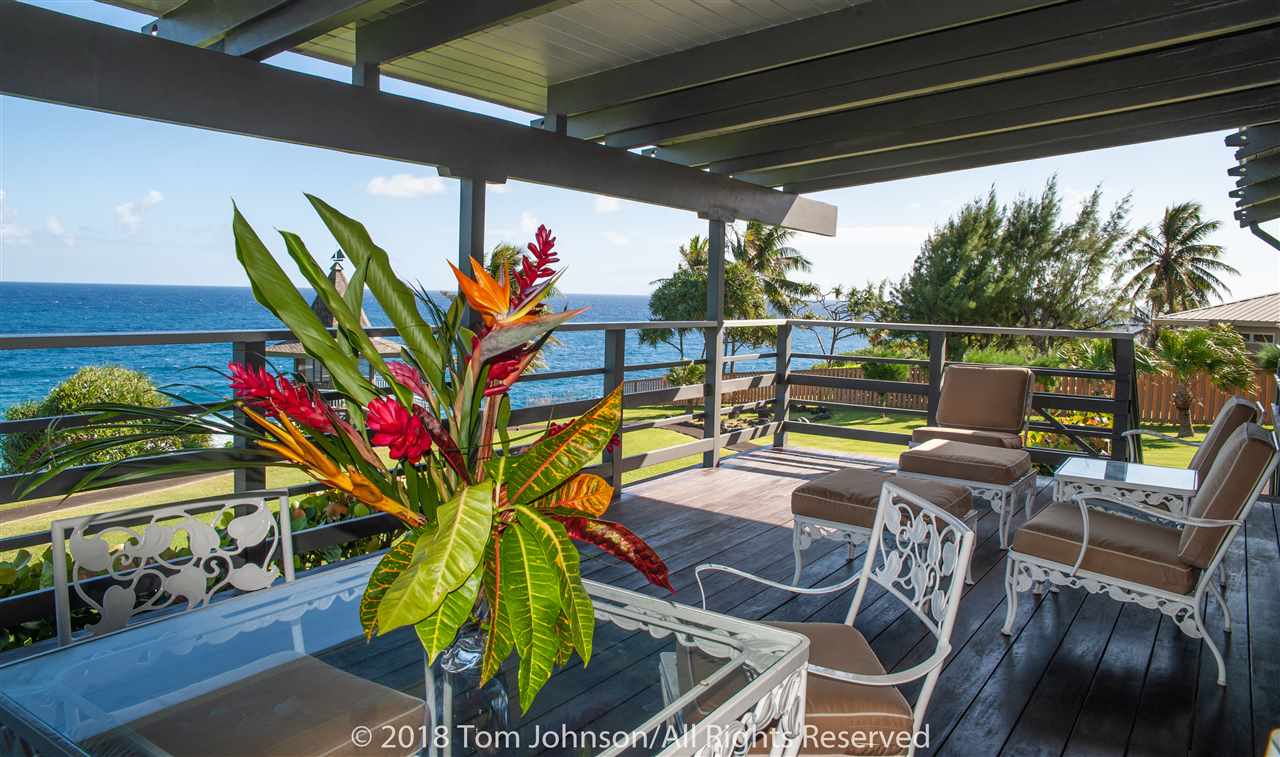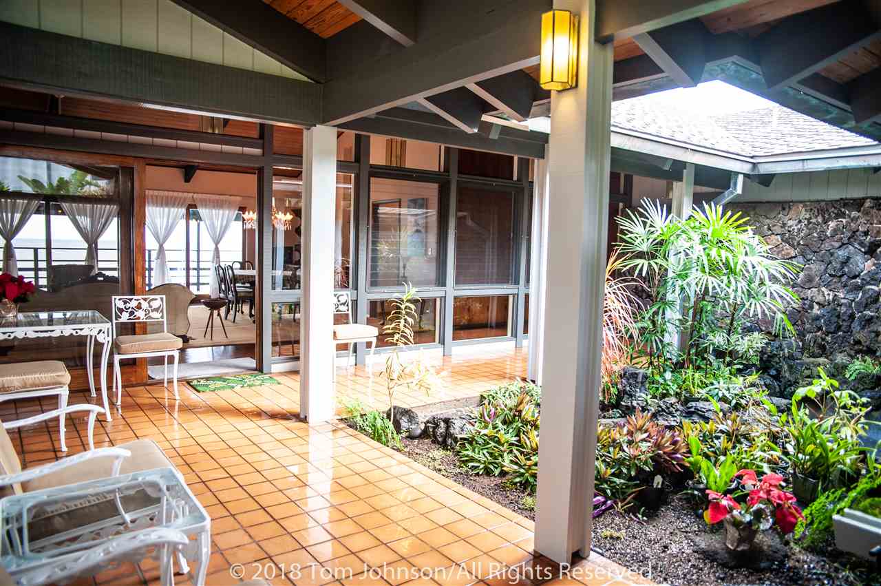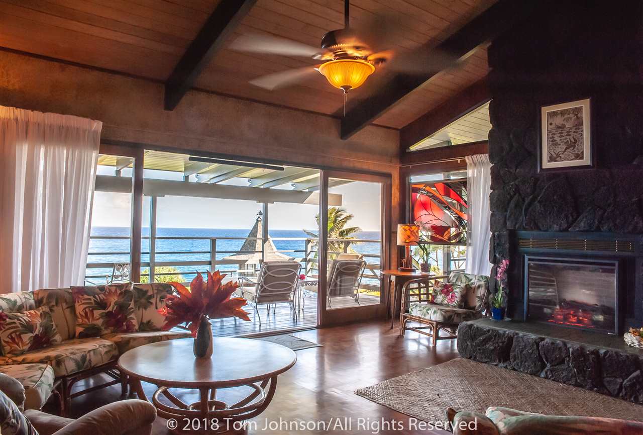 This in one of Hanas most iconic oceanfront estates and a unique opportunity to own a spectacular property along Hanas famed Gold Coast. The excellent location in the Puuiki neighborhood of Hana offers privacy while being conveniently located only minutes from Hana Town, Koki Beach and world famous Hamoa Beach. Relax into island life with sweeping coastal views from most rooms, as well as from the impressive 120-foot Ipe wood lanai. There is also a rare, permitted gazebo situated on the oceans edge. Its a perfect place for entertaining friends while watching whales, turtles and dolphins swim by, or just relax in solitude and catch the multi-colored sun and moon rises famous in East Maui. Some of the special features of the main residence are Mahogany doors, Koa cabinets throughout, Teak flooring in the family room and hallway as well as exceptional and rare book-matched Koa paneling. A large master suite wing as well as two additional bedrooms and a total of two and a half bathrooms, allows for ample guests and privacy. There is a formal living/dining room, eat-in kitchen and a family room featuring a custom and original lava rock fireplace. All the main rooms include sliding doors to the lanai. The house includes a two-car garage, laundry room, covered entry lanai, a workshop/art studio and a separate two bedroom, one bath ohana with its own carport, laundry and covered lanai.