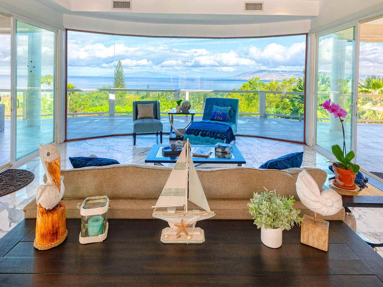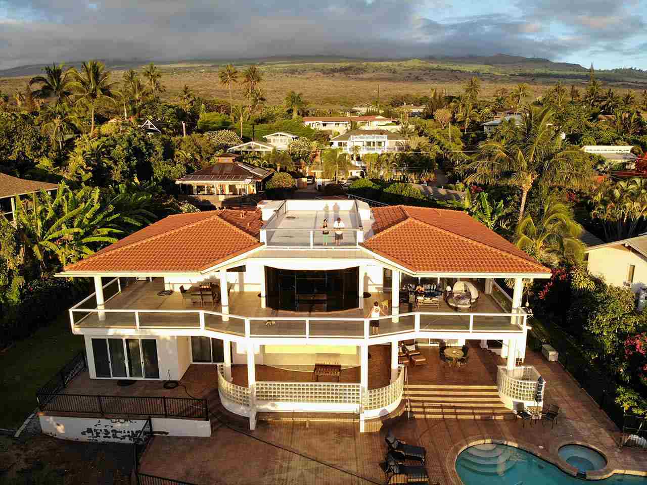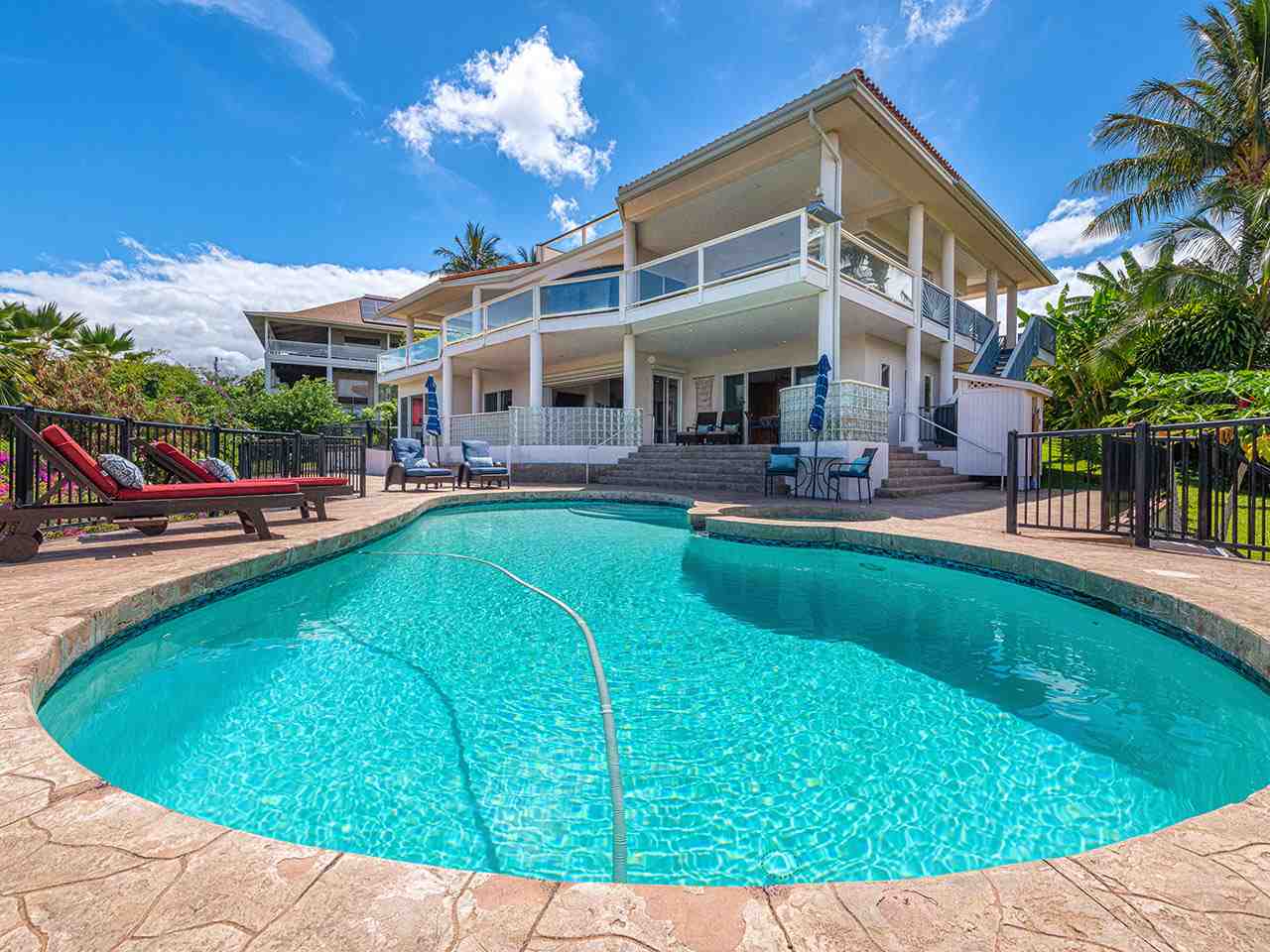 Come see the truly remarkable views from this expansive and beautiful home at the top of Maui Meadows! Located in one of South Maui's most desirable neighborhoods, and boasting a large half acre lot with ocean views as far as the eye can see, this 4 bedroom, 3.5 bath home is designed with elegance and entertaining in mind. Every room captures the incredible views of Maui's outer islands, whales during the winter, and postcard sunsets every day of the year. Enjoy the seamless transition of indoor to outdoor living through large pocket sliding doors and immense covered lanais for dining and lounging both upstairs and down. High ceilings throughout, a grand master suite and an open chefs kitchen complete this special home. There is an in-ground pool and hot tub, as well as a net-metered solar PV system that covers most of the electricity bills. The detached 1 bedroom ohana adds space for family and guests or can generate additional income. The detached 3 car garage offers plenty of space for storage and a workshop. Fruit trees in the yard and plenty of room for a garden too! Contact your favorite Realtor today for this special opportunity while it lasts.