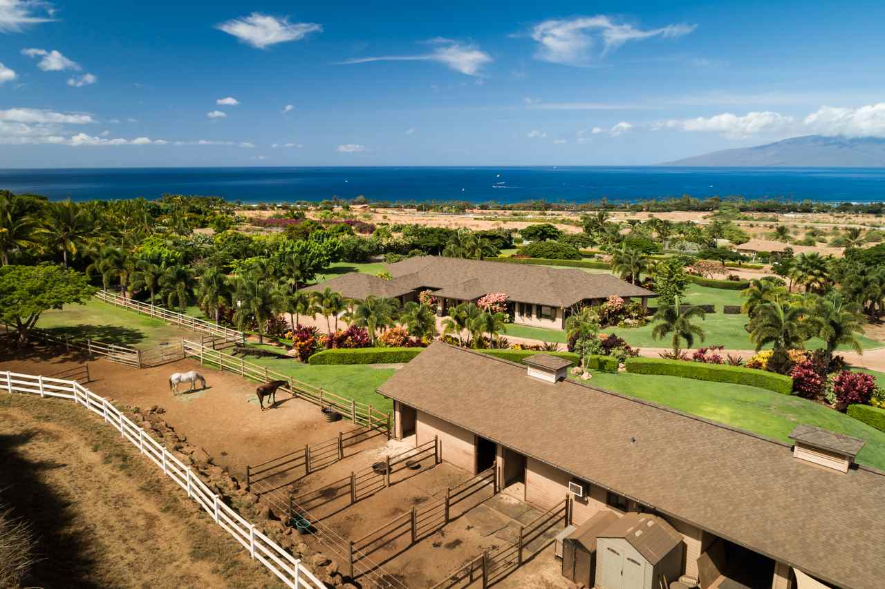 Exquisite, unobstructed ocean, island & mountain views from this West Maui estate. A solid custom home with wide open floor plan, double-island gourmet kitchen, spacious bedrooms, home office, luxurious pool and 1,450 square feet of lanais. Located just a few minutes from Lahaina Town, Puunoa Estates is an exclusive gated community of home-sites ranging from five to 37 acres in parcel size. Rarely available and fully equipped equestrian amenities are included with this home. Hiking, horseback riding and cycling trails interconnect hillside neighborhoods and scenic areas. Here you'll enjoy luxury living in the Lahaina sunshine! If equestrian amenities are not required, the stables could be converted to a cottage or other uses of interest to the Buyer.