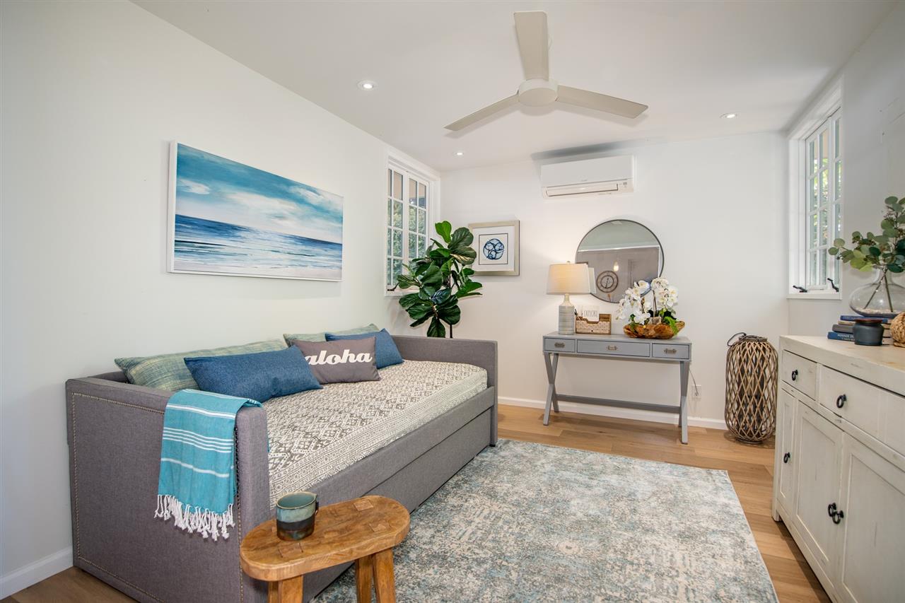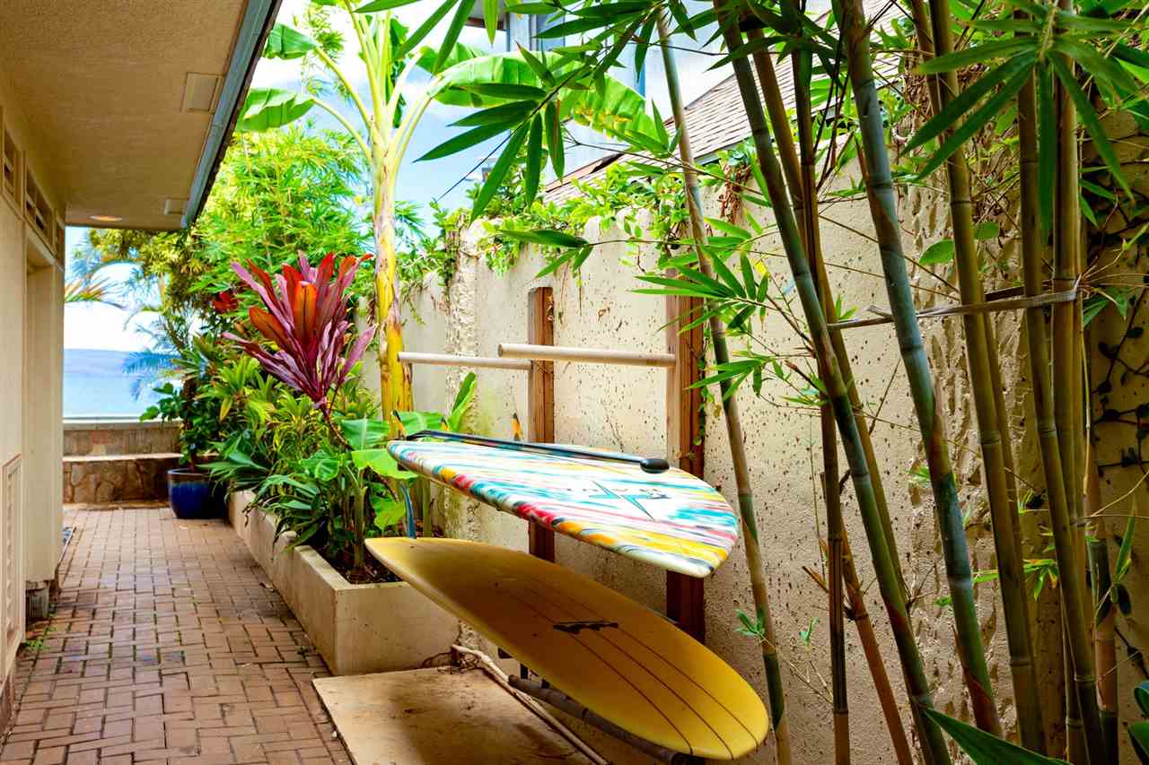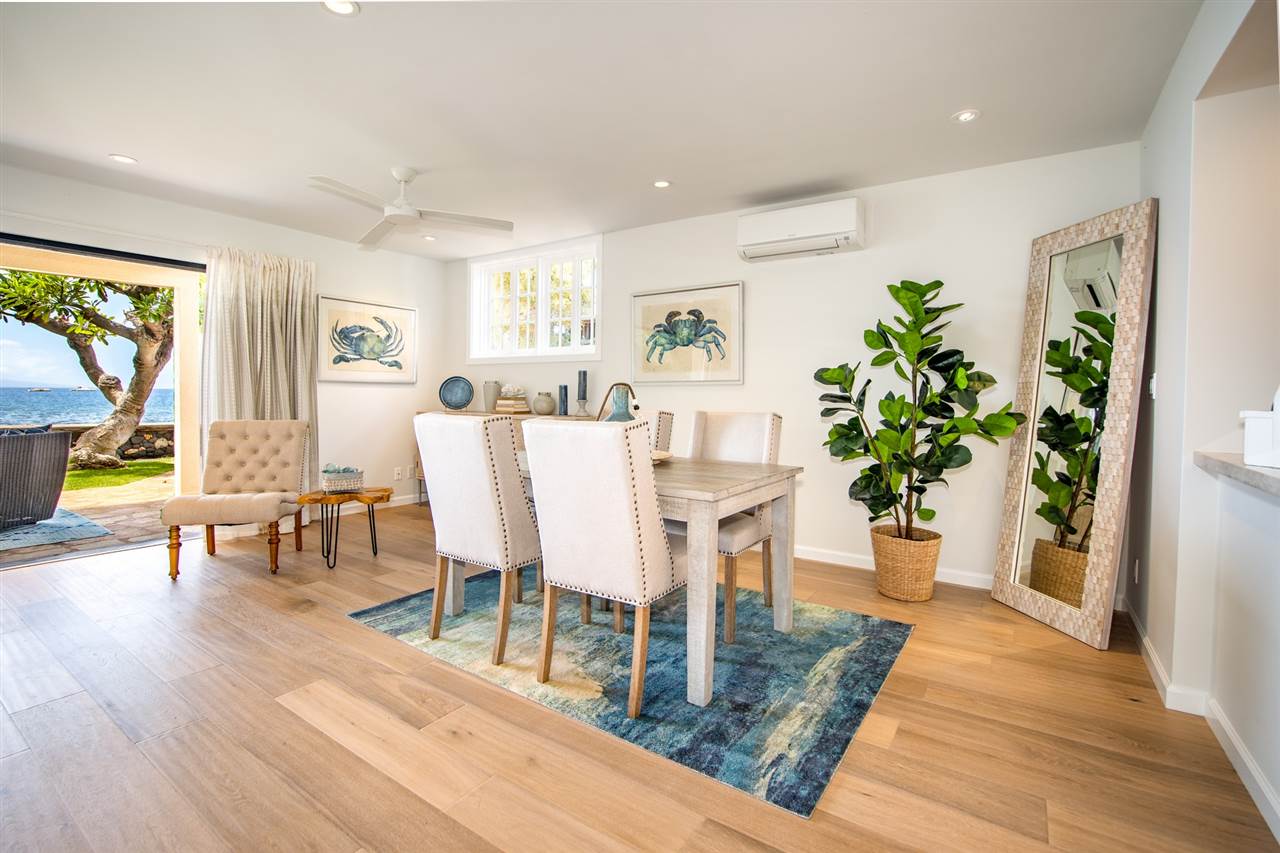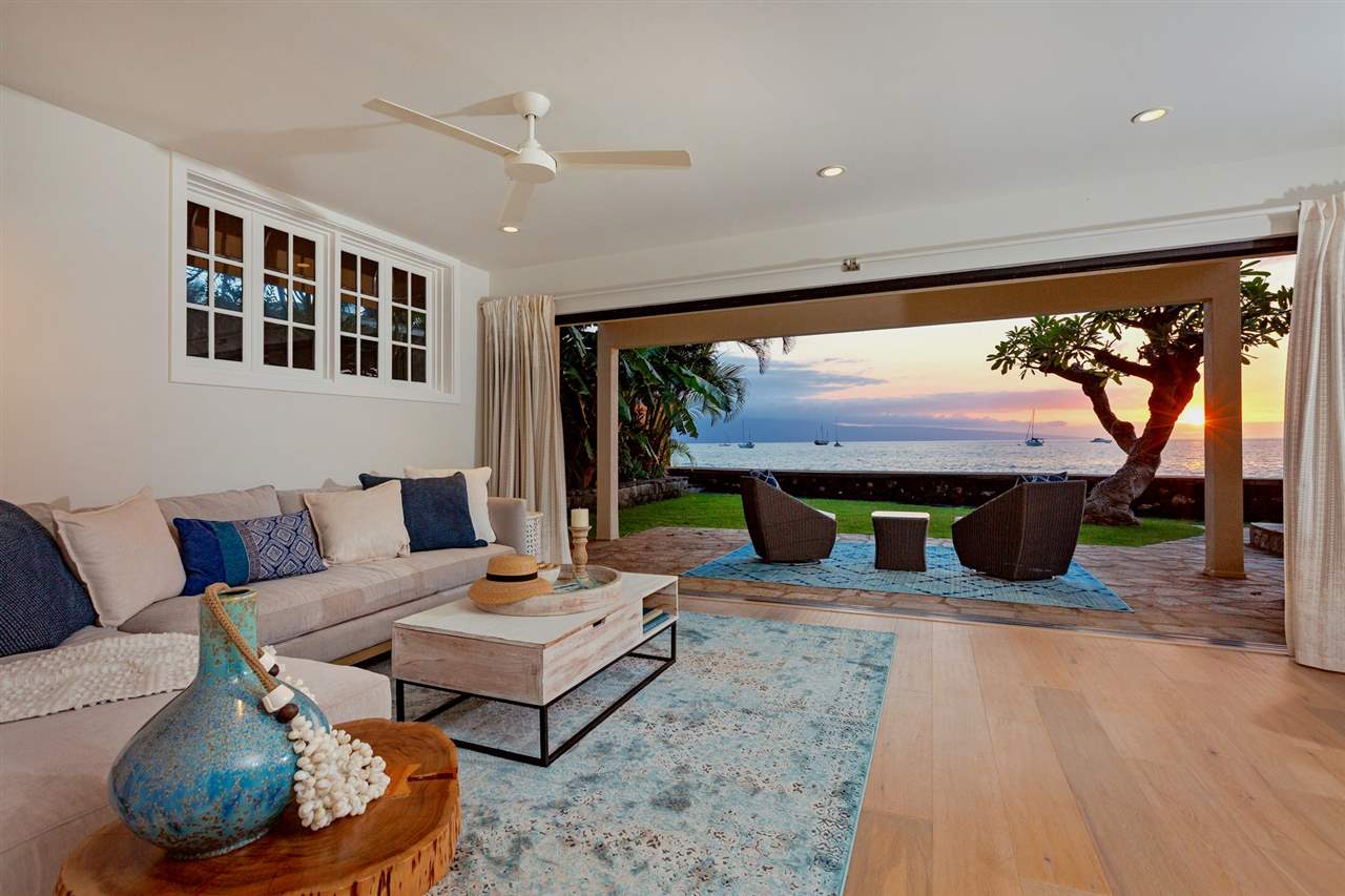 Escape to Mauis historic Lahaina town, and experience life by the beach in this charming house. This recently renovated home enjoys a directly oceanfront location and has fresh, boho-chic design. The rooms are bright and airy, with stunning hardwood floors. The gourmet kitchen and living areas open to the outdoor patio for year-round indoor/outdoor living. The oversized oceanfront bedroom suite features a private lanai…an ideal spot to relax and relish views that extend for miles along the coastline. Downstairs is a bedroom that can be used as an office for work-from-home, media room or a bedroom. Theres a storage area on the side of the property, and an easy spot in front to launch your paddle board or kayak. Snorkel with turtles and watch whales and sunsets from the lanai. Situated just a short distance from the heart of Front Street, it's immersed in one of Maui's most popular spots for shopping and dining. Imagine yourself listening to the sounds of the ocean in this perfect retreat by the sea.