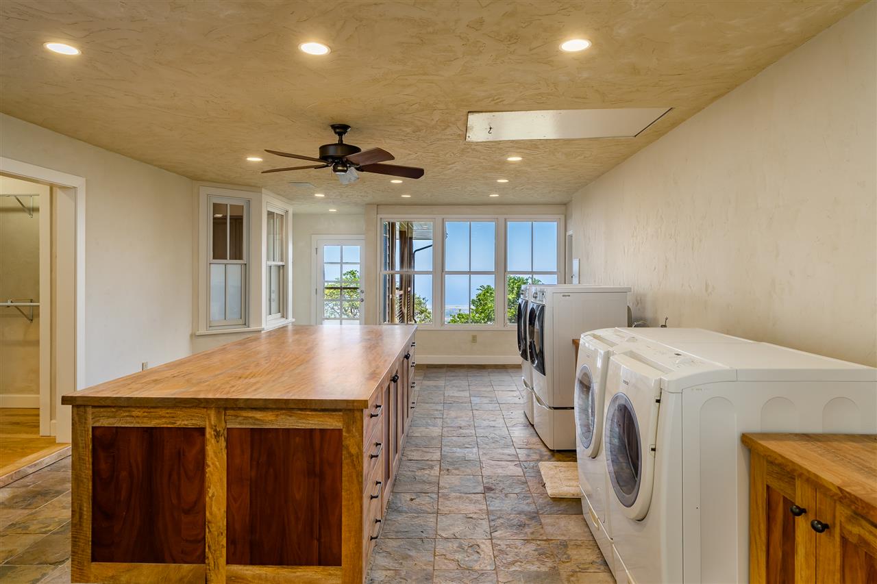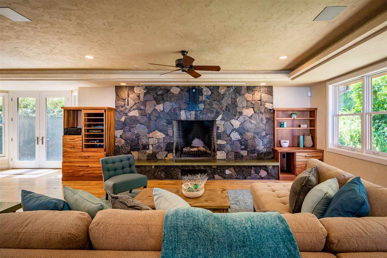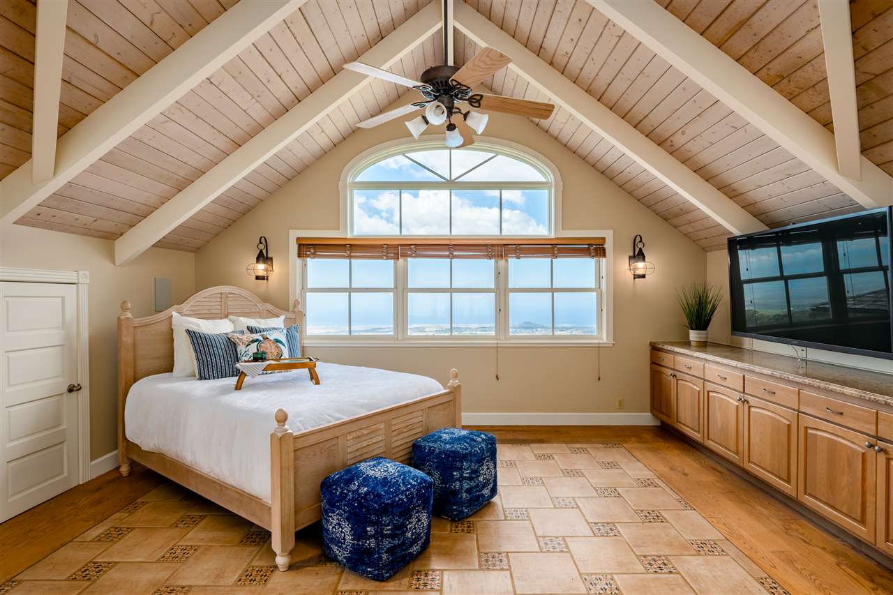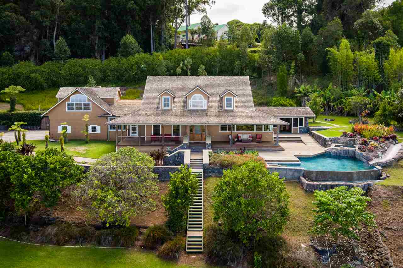 Welcome to this beautiful Olinda estate nestled half way up Olinda Rd on a completely private lot with INCREDIBLE views! The 2 acre lot is well planned out featuring a gorgeous 4000 sqft home right in the middle with a separate 1 bed/1 bath guest cottage off to one side. The kitchen of the main home is jaw dropping; with a huge koa island as the focal point. Koa cabinets and built in fridge and dishwashers covered in koa and artistic concrete countertops are all situated to enjoy the incredible bicoastal views from the wall of windows looking out from the kitchen. The family room with an impressive stone fireplace and the formal dining room are all open to the kitchen as well. There is a wonderful screened-in porch with a built-in grill that leads you to the outdoors and the sprawling Ipe deck, large enough to accommodate lawn chairs and an outdoor dining and then some. The infinity pool, along with it's spa, waterfall, and water slide (!!!) is an incredibly serene spot to enjoy the breath taking views. The main home has a master suite on the ground floor with a walk-in closet and a master bath dripping with natural stone. The downstairs flooring is beautifully finished mango along with the railings and stairs leading to the second level. There are 3 bedrooms and 2 full baths, as well as a second living room upstairs. Also on the ground floor is an incredibly impressive laundry room with 2 sets of laundry machines, a huge koa and mango wood island, and a walk-in wine cellar! The laundry room leads to the 3 car garage on one side, but it also has a separate entry door to the mother-in-law suite that sits above the garage. This 1 bedroom 1 bath suite with kitchenette is incredibly cute with it's soaring open beam ceilings and stunning views of the ocean and west Maui mountains. The property also boasts another separate 1 bedroom, 1 bath guest cottage with high ceilings, a loft, and it's own relaxing lanai overlooking the manicured grounds, the surrounding pasture lands, and down to the valley and beyond. This building would make an incredible office for those of you looking for a place to work from home yet separate from your main living space. Also in the back, nestled away from everything else under the soaring Eucalyptus trees that border the back of the property is approx. an 800 ft concrete slab with electrical run to it. The ground work is already completed for an art studio, car garage, barn, you name it! Many mature and producing citrus trees are on property as well as bananas and large beautiful avocados! Some nice features of the property are the owned solar panels, central heat/air, irrigation/sprinklers, and the filtered water system that is installed. If you're looking for a completely private estate that has big views with multiple living and working options come check this one out! More photos to follow soon.