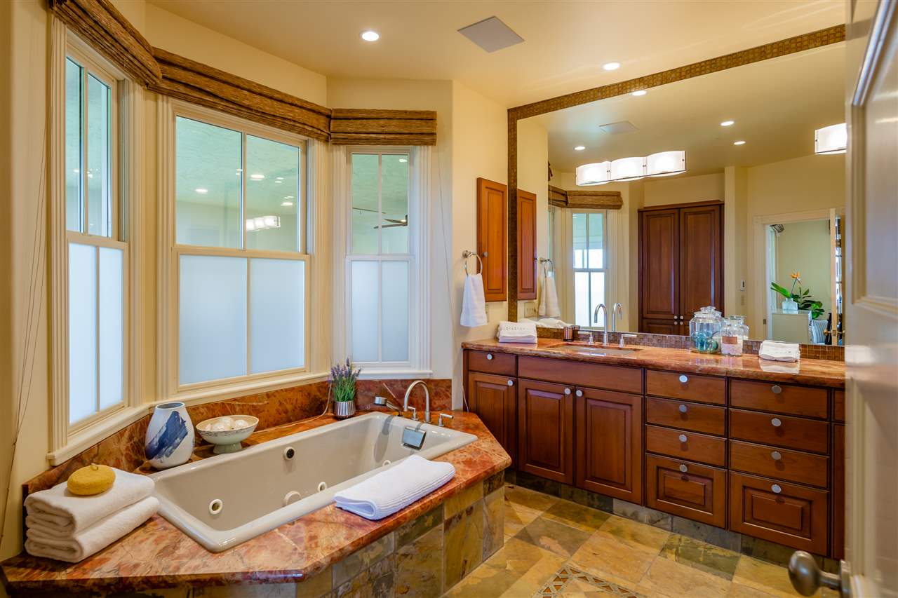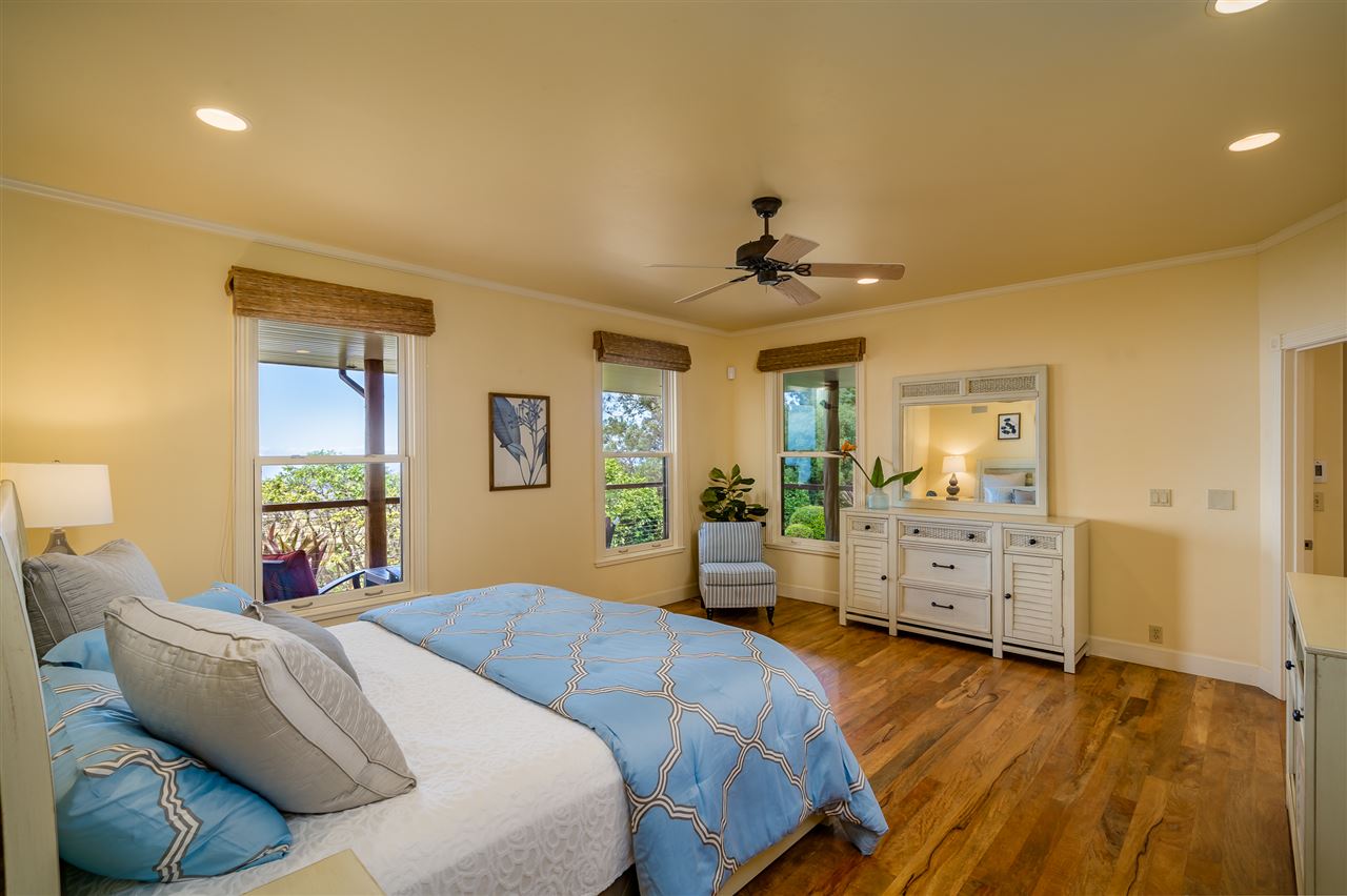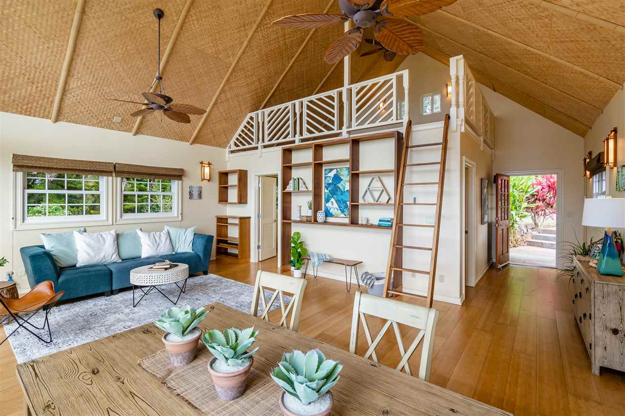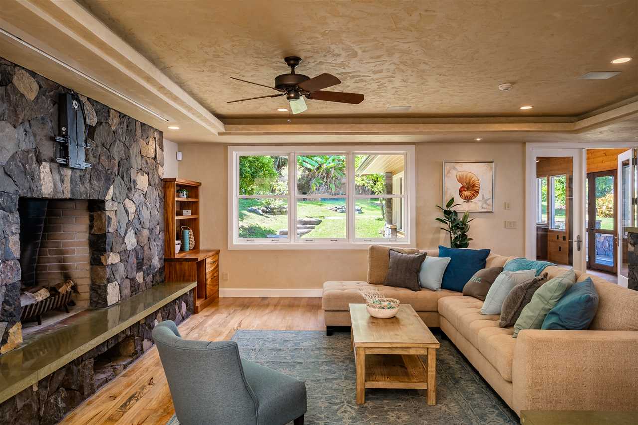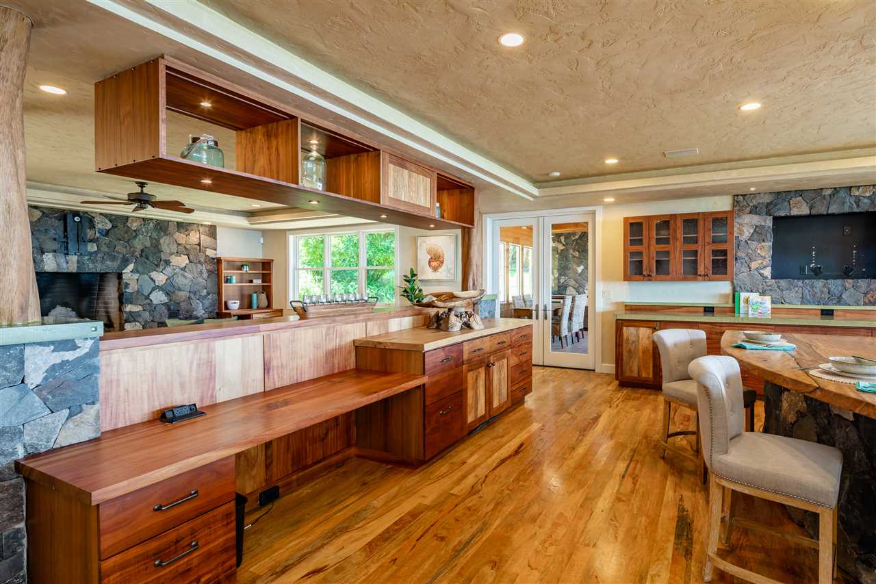 Welcome to this beautiful Olinda estate nestled half way up Olinda Rd on a completely private lot with INCREDIBLE views! The 2 acre lot is well planned out featuring a gorgeous 4000 sqft home right in the middle with a separate 1 bed/1 bath guest cottage off to one side. The kitchen of the main home is jaw dropping; with a huge koa island as the focal point. Koa cabinets and built in fridge and dishwashers covered in koa and artistic concrete countertops are all situated to enjoy the incredible bicoastal views from the wall of windows looking out from the kitchen. The family room with an impressive stone fireplace and the formal dining room are all open to the kitchen as well. There is a wonderful screened-in porch with a built-in grill that leads you to the outdoors and the sprawling Ipe deck, large enough to accommodate lawn chairs and an outdoor dining and then some. The infinity pool, along with it's spa, waterfall, and water slide (!!!) is an incredibly serene spot to enjoy the breath taking views. The main home has a master suite on the ground floor with a walk-in closet and a master bath dripping with natural stone. The downstairs flooring is beautifully finished mango along with the railings and stairs leading to the second level. There are 3 bedrooms and 2 full baths, as well as a second living room upstairs. Also on the ground floor is an incredibly impressive laundry room with 2 sets of laundry machines, a huge koa and mango wood island, and a walk-in wine cellar! The laundry room leads to the 3 car garage on one side, but it also has a separate entry door to the mother-in-law suite that sits above the garage. This 1 bedroom 1 bath suite with kitchenette is incredibly cute with it's soaring open beam ceilings and stunning views of the ocean and west Maui mountains. The property also boasts another separate 1 bedroom, 1 bath guest cottage with high ceilings, a loft, and it's own relaxing lanai overlooking the manicured grounds, the surrounding pasture lands, and down to the valley and beyond. This building would make an incredible office for those of you looking for a place to work from home yet separate from your main living space. Also in the back, nestled away from everything else under the soaring Eucalyptus trees that border the back of the property is approx. an 800 ft concrete slab with electrical run to it. The ground work is already completed for an art studio, car garage, barn, you name it! Many mature and producing citrus trees are on property as well as bananas and large beautiful avocados! Some nice features of the property are the owned solar panels, central heat/air, irrigation/sprinklers, and the filtered water system that is installed. If you're looking for a completely private estate that has big views with multiple living and working options come check this one out! More photos to follow soon.