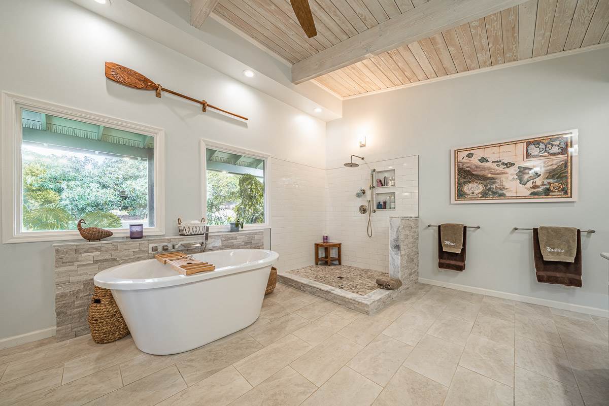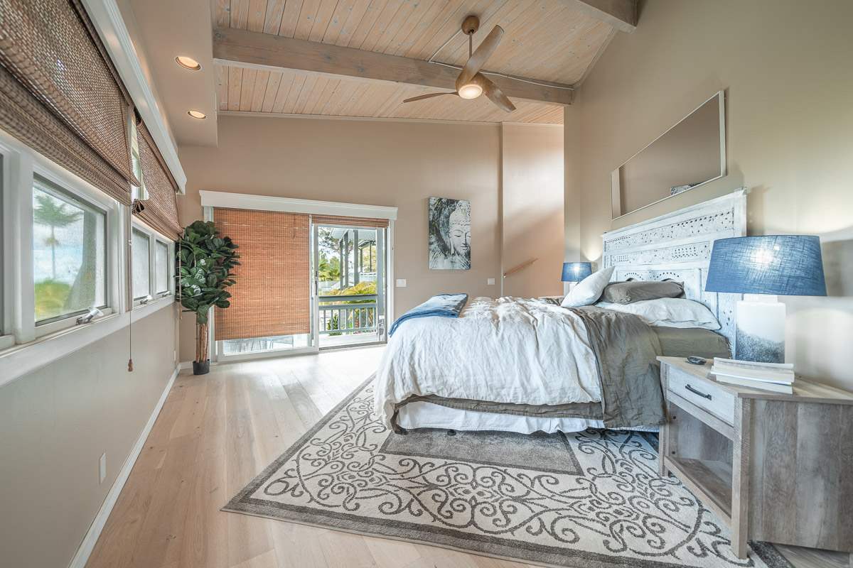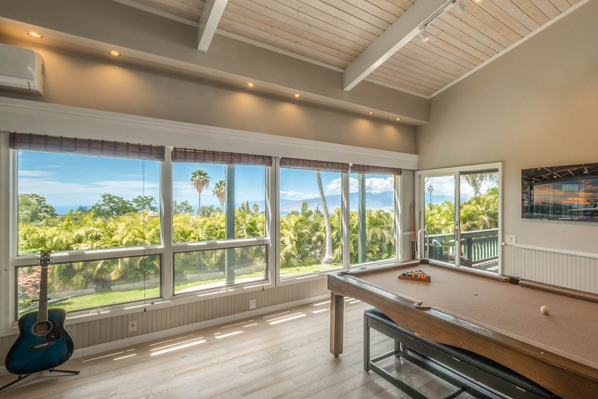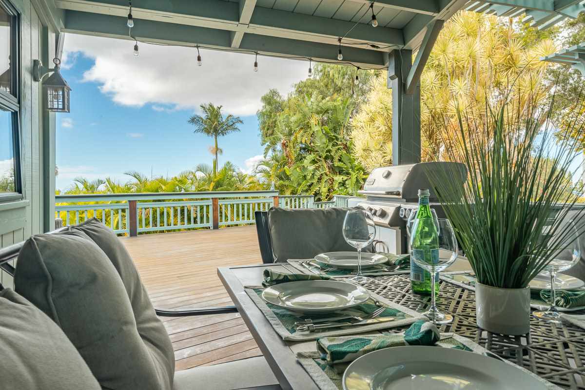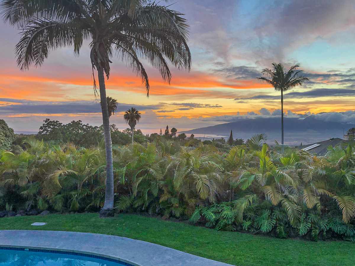 Located at the ideal elevation of 2100 ft., this beautiful, gated property offers 4 bedrooms & 4 baths, open beam ceilings, wainscoting, numerous windows create an atmosphere of bright spacious living. The main living area includes a large living room, dining area & cozy fireplace. The master suite is positioned for privacy & includes a master bath complete with a deep soaking tub, walk-in shower, dry sauna, & double vanity. The dressing room has 3 closets, 1 walk-in, built-in cabinetry & and many mirrors including a great makeup sitting area. Step down to the office & master bedroom both with private lanais. 3 large bedrooms, 1 ensuite, plus additional bath, are located on the upper level. The house was remodeled in 2019/2020 with brand new hardwood flooring throughout and fully remodeled master bath. A focal point of the home is the chefs kitchen with adjoining family room that opens onto the spacious ironwood lanai overlooking the pool, perfect for those colorful sunsets! Stairs lead down to the oversized concrete deck surrounding the solar heated pool & spa. Adjacent to the pool is the recently remodeled cabana/studio/in-law suite with full kitchen, bath/laundry room. The unfinished basement provides enormous storage & work space, and would make a great wine cellar. There are two solar water heaters & a Pelican Home Water Filtration System. Separate 2 car garage & large parking area. This property is nicely landscaped with mango, papaya, citrus, avocado & over 20 plumeria trees lending to the tranquil nature of this special property. The icing on the cake is the 2 Iron Wood Gates, one electric with Doorbird Keypad/camera (Wifi for remote entry) Do not wait for this one, call your favorite REALTOR to schedule a safe and private showing today!