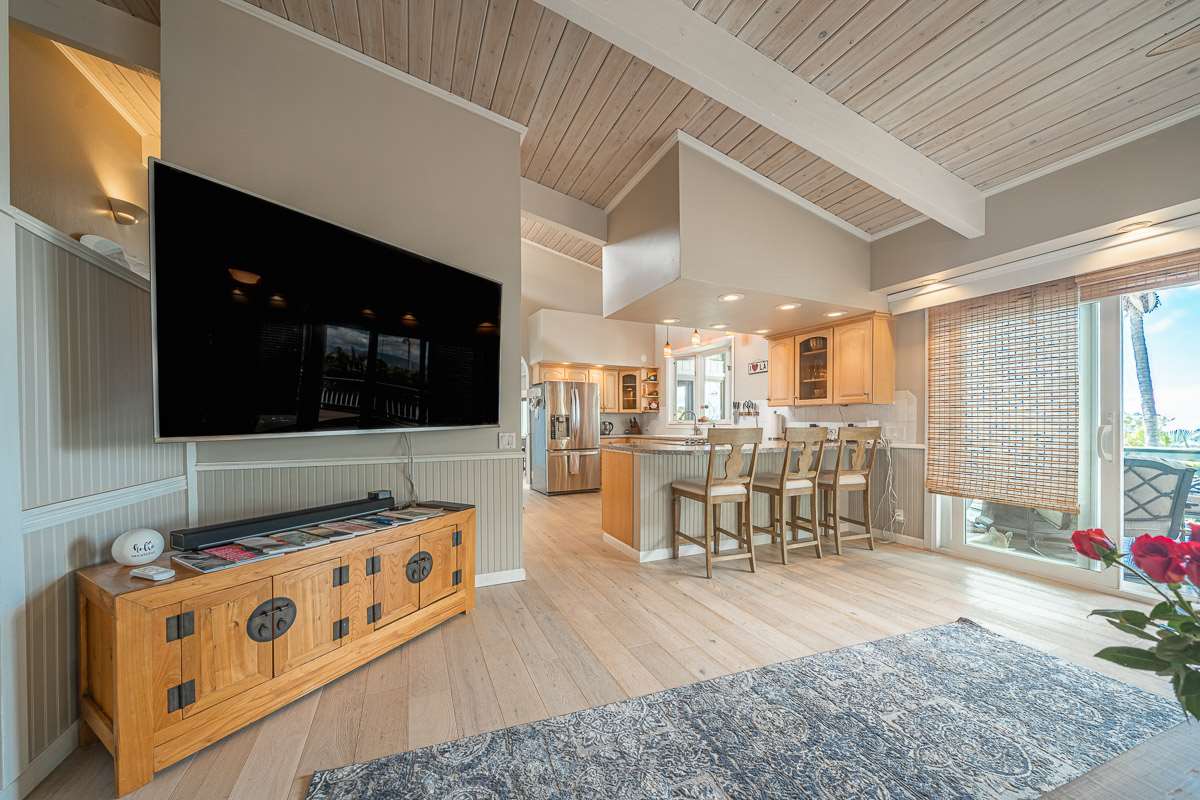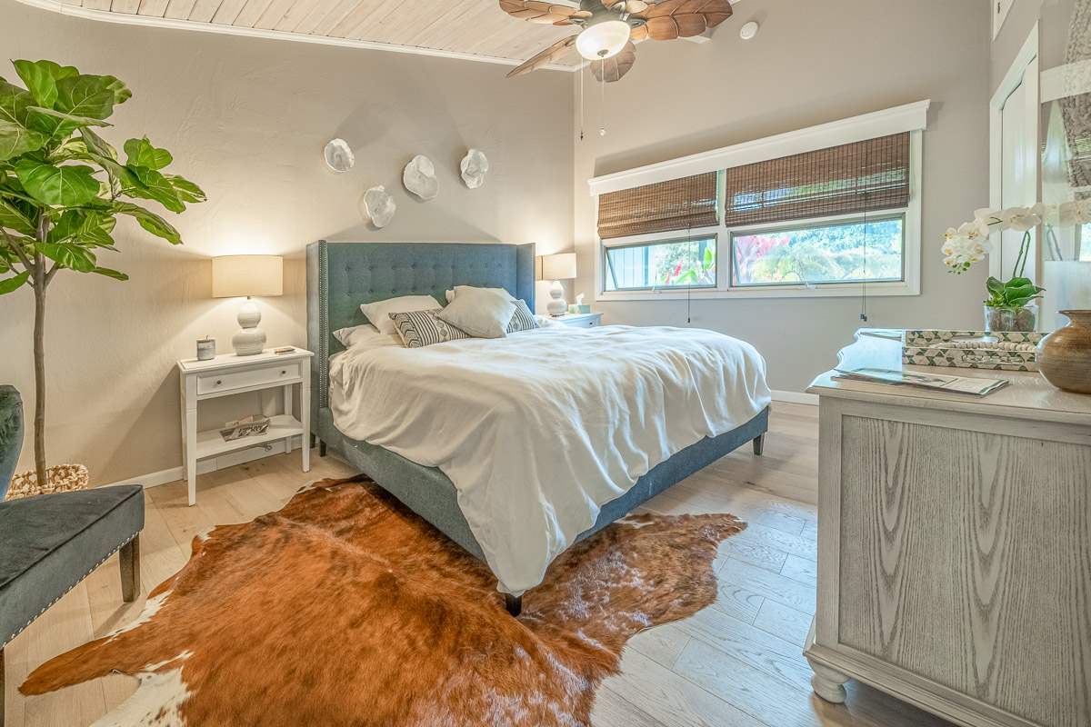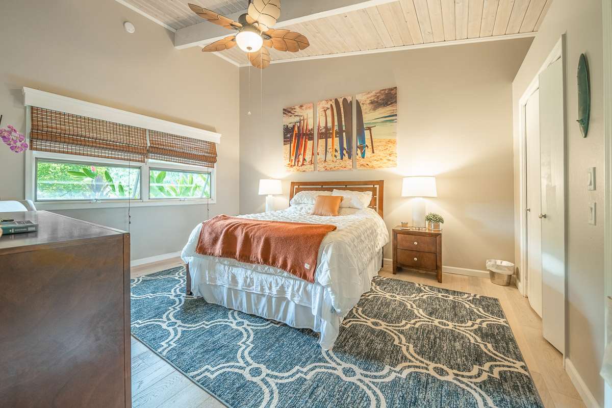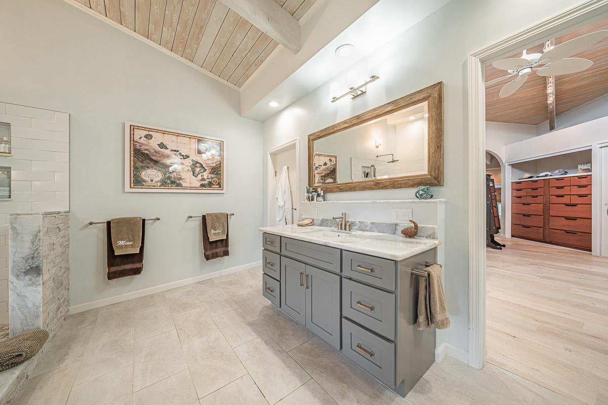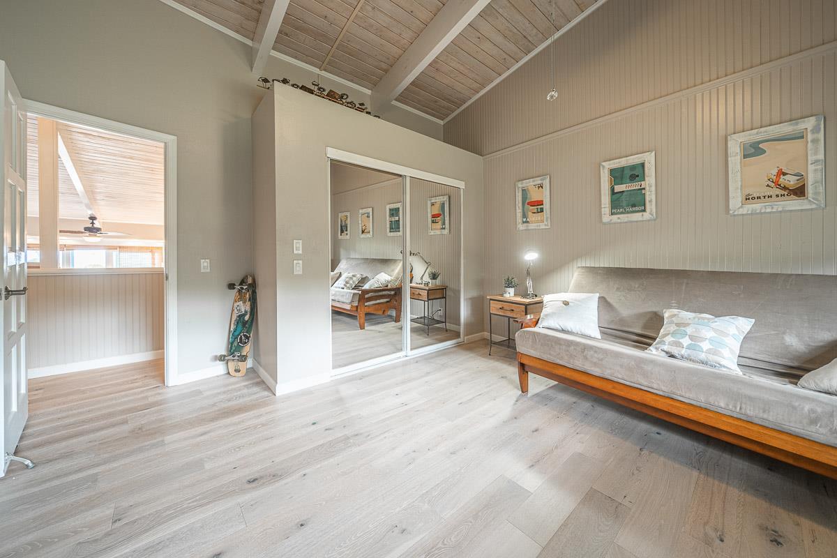 Located at the ideal elevation of 2100 ft., this beautiful, gated property offers 4 bedrooms & 4 baths, open beam ceilings, wainscoting, numerous windows create an atmosphere of bright spacious living. The main living area includes a large living room, dining area & cozy fireplace. The master suite is positioned for privacy & includes a master bath complete with a deep soaking tub, walk-in shower, dry sauna, & double vanity. The dressing room has 3 closets, 1 walk-in, built-in cabinetry & and many mirrors including a great makeup sitting area. Step down to the office & master bedroom both with private lanais. 3 large bedrooms, 1 ensuite, plus additional bath, are located on the upper level. The house was remodeled in 2019/2020 with brand new hardwood flooring throughout and fully remodeled master bath. A focal point of the home is the chefs kitchen with adjoining family room that opens onto the spacious ironwood lanai overlooking the pool, perfect for those colorful sunsets! Stairs lead down to the oversized concrete deck surrounding the solar heated pool & spa. Adjacent to the pool is the recently remodeled cabana/studio/in-law suite with full kitchen, bath/laundry room. The unfinished basement provides enormous storage & work space, and would make a great wine cellar. There are two solar water heaters & a Pelican Home Water Filtration System. Separate 2 car garage & large parking area. This property is nicely landscaped with mango, papaya, citrus, avocado & over 20 plumeria trees lending to the tranquil nature of this special property. The icing on the cake is the 2 Iron Wood Gates, one electric with Doorbird Keypad/camera (Wifi for remote entry) Do not wait for this one, call your favorite REALTOR to schedule a safe and private showing today!