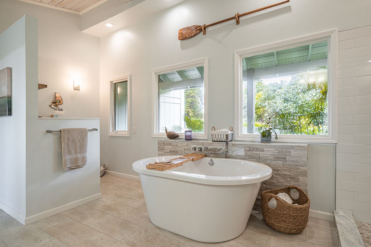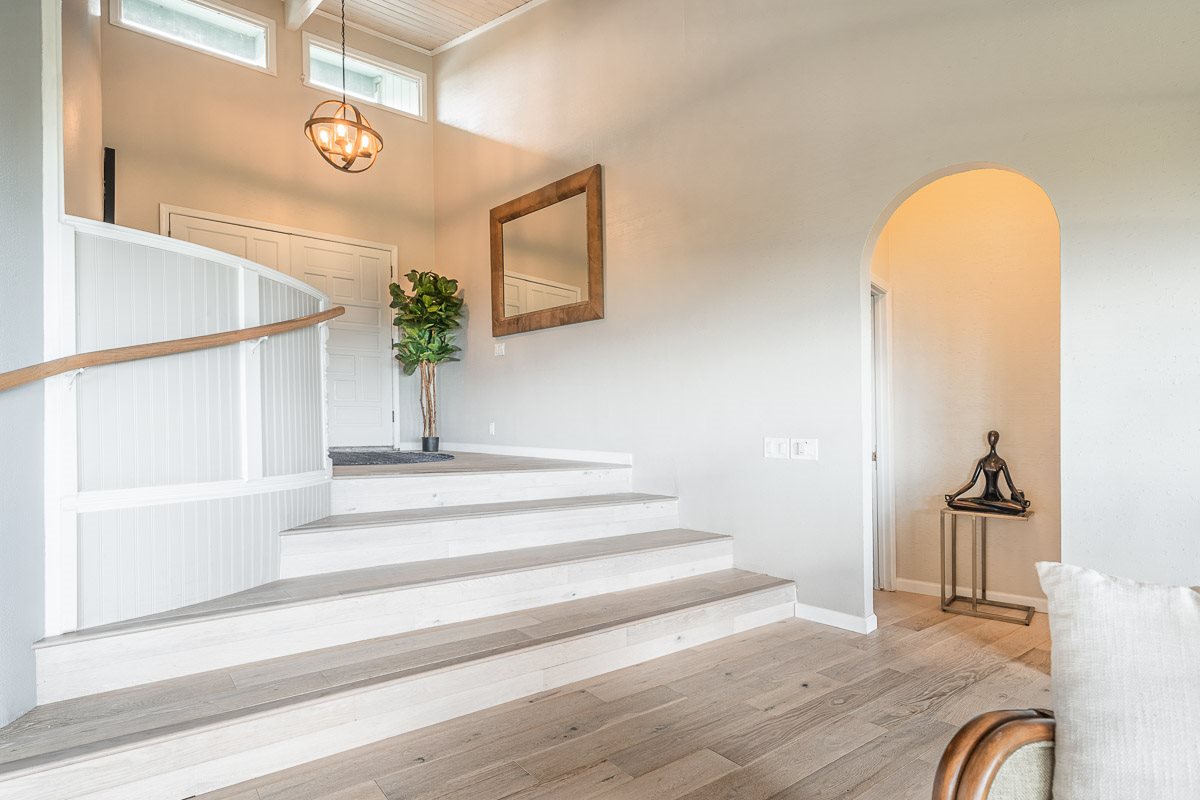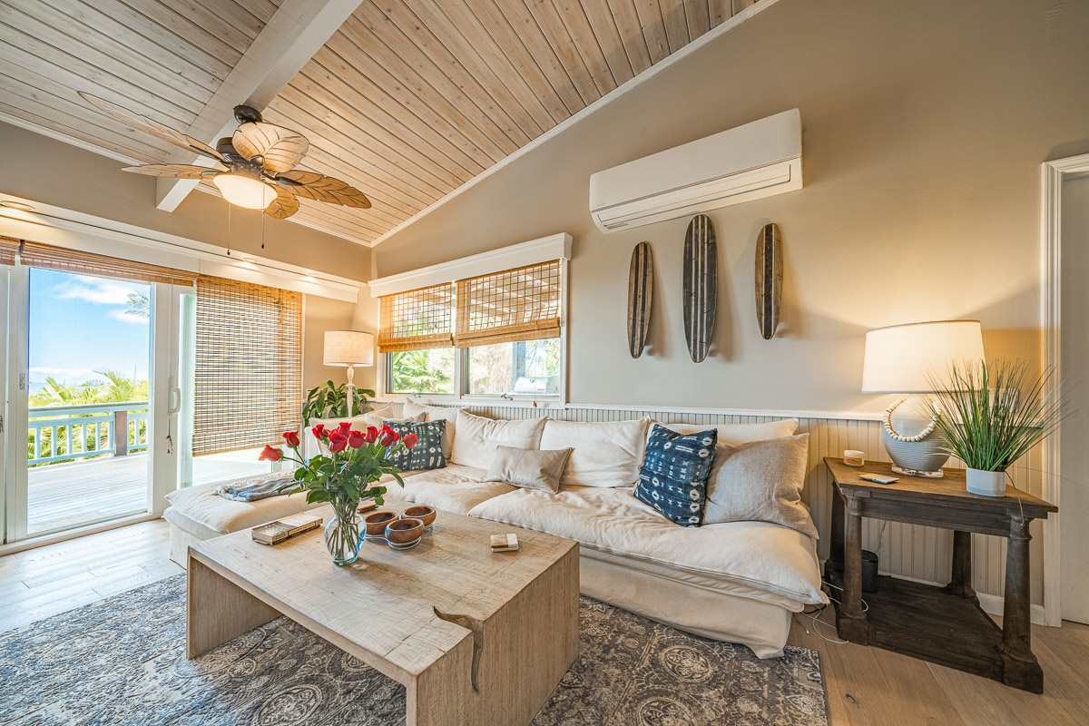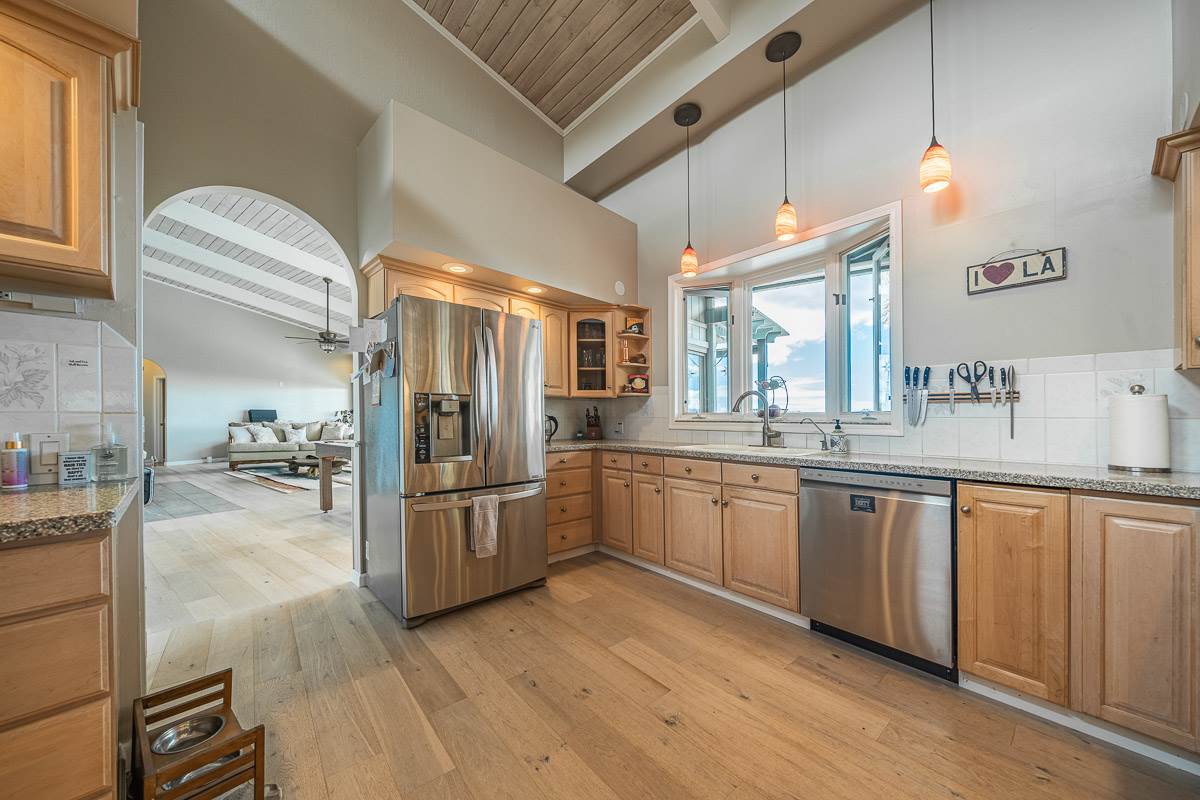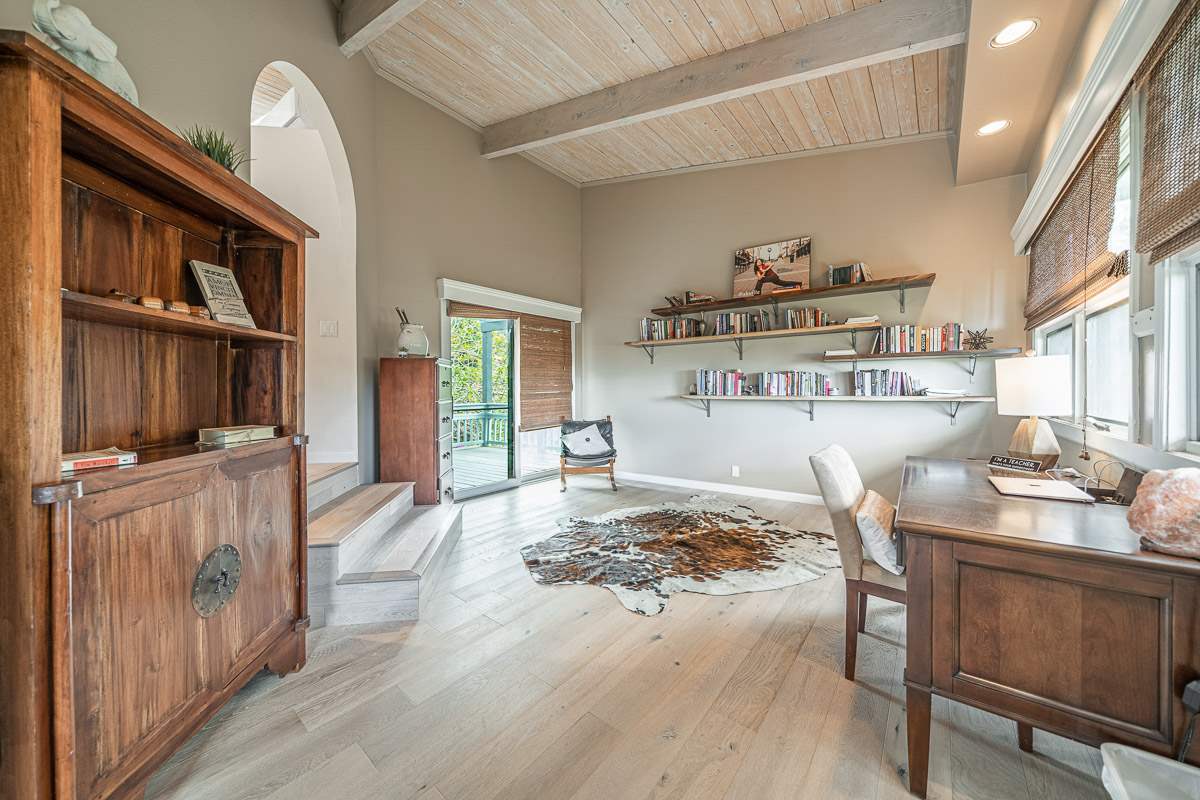 Located at the ideal elevation of 2100 ft., this beautiful, gated property offers 4 bedrooms & 4 baths, open beam ceilings, wainscoting, numerous windows create an atmosphere of bright spacious living. The main living area includes a large living room, dining area & cozy fireplace. The master suite is positioned for privacy & includes a master bath complete with a deep soaking tub, walk-in shower, dry sauna, & double vanity. The dressing room has 3 closets, 1 walk-in, built-in cabinetry & and many mirrors including a great makeup sitting area. Step down to the office & master bedroom both with private lanais. 3 large bedrooms, 1 ensuite, plus additional bath, are located on the upper level. The house was remodeled in 2019/2020 with brand new hardwood flooring throughout and fully remodeled master bath. A focal point of the home is the chefs kitchen with adjoining family room that opens onto the spacious ironwood lanai overlooking the pool, perfect for those colorful sunsets! Stairs lead down to the oversized concrete deck surrounding the solar heated pool & spa. Adjacent to the pool is the recently remodeled cabana/studio/in-law suite with full kitchen, bath/laundry room. The unfinished basement provides enormous storage & work space, and would make a great wine cellar. There are two solar water heaters & a Pelican Home Water Filtration System. Separate 2 car garage & large parking area. This property is nicely landscaped with mango, papaya, citrus, avocado & over 20 plumeria trees lending to the tranquil nature of this special property. The icing on the cake is the 2 Iron Wood Gates, one electric with Doorbird Keypad/camera (Wifi for remote entry) Do not wait for this one, call your favorite REALTOR to schedule a safe and private showing today!