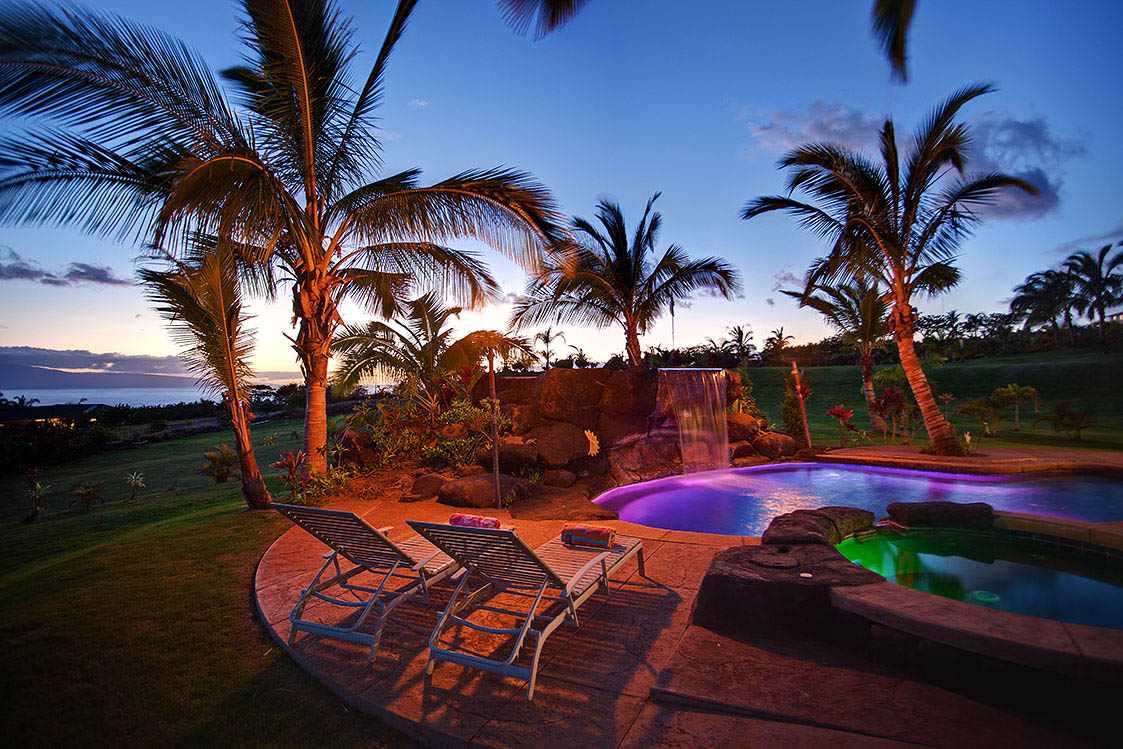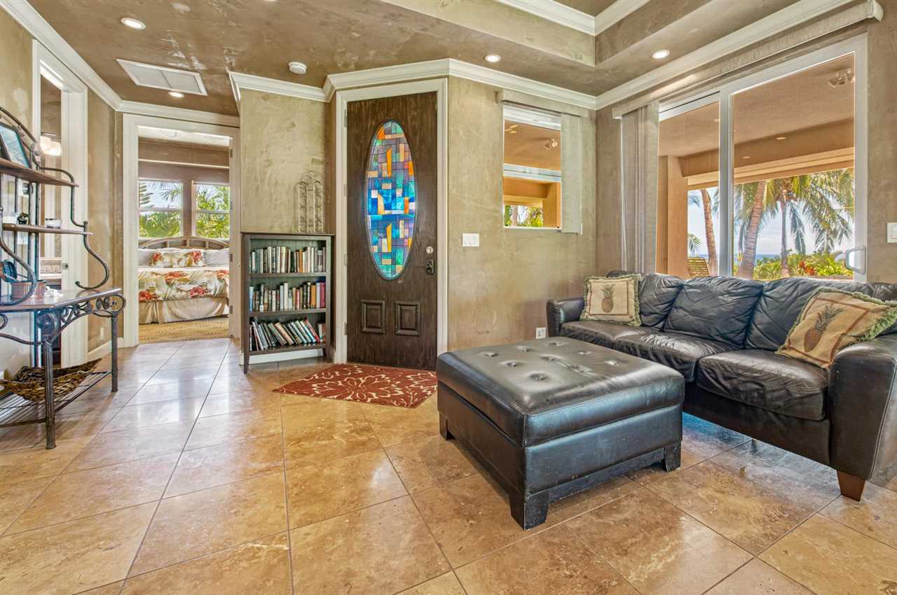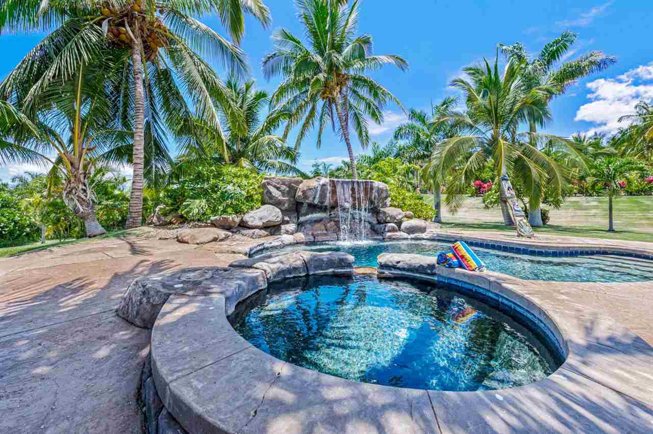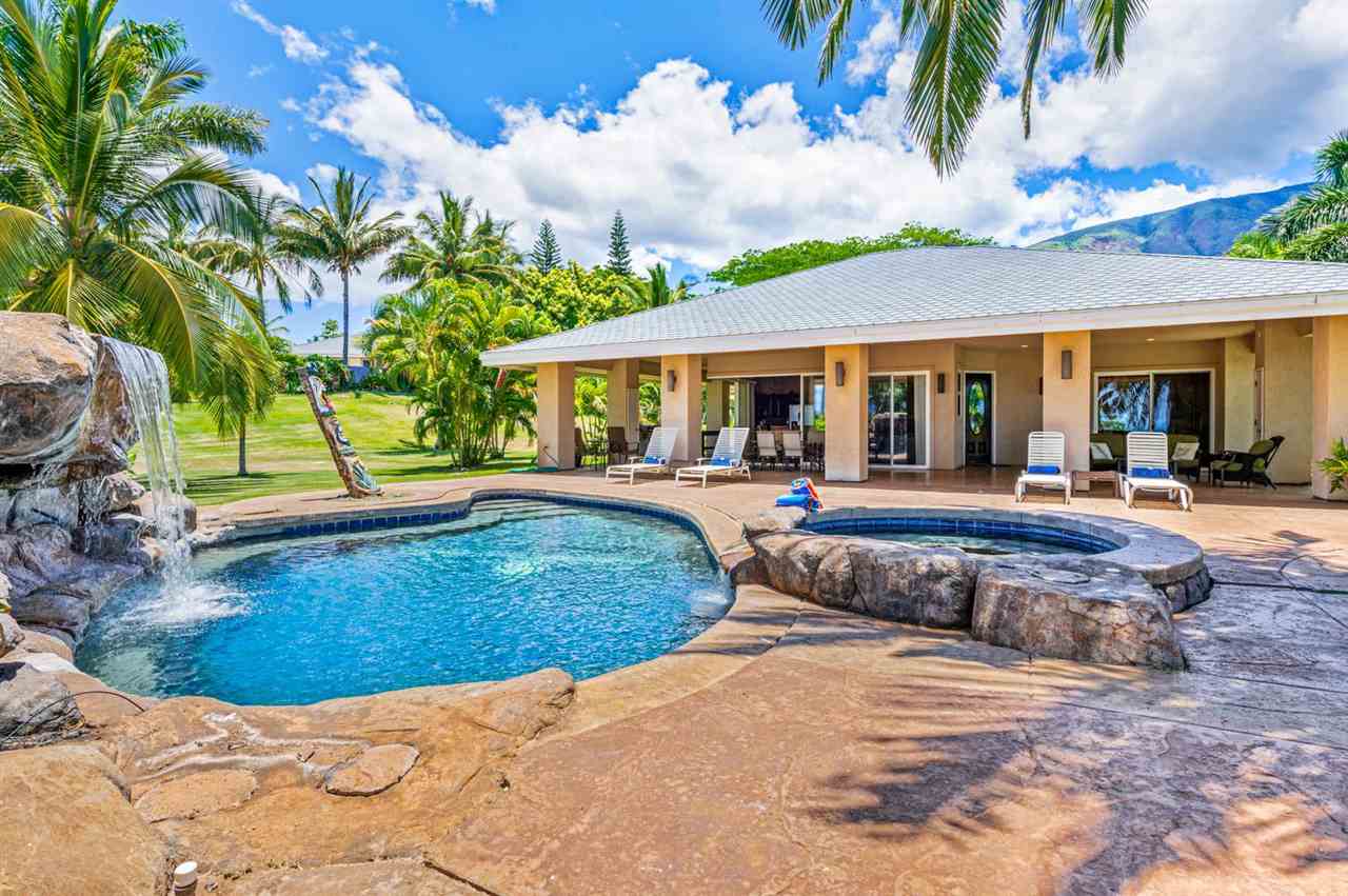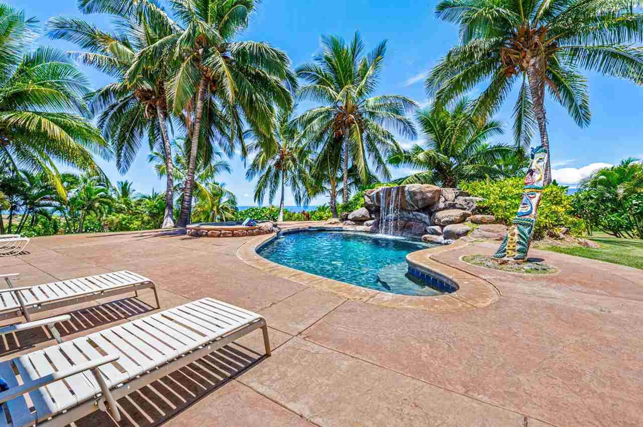 1133 Punakea Loop is a five-acre estate situated on the corner of South Lauhoe Place and North Punakea Loop, at the foot of the West Maui Mountains. A 1,000 sq. ft. cottage, with a two-car garage, is located at the south side of the property and offers beautiful ocean views. The cottage includes a dedicated driveway. In addition to the cottage, a 1000 sq.ft. barn has been converted to a two-bedroom ranch-hand accommodation. The ocean-facing north side of the property has been prepared for the construction of a large main residence. The vantage point is ideal to take in 180-degree, awe-inspiring views of the Pacific Ocean and the outer islands of Moloka'i, Lana'i, and Kaho'olawe. This affords the new owners the ability to build their Maui dream home. Utilities and septic have already been installed, facilitating a new construction. The ocean-facing north side of the property has been prepared for the construction of a large main residence. The vantage point is ideal to take in 180-degree, awe-inspiring views of the Pacific Ocean and the outer islands of Molokai, Lanai, and Kahoolawe. This affords the new owners the ability to build their Maui dream home. Utilities and septic have already been installed, facilitating a new construction. There are two bedrooms in the cottage along with a combined living room and kitchen area; one bedroom has an en-suite bathroom. Sliding glass doors open onto a covered lanai, allowing for indoor-outdoor living, and offering a protected space for outdoor dining, day or night, rain or shine. Outside the cottage, the covered lanai leads to a Polynesian-themed lagoon-style swimming pool with a hot tub and a dramatic waterfall feature. Mature trees add to the lush, tropical landscaping. This Estate property is located in one of the most desirable neighborhoods in West Maui. Within minutes you can surf and snorkel at renowned Maui beaches, shop in Lahaina Town, or tee off at a world-class golf course. Call us for details and to set up a tour of this spectacular estate property.