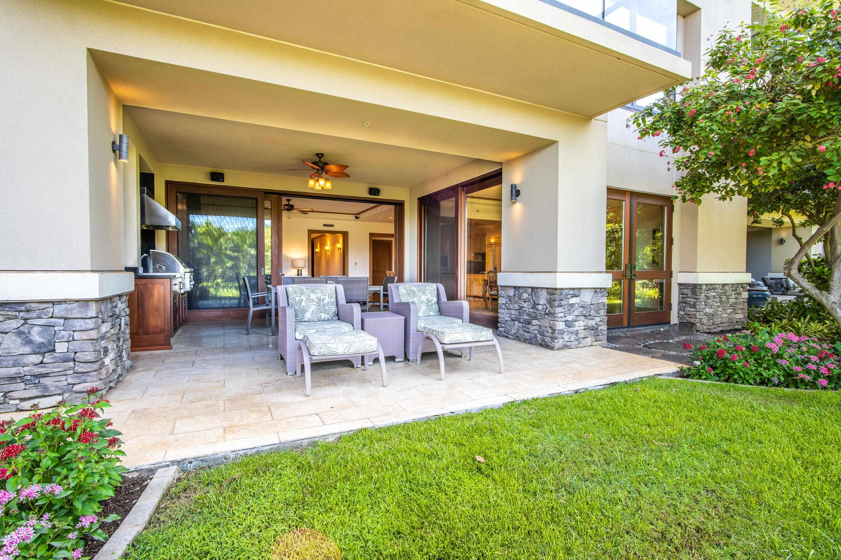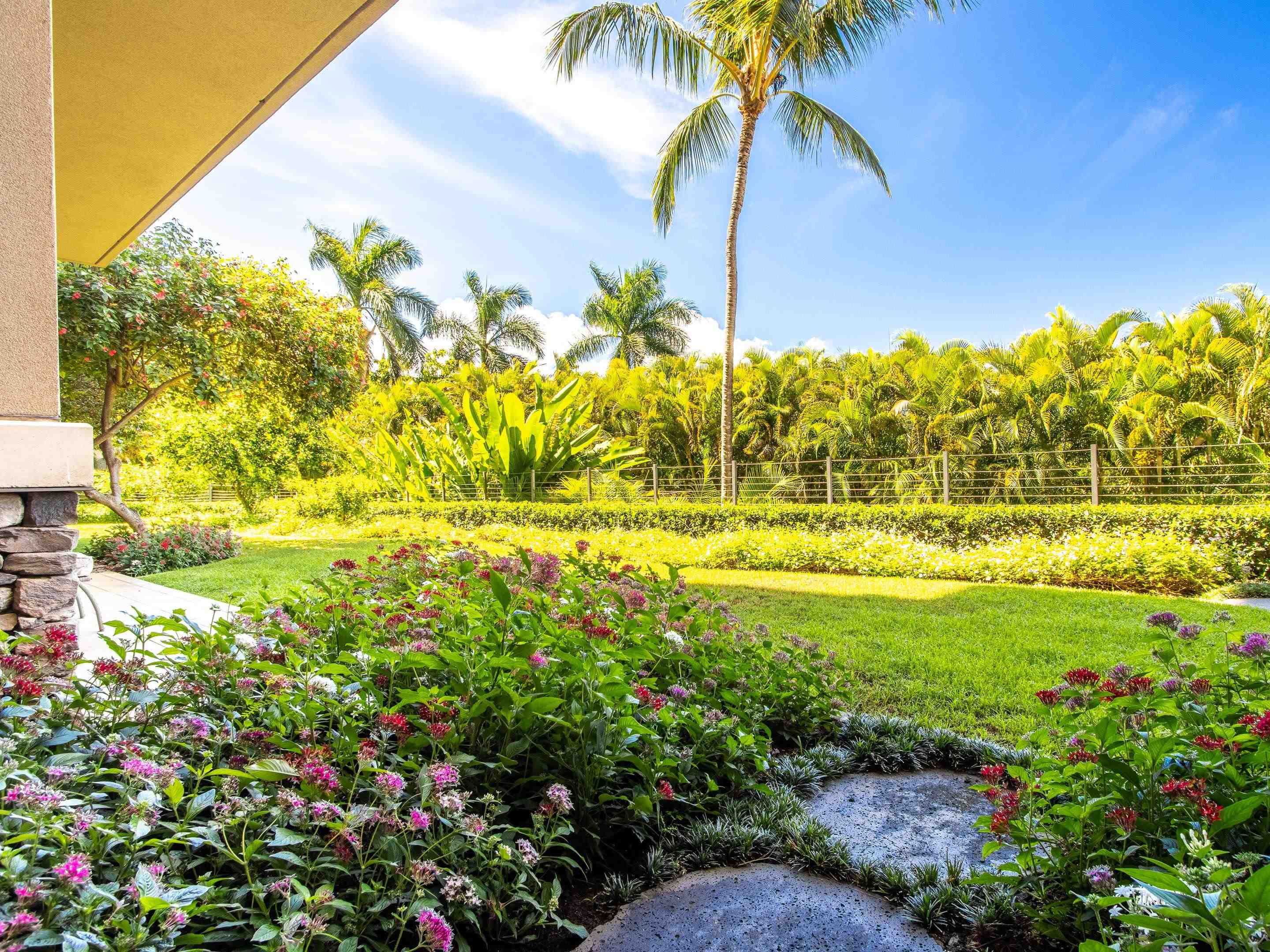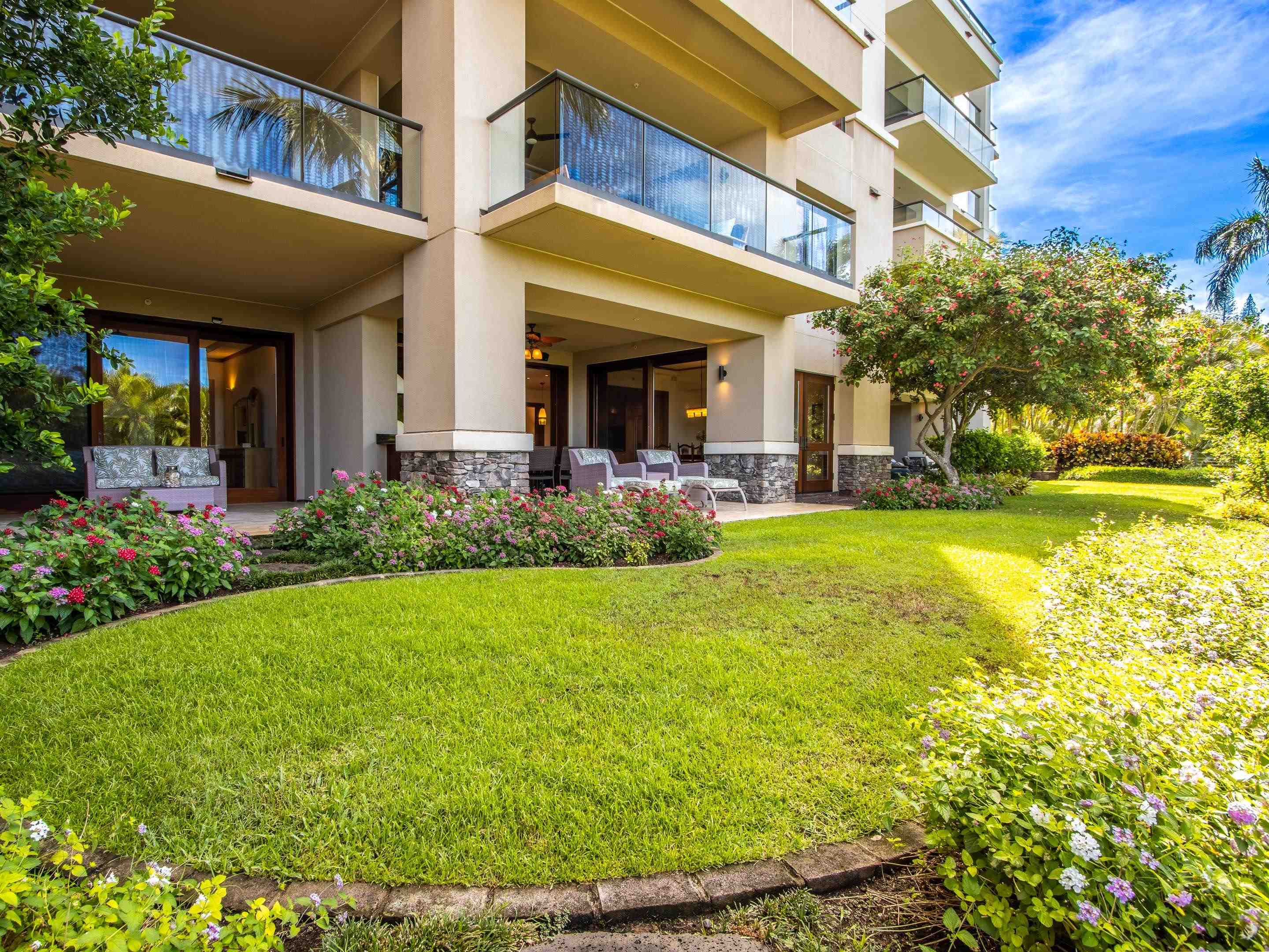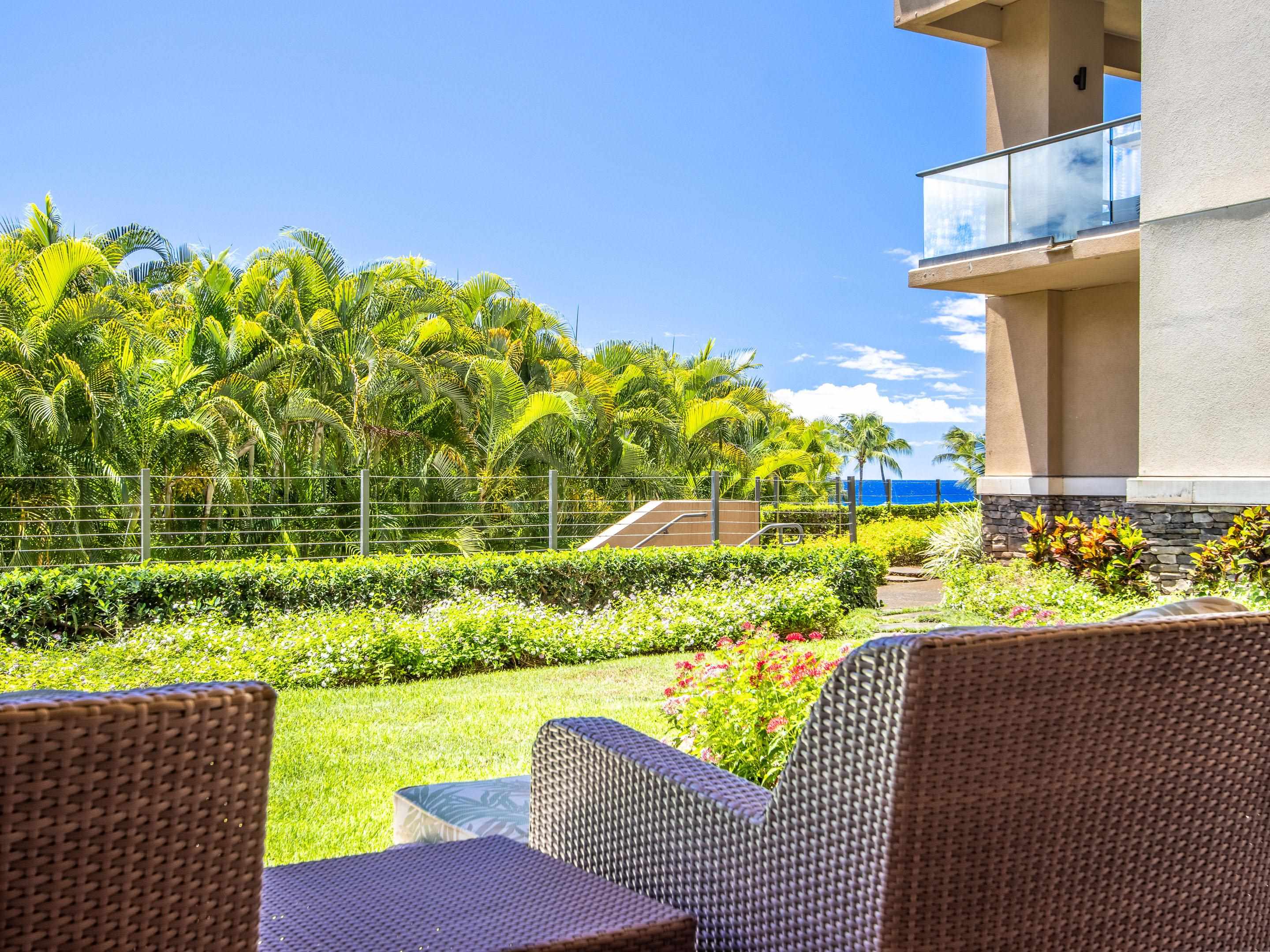 Highly desirable Montage Grand Residence located on the ground level of Building 5 with very close proximity to Kapalua Bay and the Beach Club. This private three-bedroom floorplan also includes a den/office/guest room. It has been enjoyed solely as a primary residence and never rented by its original owner. The spacious lanai offers additional outdoor living space in a lush garden setting with partial ocean view of Kapalua Bay and a brand new built-in outdoor Viking barbeque with mahogany cabinets and granite counter tops. Unique features of this residence include easy garage access to a tandem oversized parking space and owner storage. Ownership of this lovely residence will include access to all Montage and Kapalua Resort five-star amenities including two golf courses, tennis facilities, numerous restaurants and the resort shuttle. Furnishings negotiable.