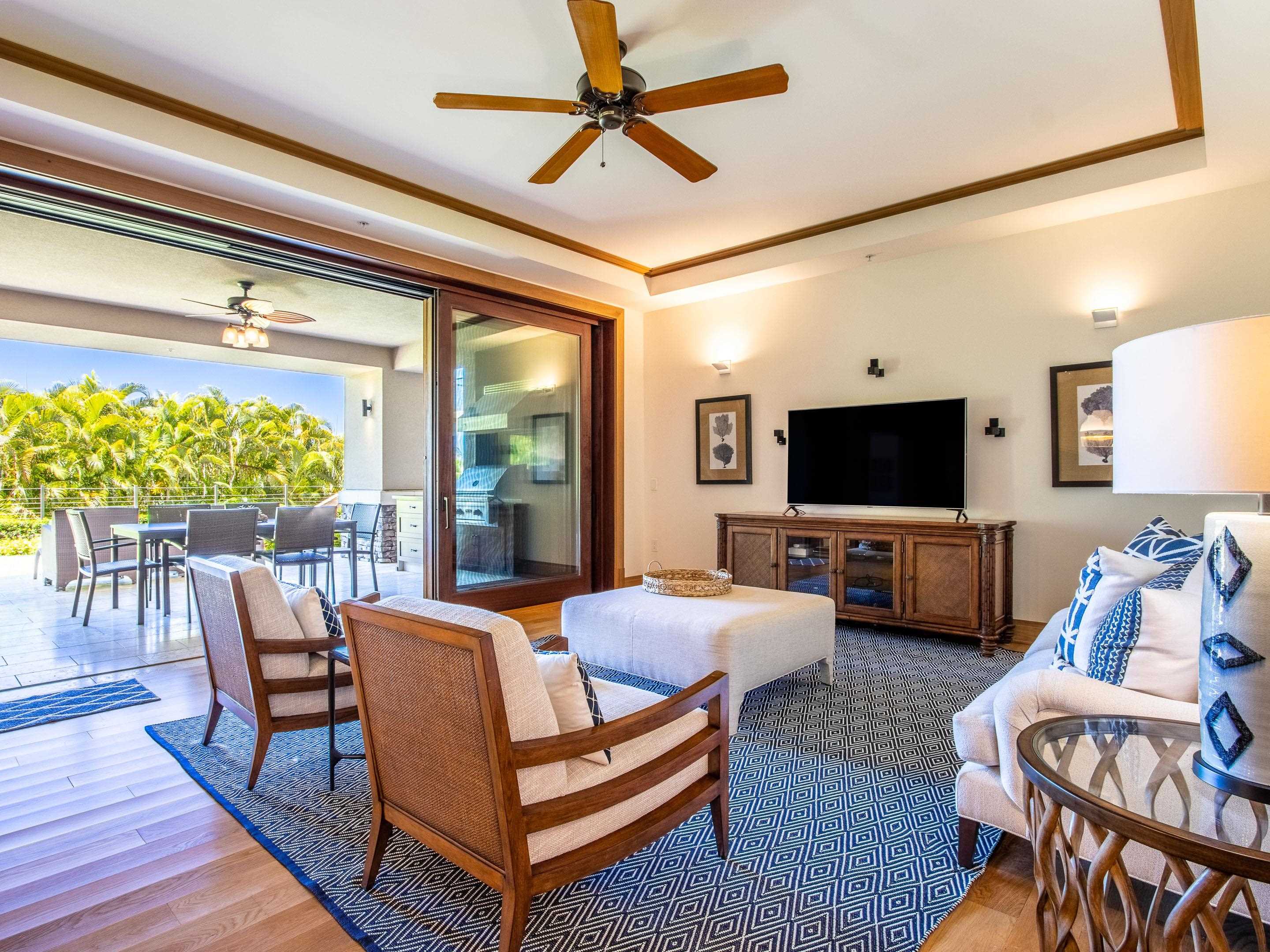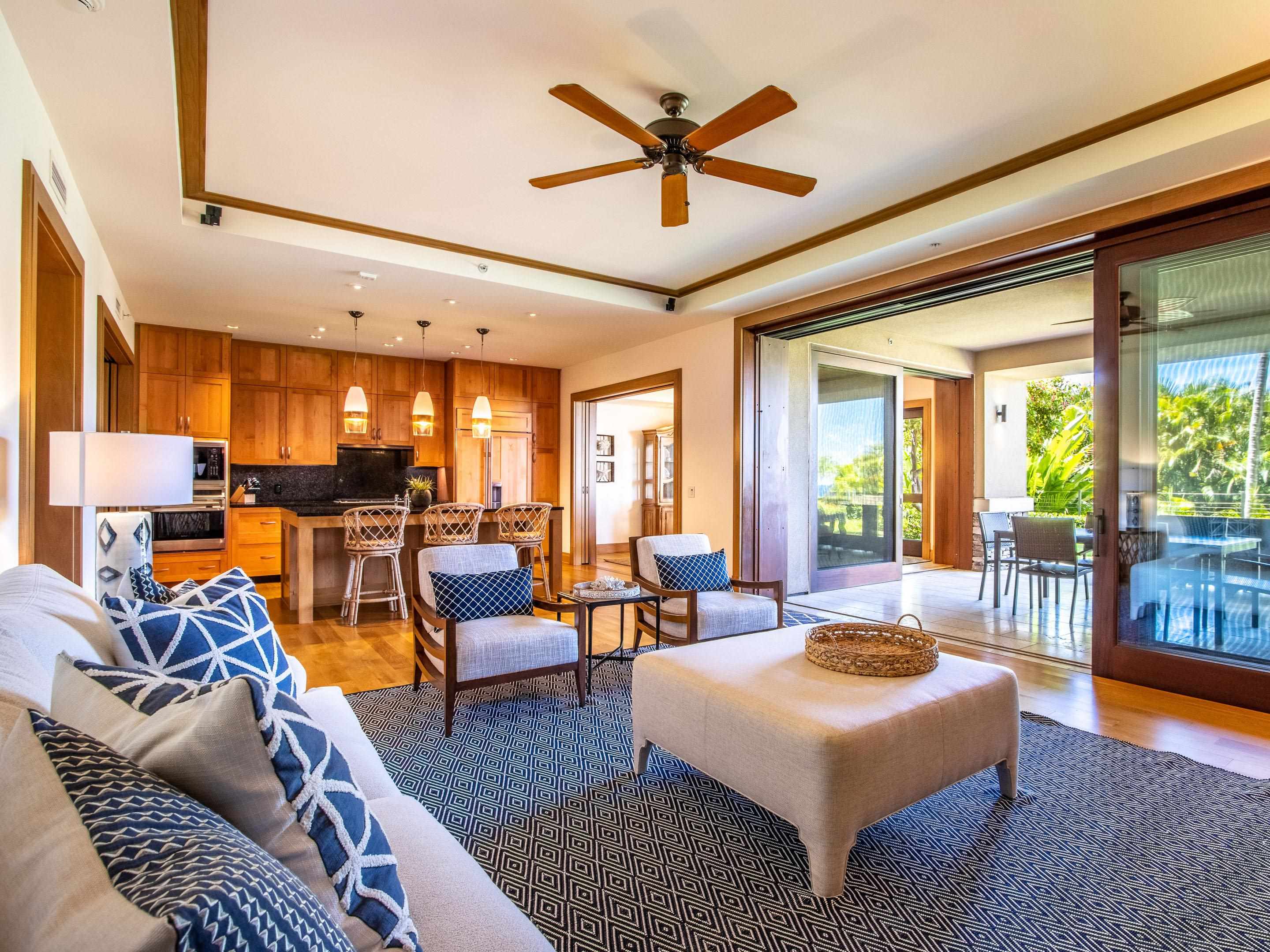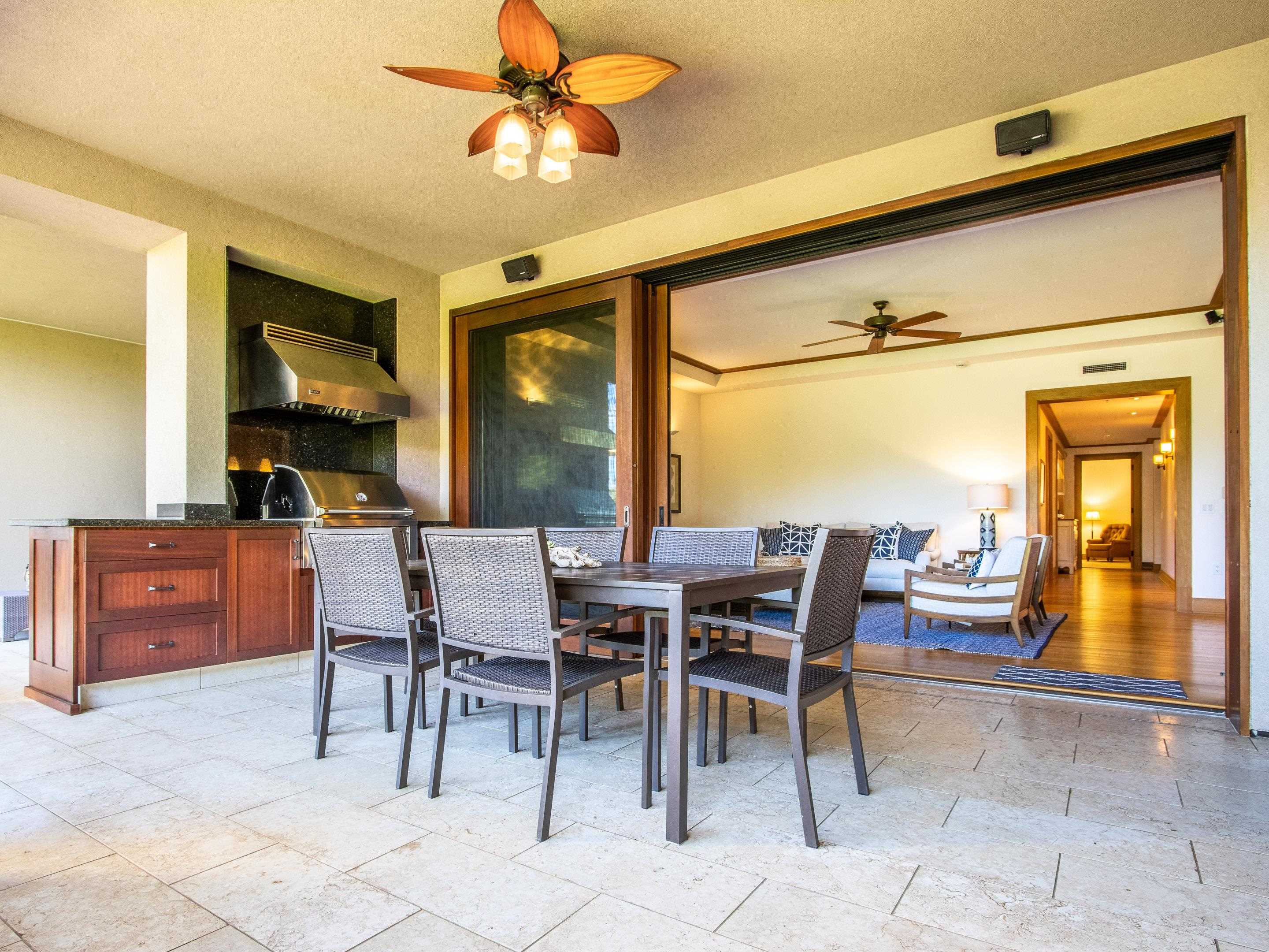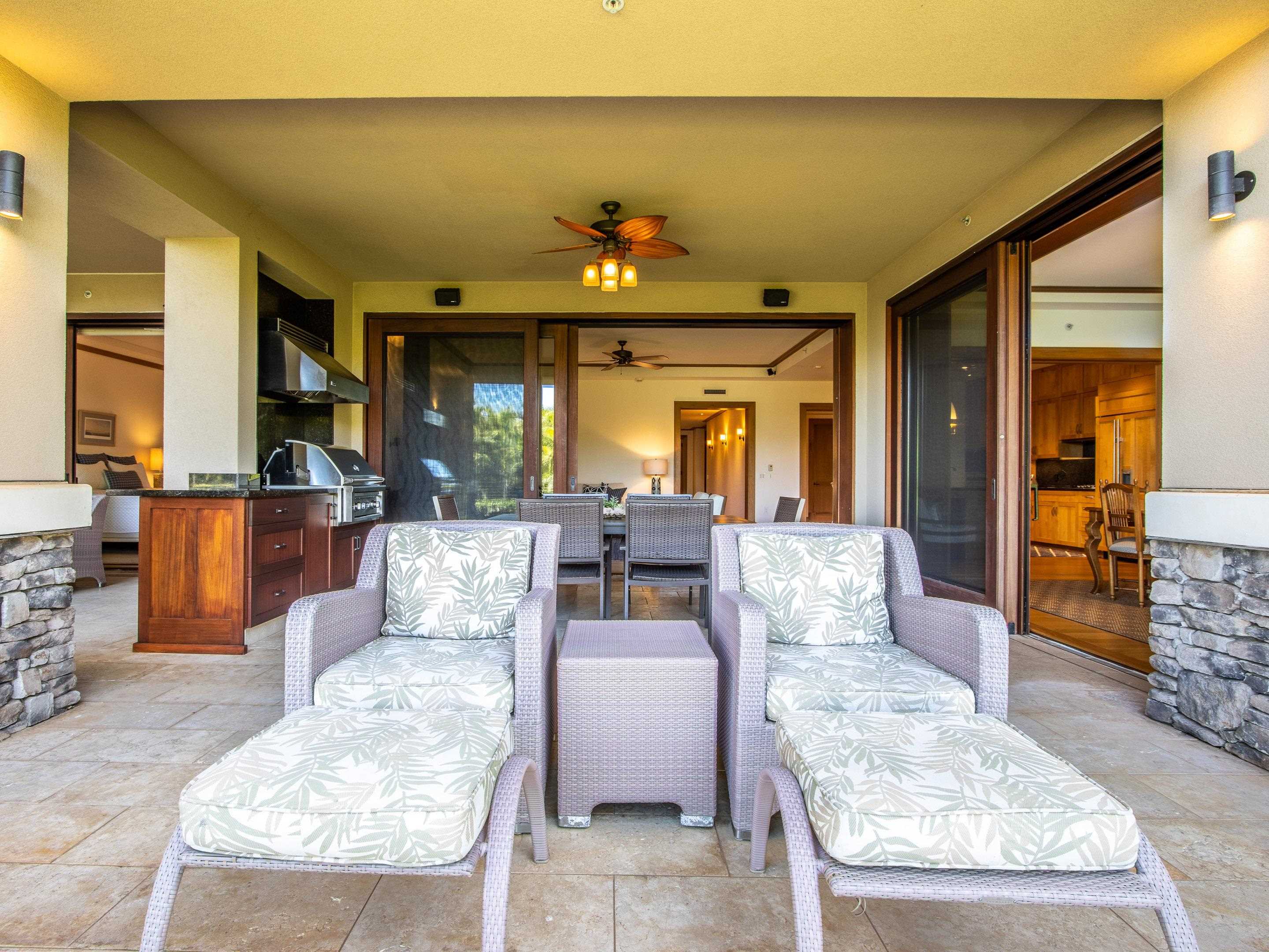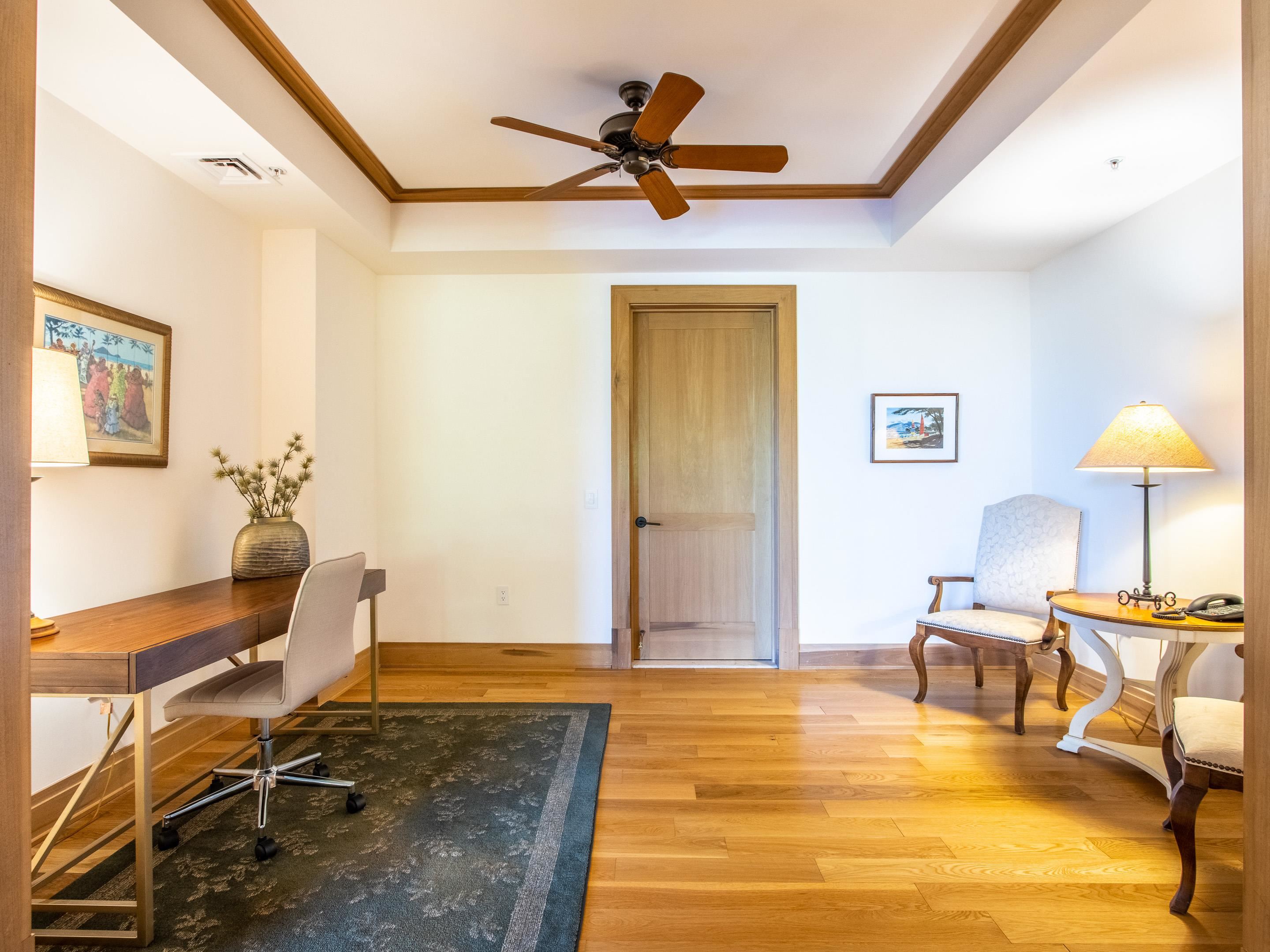 Highly desirable Montage Grand Residence located on the ground level of Building 5 with very close proximity to Kapalua Bay and the Beach Club. This private three-bedroom floorplan also includes a den/office/guest room. It has been enjoyed solely as a primary residence and never rented by its original owner. The spacious lanai offers additional outdoor living space in a lush garden setting with partial ocean view of Kapalua Bay and a brand new built-in outdoor Viking barbeque with mahogany cabinets and granite counter tops. Unique features of this residence include easy garage access to a tandem oversized parking space and owner storage. Ownership of this lovely residence will include access to all Montage and Kapalua Resort five-star amenities including two golf courses, tennis facilities, numerous restaurants and the resort shuttle. Furnishings negotiable.