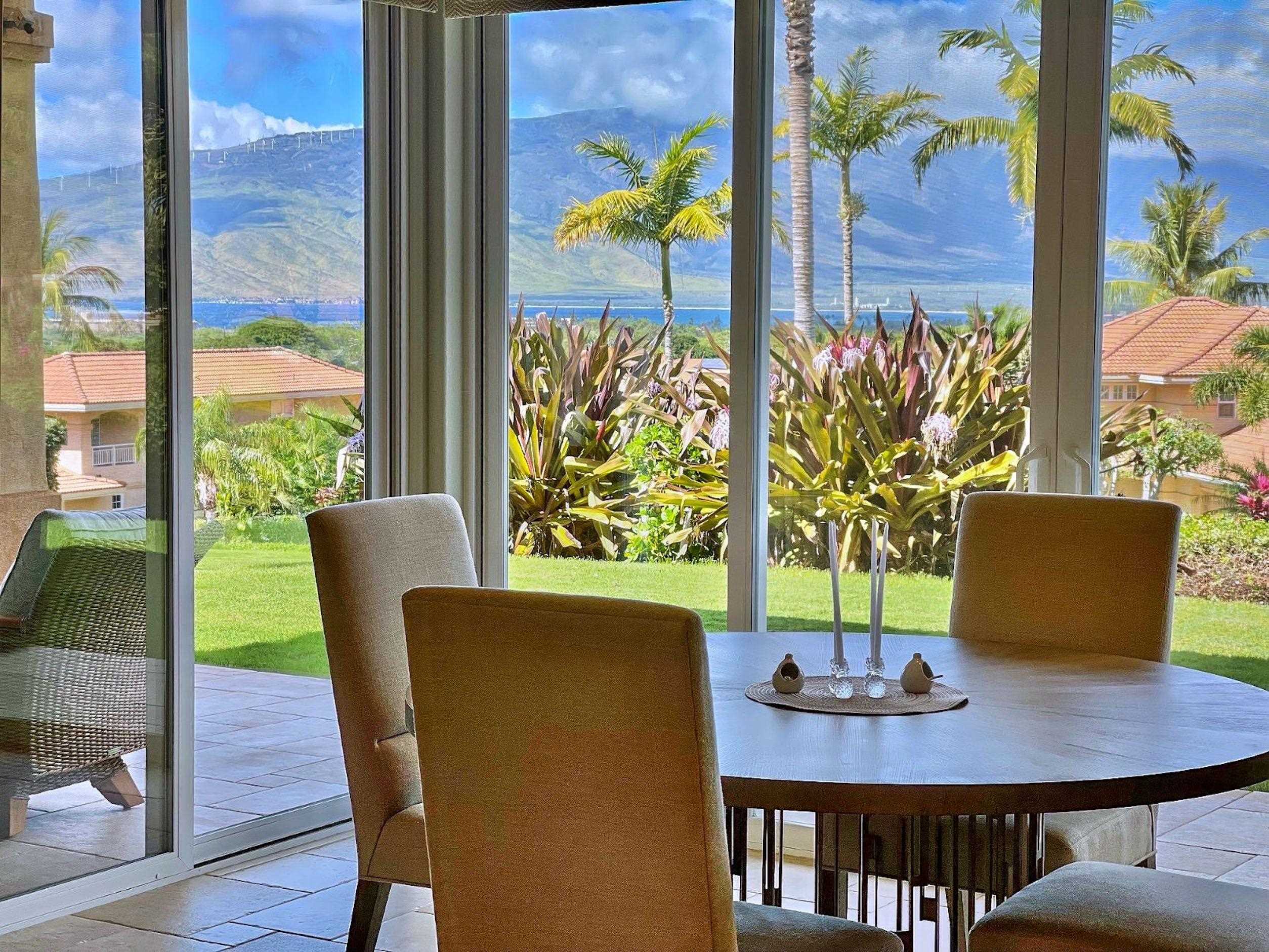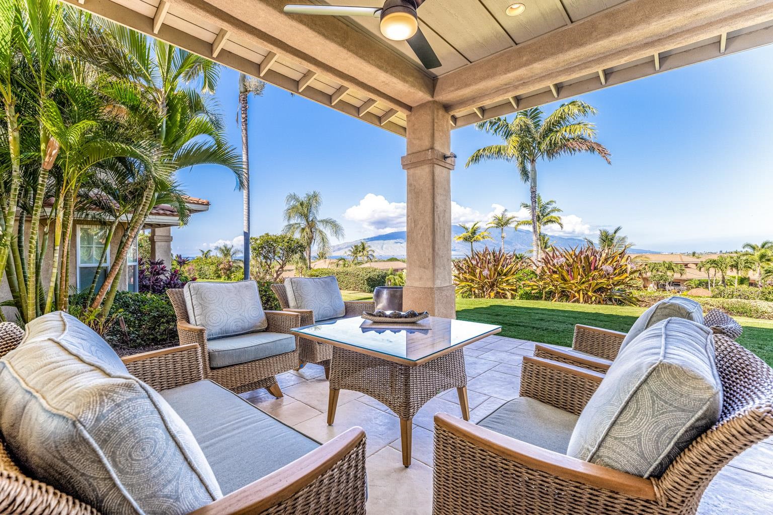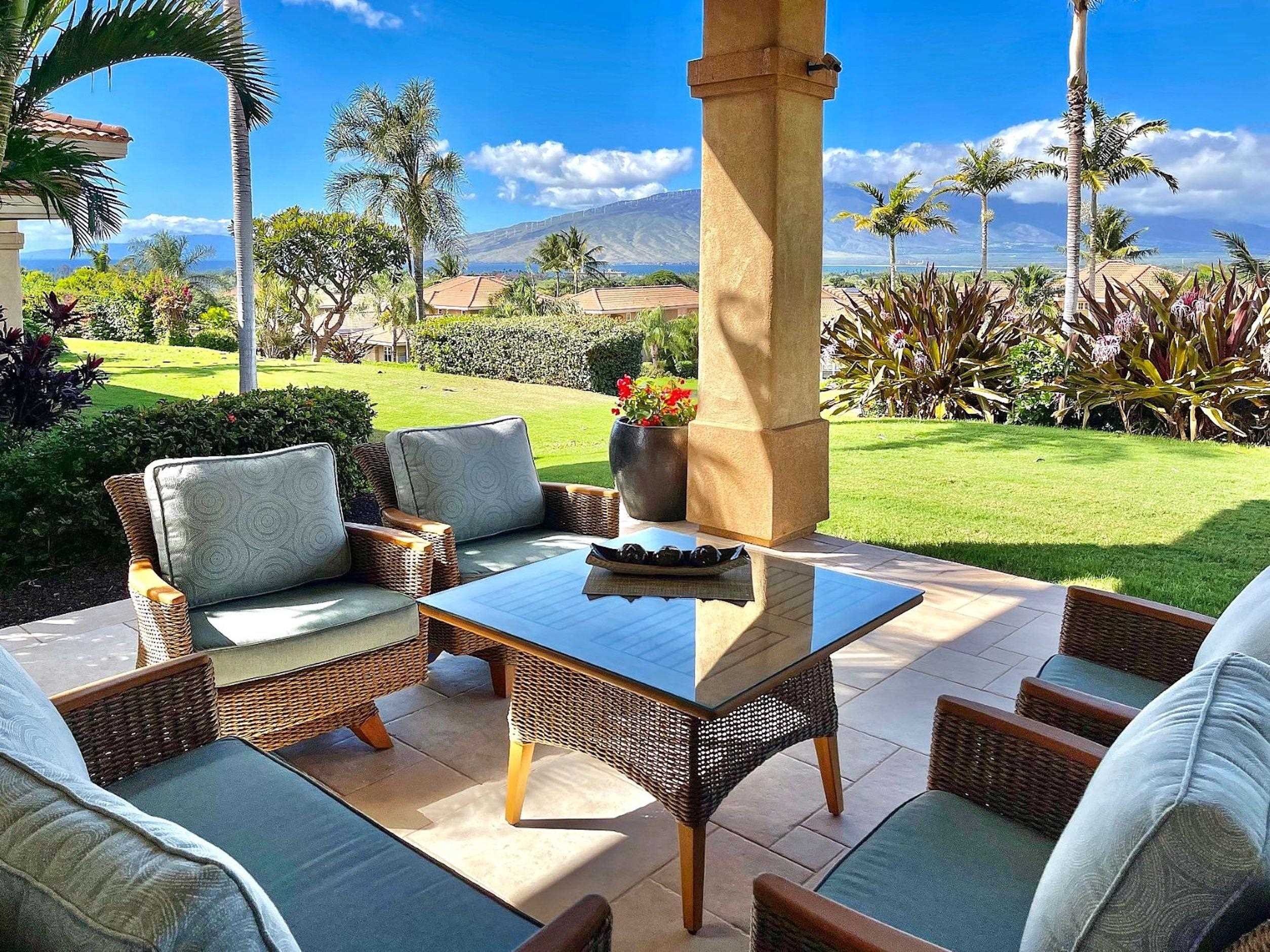 Advantage….Location. Hokulani offers some stellar view locations but this is premium site, away from the highway perched on a knoll with BIG ocean/West Maui Mt. views, the best of the best. Going inside you will be amazed at the top to bottom renovation, completely new kitchen, new master bath with soaking tub, all baths renovated, the home was completely repainted right down to the base boards. Very tastefully appointed a palate that all could appreciate the home comes fully furnished with designer furnishings. Hokulani offers soaring 12 foot high ceilings with with floor to ceiling glass. This gated community has become South Maui's most popular neighborhood, surrounded by the back nine holes of the Maui Nui Golf course the property consists of 40 acres of manicured grounds. An infinity edged pool with breathtaking views and clubhouse is a popular place to meet neighbors. The lifestyle is ideal single family residences in a condominium format that provides a "lock & Leave" lifestyle. Call your agent today for an appointment to view one of S Maui's best offerings. Owner's replaced ac system with A brand new Mitsubishi 3 zone for $35K.
