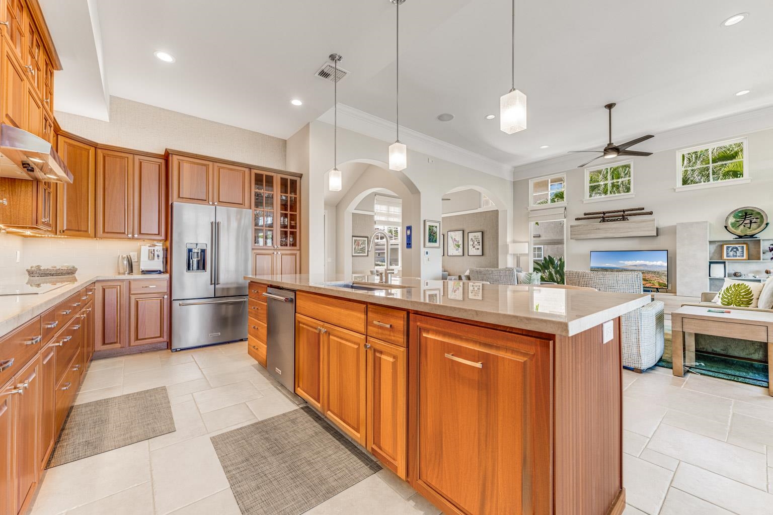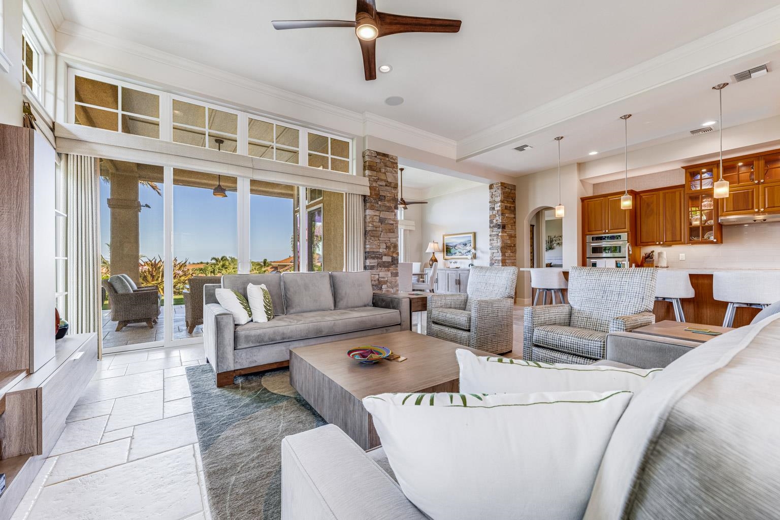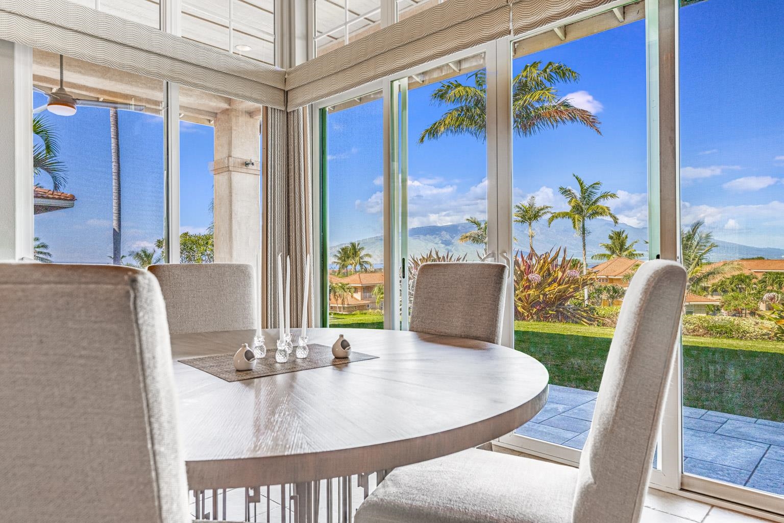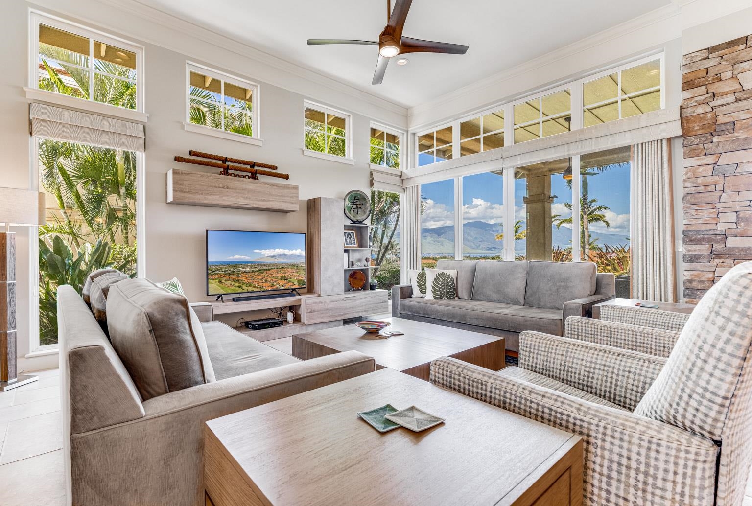 Advantage….Location. Hokulani offers some stellar view locations but this is premium site, away from the highway perched on a knoll with BIG ocean/West Maui Mt. views, the best of the best. Going inside you will be amazed at the top to bottom renovation, completely new kitchen, new master bath with soaking tub, all baths renovated, the home was completely repainted right down to the base boards. Very tastefully appointed a palate that all could appreciate the home comes fully furnished with designer furnishings. Hokulani offers soaring 12 foot high ceilings with with floor to ceiling glass. This gated community has become South Maui's most popular neighborhood, surrounded by the back nine holes of the Maui Nui Golf course the property consists of 40 acres of manicured grounds. An infinity edged pool with breathtaking views and clubhouse is a popular place to meet neighbors. The lifestyle is ideal single family residences in a condominium format that provides a "lock & Leave" lifestyle. Call your agent today for an appointment to view one of S Maui's best offerings. Owner's replaced ac system with A brand new Mitsubishi 3 zone for $35K.