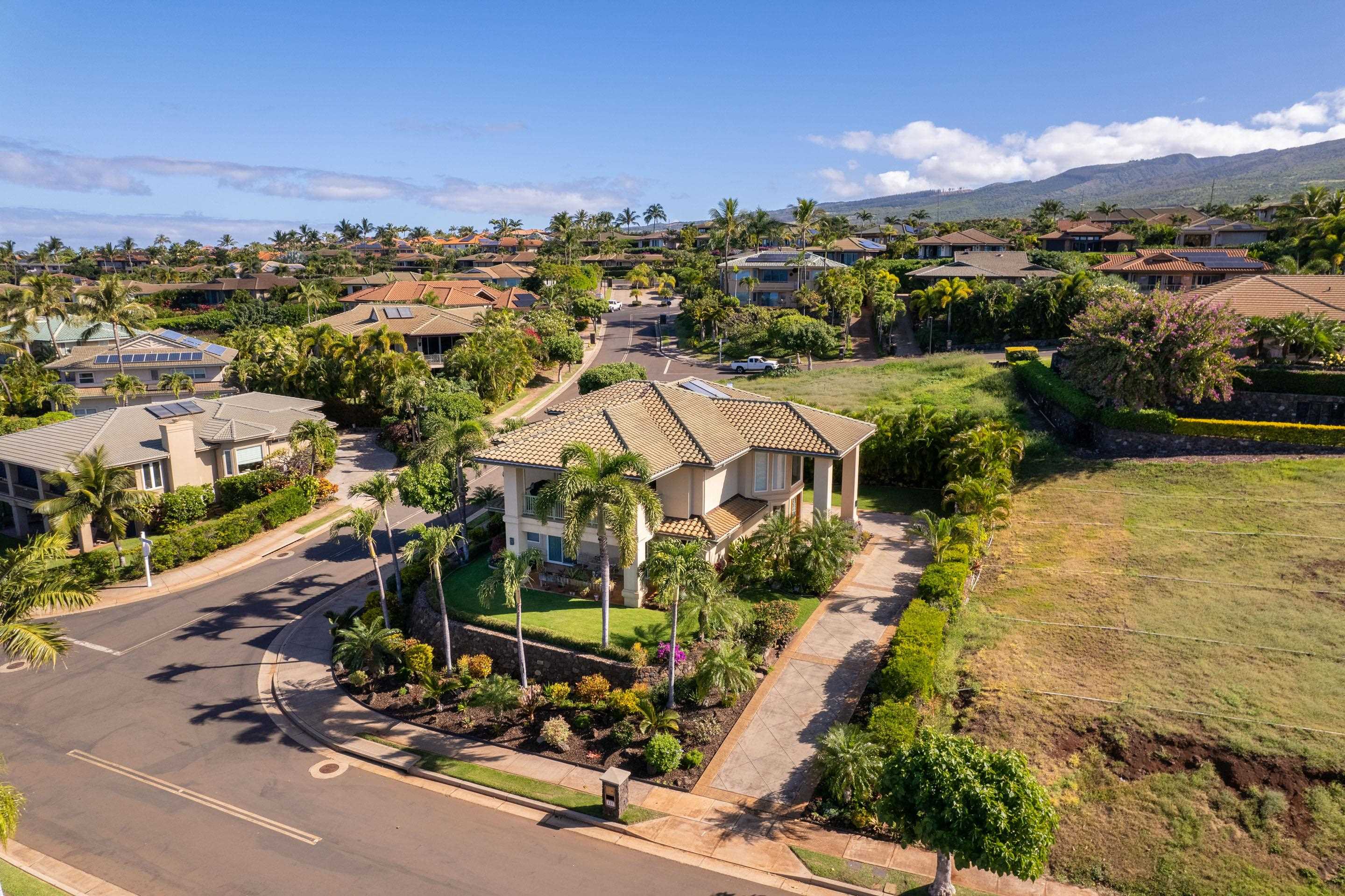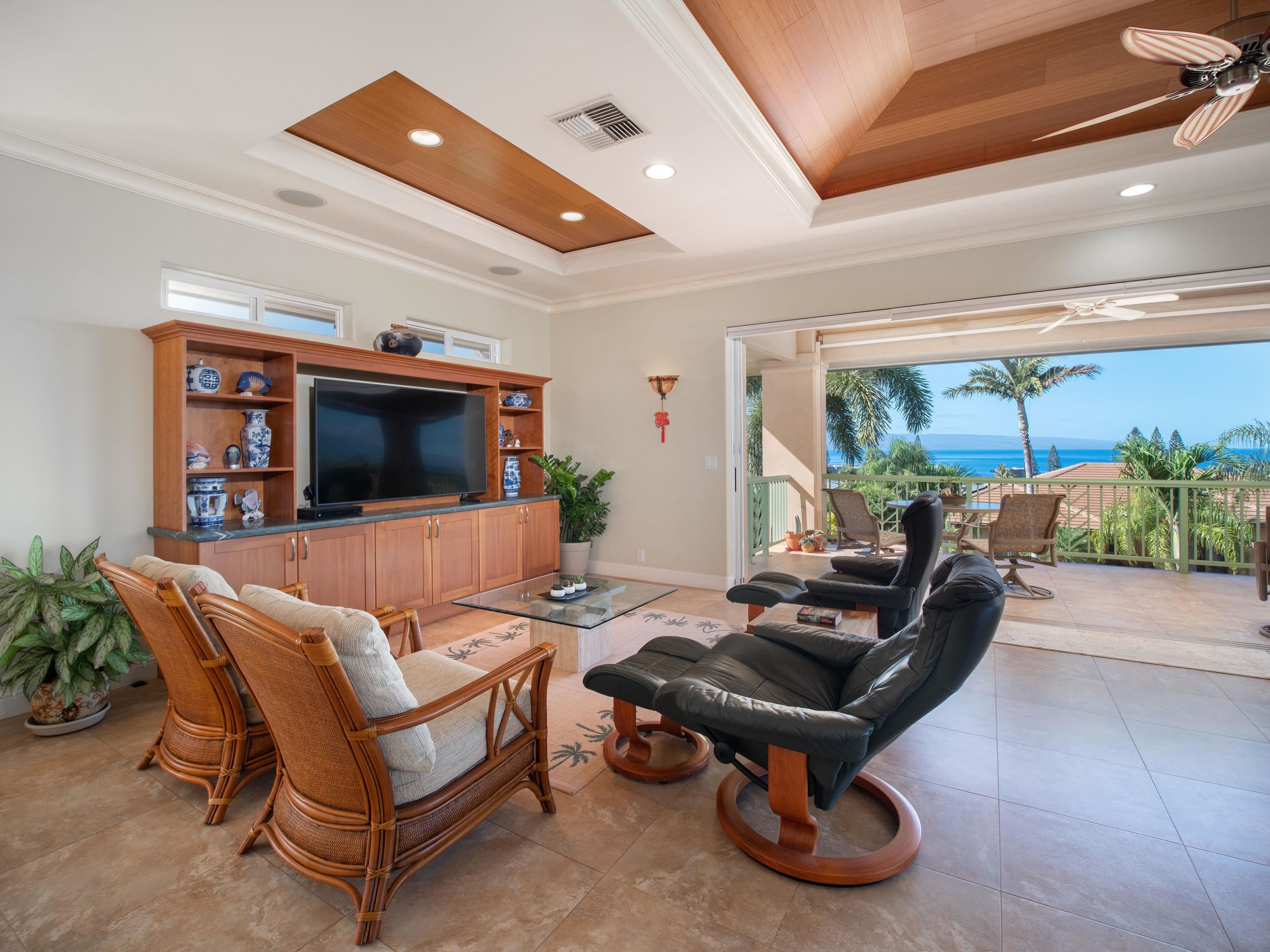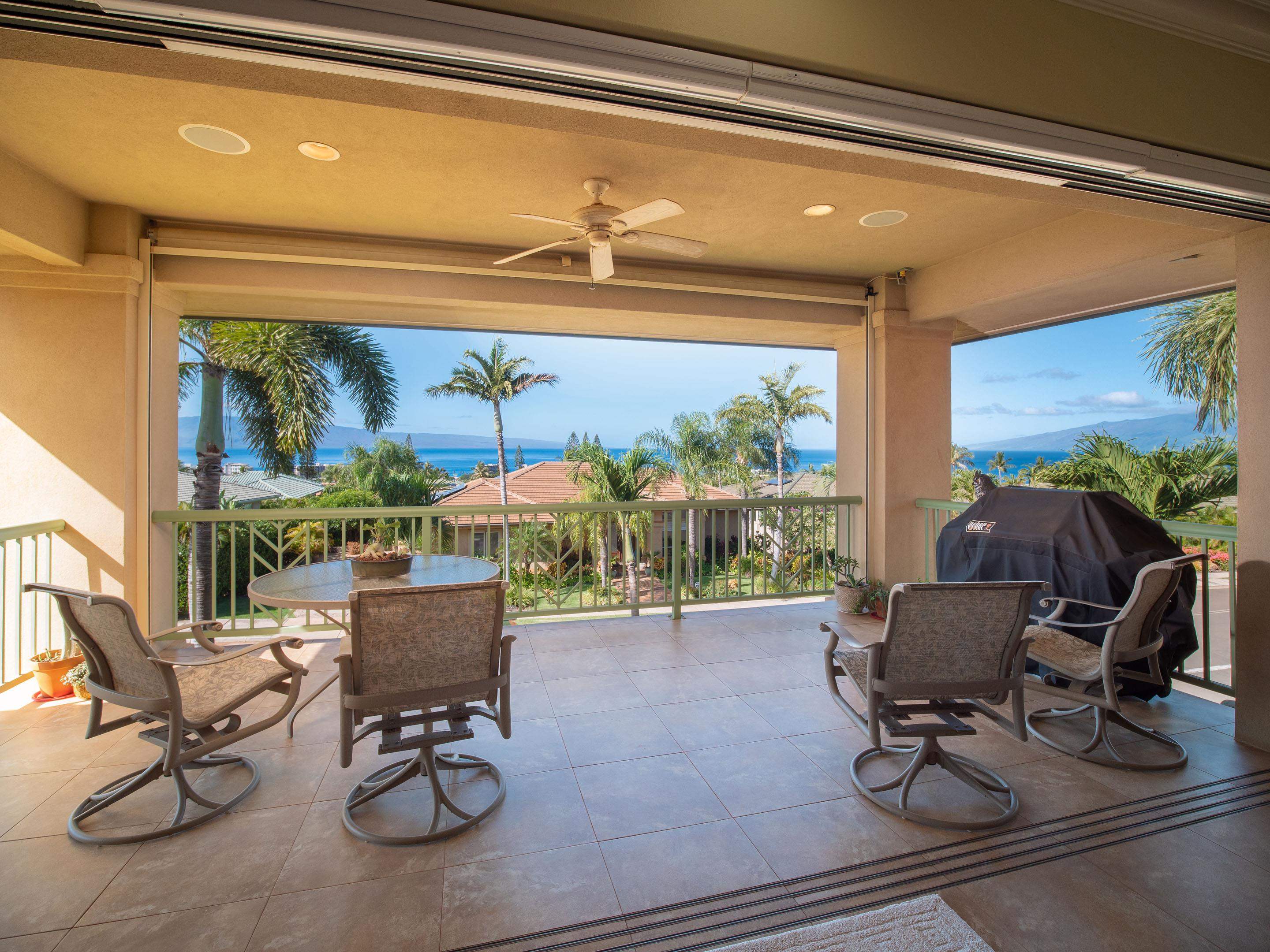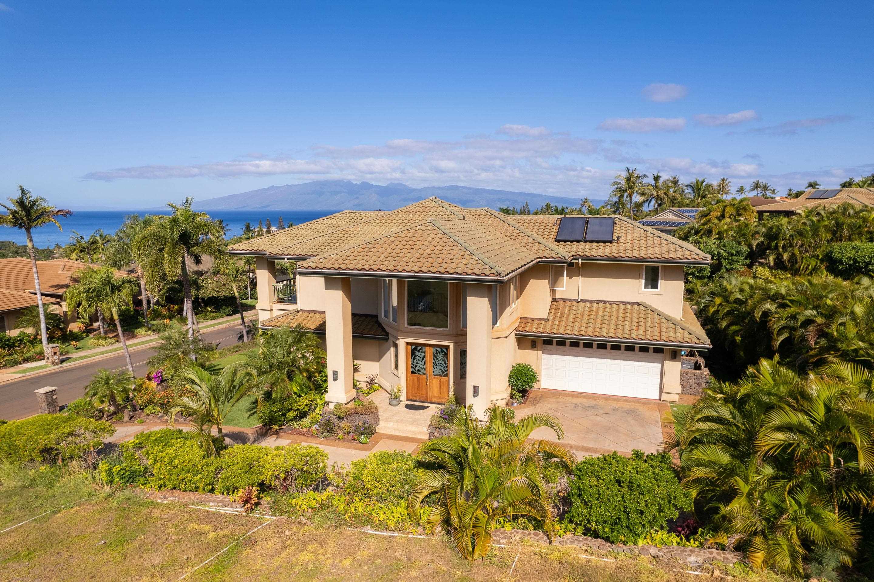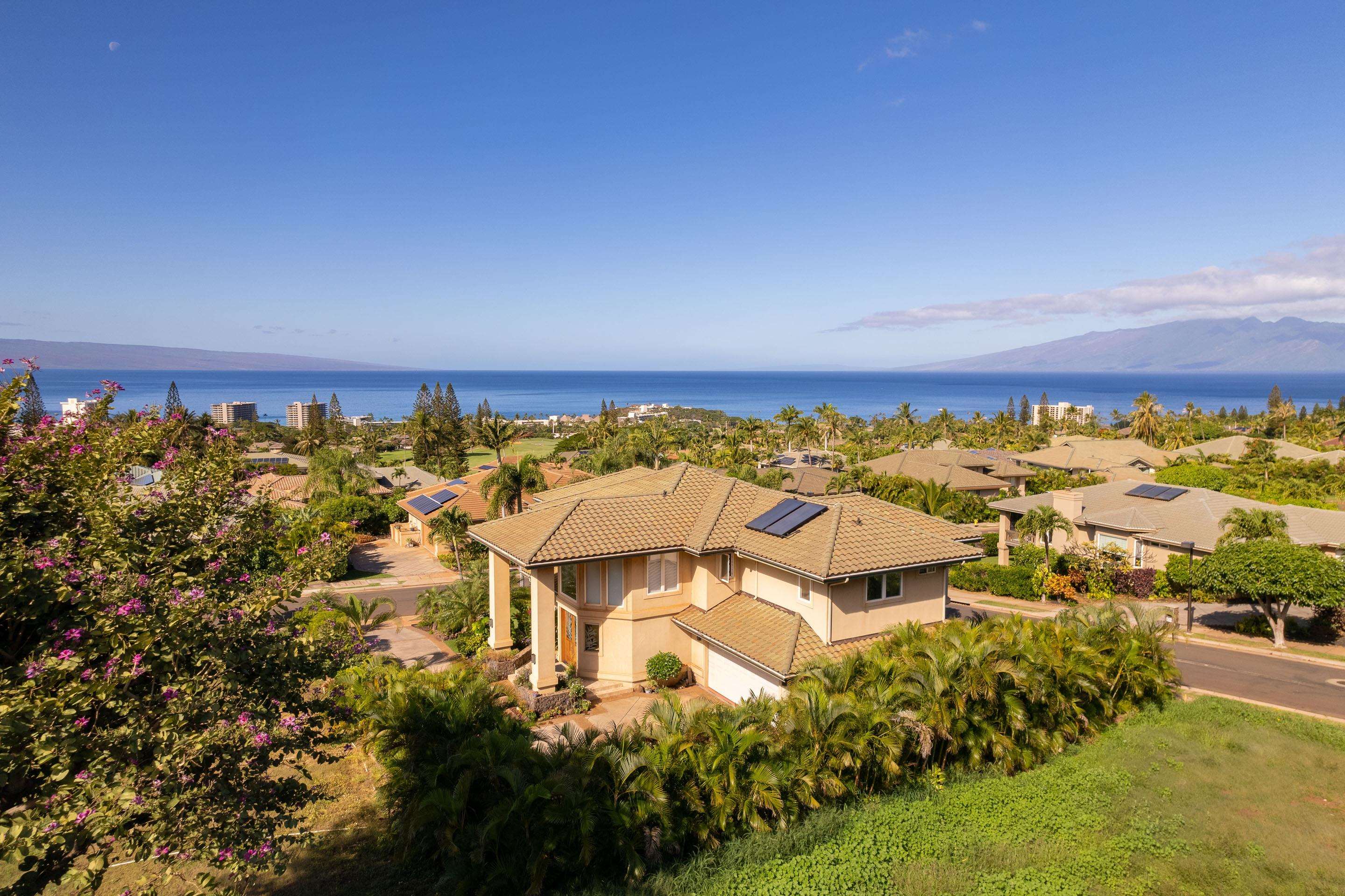 If you seek a quality home, in one of the most prestigious neighborhoods in West Maui, with beautiful ocean views, you found it! This island home in the gated community of Kaanapali Golf Estates, with sweeping views of the ocean, Lanai and Molokai, is being sold turnkey and furnished. With the kitchen and living upstairs, you'll love the large open plan living area which opens up to a huge lanai looking direct west for spectacular lingering West Maui sunsets each evening. Custom home with high end features including rain forest granite, Cherry Cabinets, smooth Italian porcelain tiled floors, Limestone and Travertine in bathrooms. Gourmet kitchen equipped with Wolf gas stove, microwave and oven, Subzero refrigerator and Bosch dishwasher. Living Room has 10' ceilings with accent bamboo and pocket Fleetwood doors which open to the wide covered lanai for a seamless indoor/outdoor living environment. The indoor laundry room houses the dumb waiter. And just minutes away you'll enjoy some of the best beaches in the world, 5-star resorts, restaurants, shops, and world-class golf, all just down the hill from your new home!