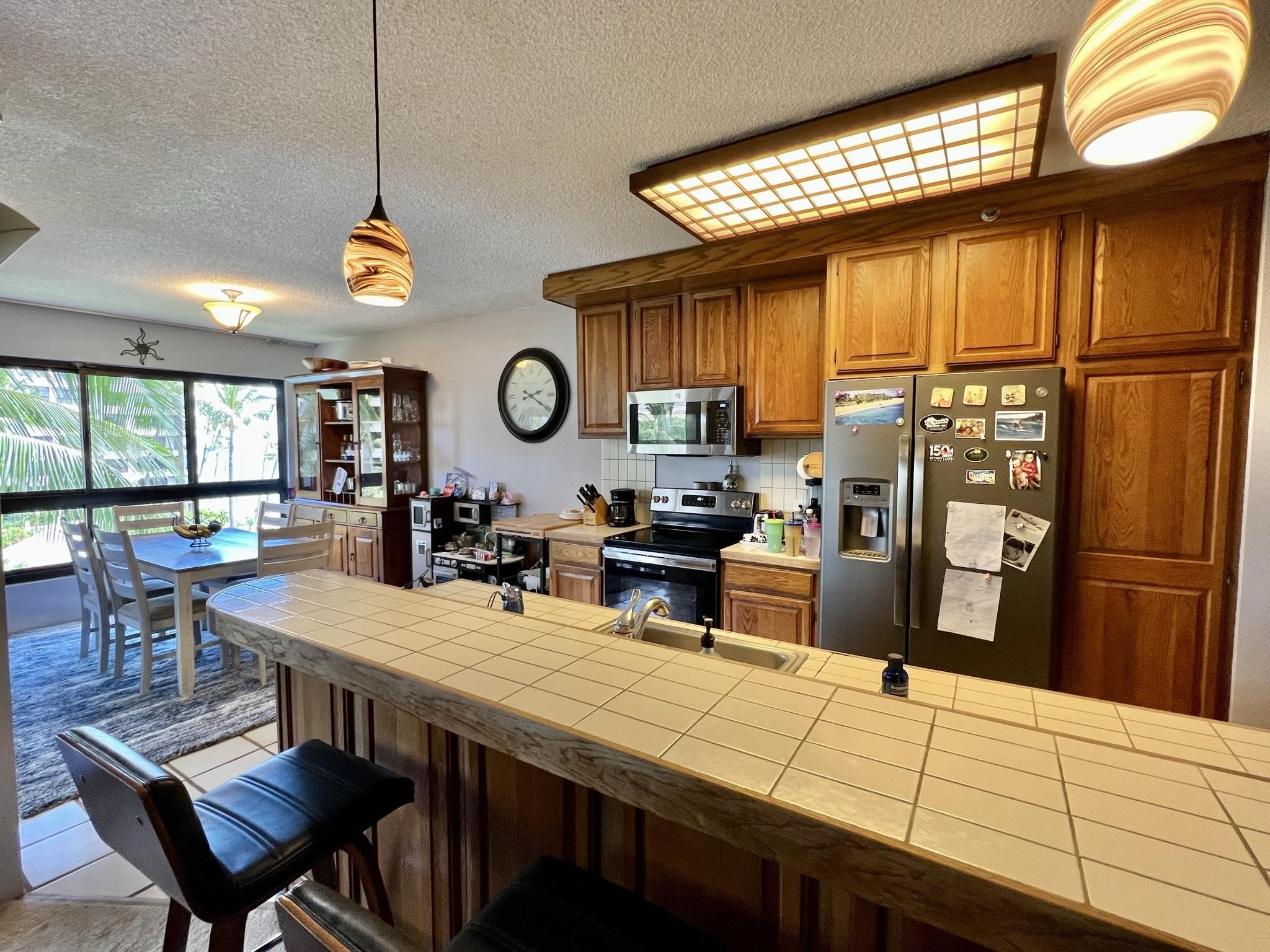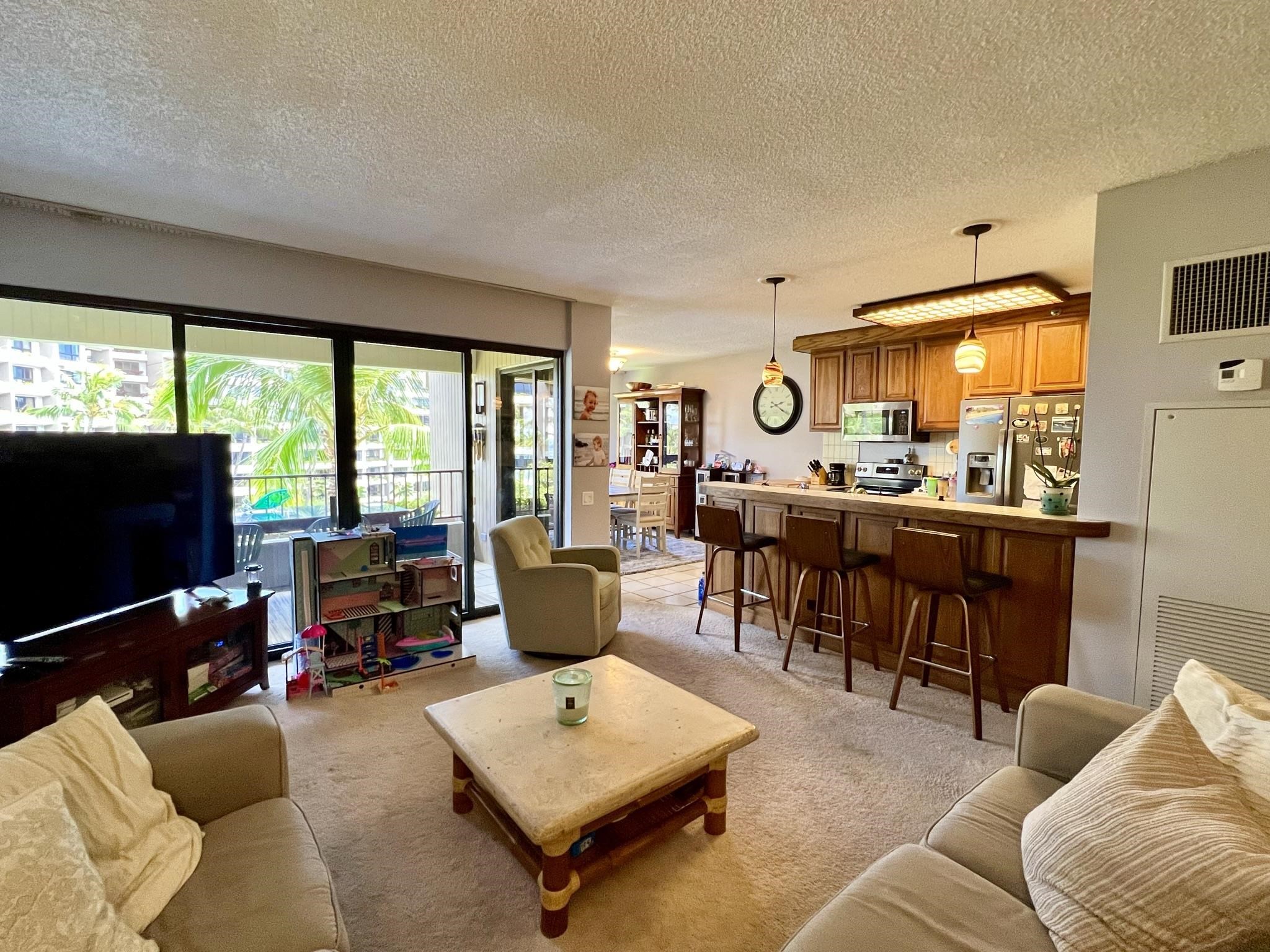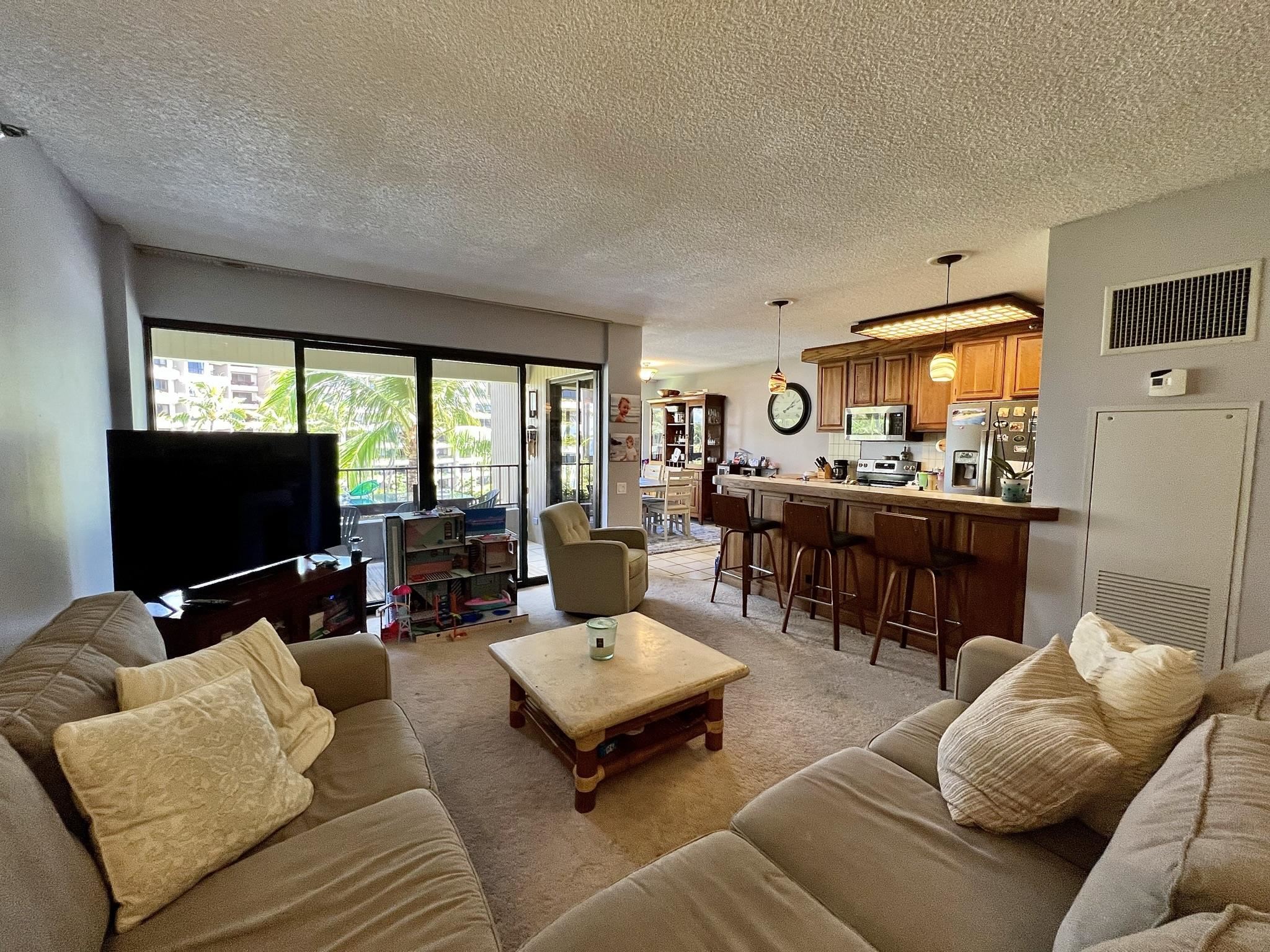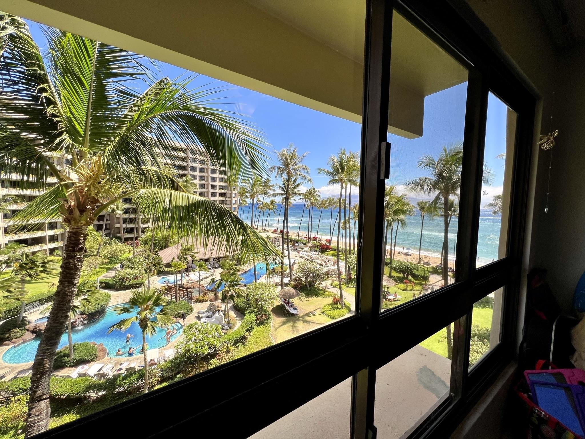 Welcome to Kaanapali Alii I-504, a luxury resort and beachfront residence or vacation rental on the world famous Kaanapali Beach. Desirable inner courtyard location with breathtaking southwest views over the beach side pools and lush tropical gardens to the coastline, ocean, and outer island view. This spacious two-bedroom 2-bath unit has an open floor plan, separate dining area, oversized covered lanai to enjoy the breeze from, interior full-size washer and dryer, and central air conditioning. There is no better place to enjoy the island life from with the resort neighboring 2 championship golf courses, restaurants, shops, ocean activities, and hiking nearby, plus the resort amenities including a state-of-the art fitness center, tennis courts, pools and hot tubs, spa and concierge services, assigned parking, oceanfront BBQs, and priceless strolls down the oceanfront resort path. Unit is mostly in original condition and priced to reflect the needed updates. Currently Tenant occupied with a long-term lease in place. Requires 48+ hours notice to view.