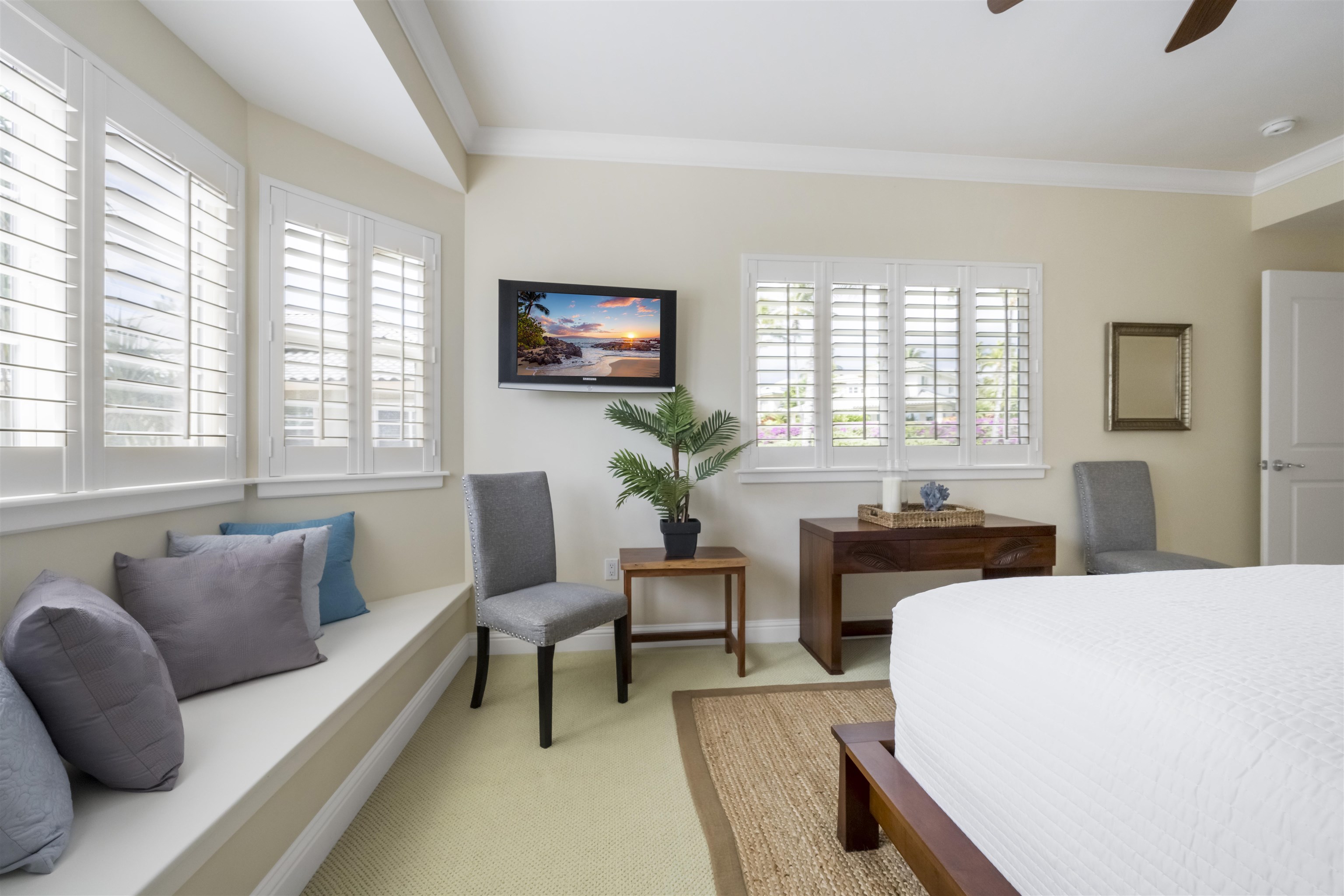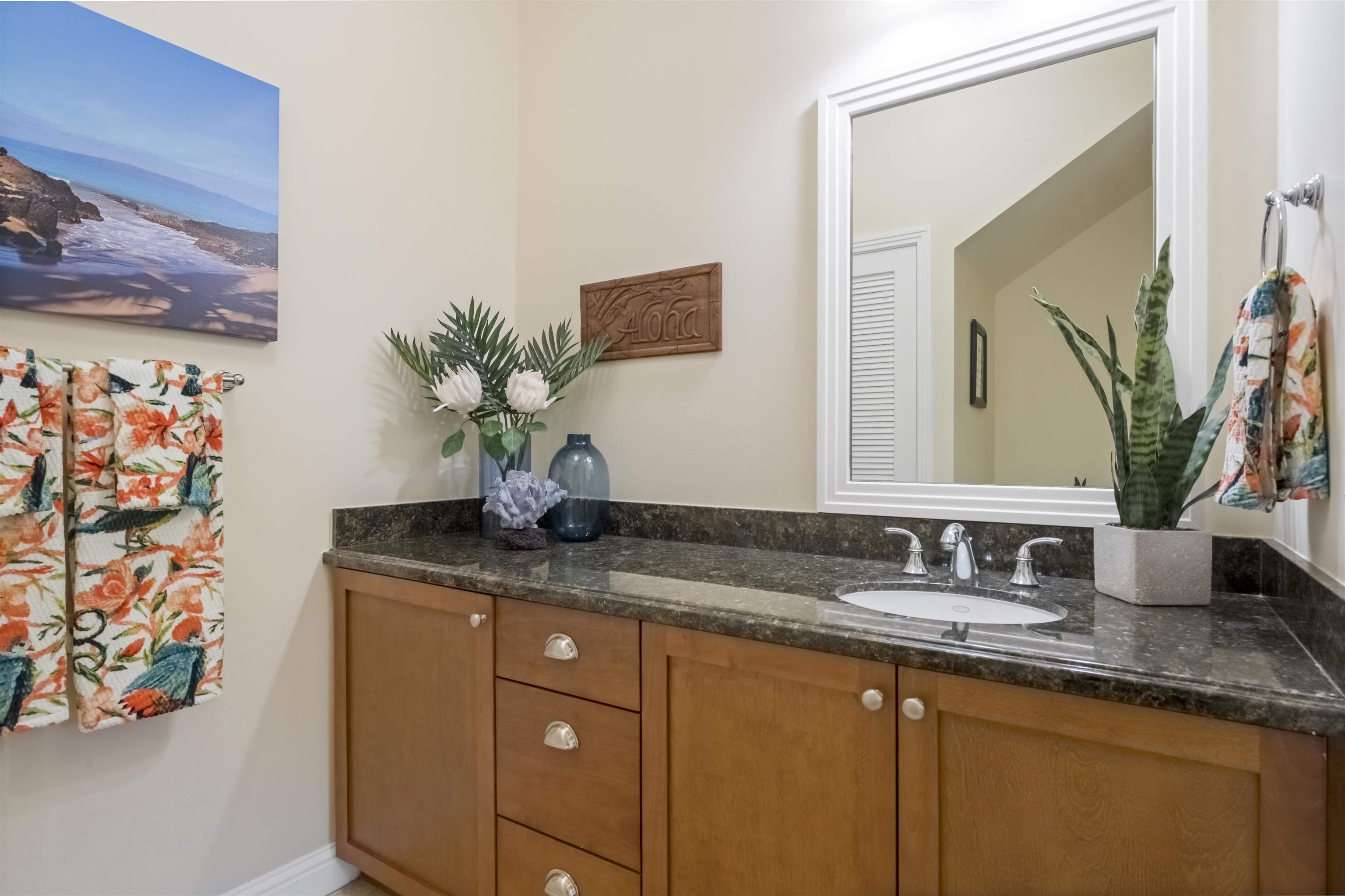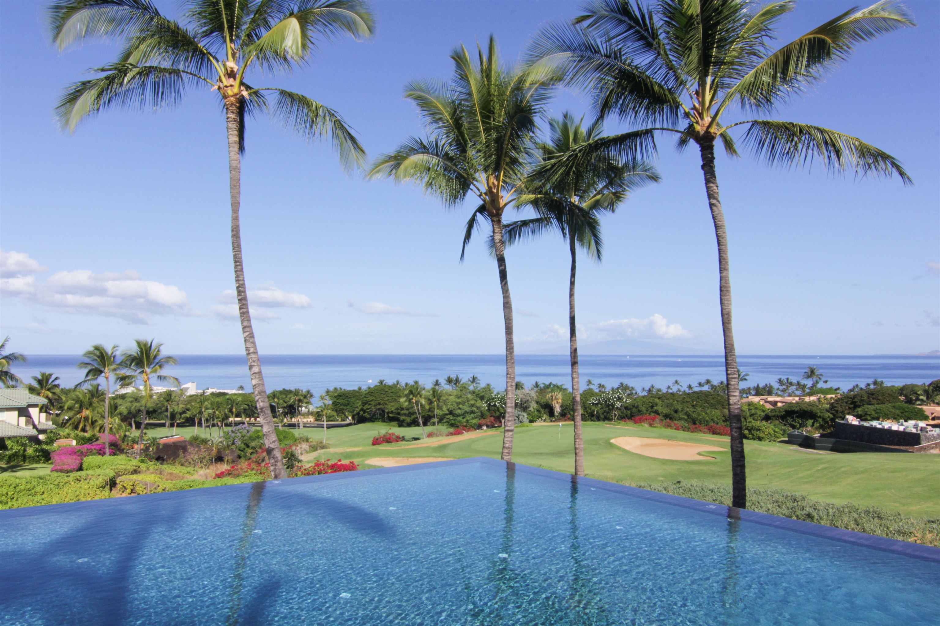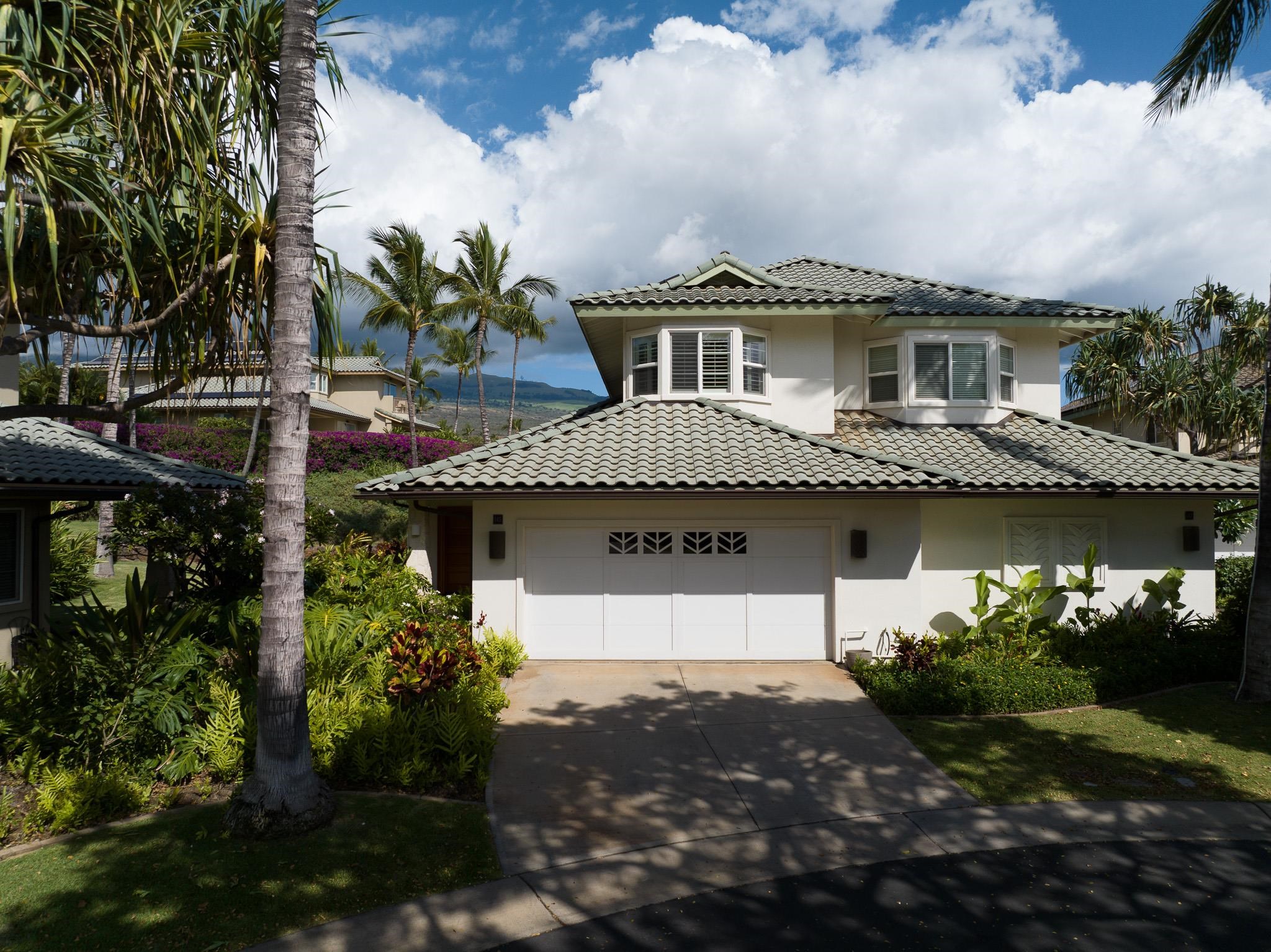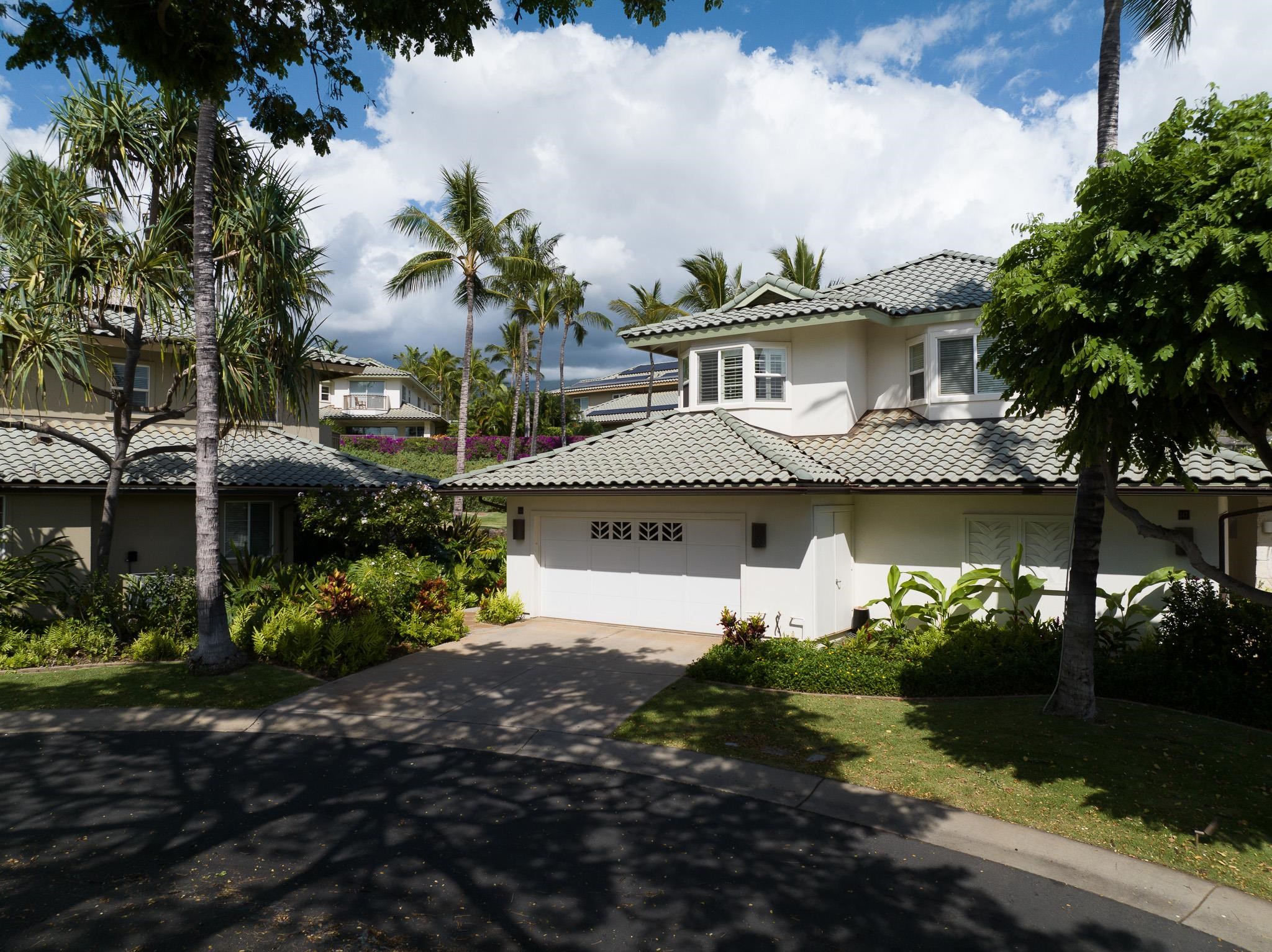 145 Kai La Place sets in the beautiful gated community of Kai Malu. This townhome is the "Honua" floor plan with the primary suite on the main. Stepping inside you will find an open vaulted ceiling floor plan allowing abundant natural lighting. This home has an extended yard and lanai to enjoy the morning Haleakala sunrise view and the relaxing backdrop of Haleakala Mountain & Wailea Blue Golf Course. The primary suite includes two large closets with a separate shoe closet. The primary bathroom has double vanities, walk-in shower, large soaking tub & separate water closet with beautiful sea glass doors. A half bath & laundry room is on the main floor with 2 oversized bedrooms & full bathroom upstairs overlooking the golf course. The oversized 2 car garage with 2 extra storage closets conveniently enters into the open gourmet kitchen with stainless appliances, Subzero refrigerator/freezer, convection oven, built in microwave, vented cooktop, black contemporary faucet, 3 stage water filter system, a custom coffee bar with De Longhi espresso maker, wine/beverage cooler & walk-in pantry. This town home features 2 Tesla power walls and 40 photovoltaic panels for low energy bills. A newer Lennox 4 ton, 22 seer AC unit, custom white plantation shutters & the kitchen and 3 bathrooms have granite counters & travertine stone flooring. The living room, dining room & primary suite all feature wood flooring & modern ceiling fans. You will enjoy this private location on a peaceful cul-de-sac & the manicured tropical landscaping. The open-air clubhouse has an outdoor fitness center with panoramic ocean views to enjoy year round sunset views from Wailea's finest 75 ft. infinity lap pool & oversized hot tub. The clubhouse bathrooms each feature a sauna, steam spa, private outdoor shower & indoor showers. The office has onsite staff daily & security on the weekends. Relax and breathe in all Wailea, Maui has to offer.