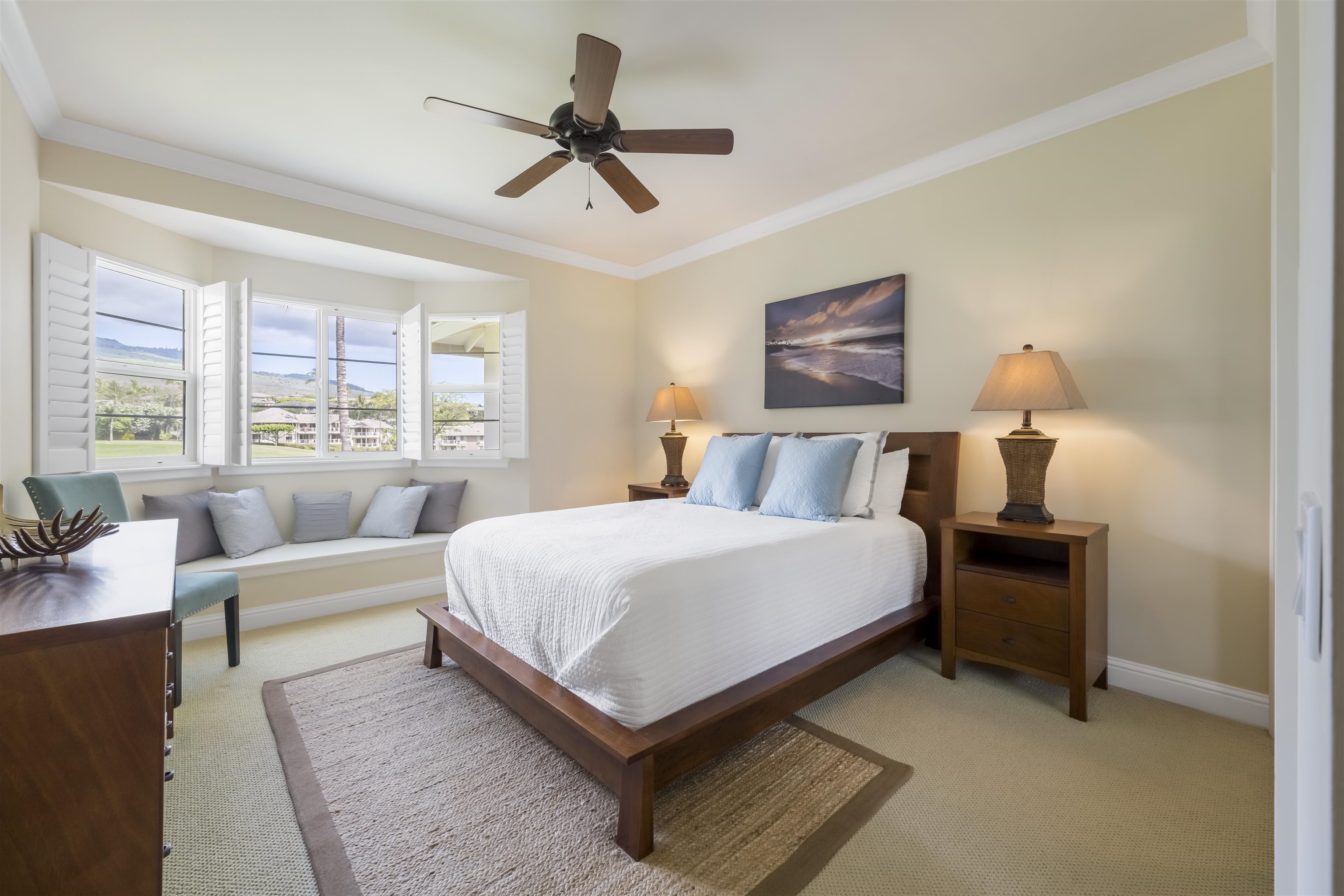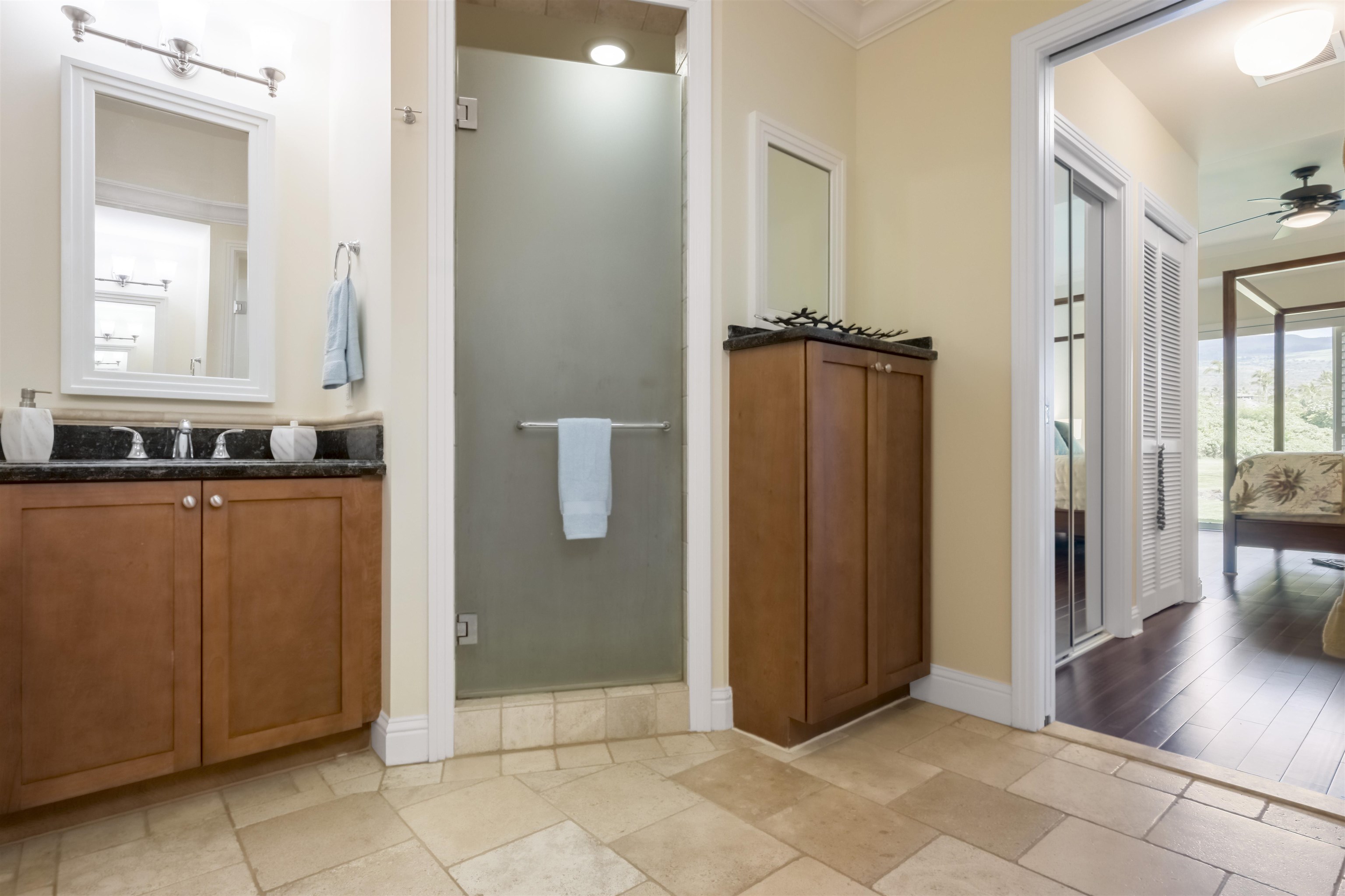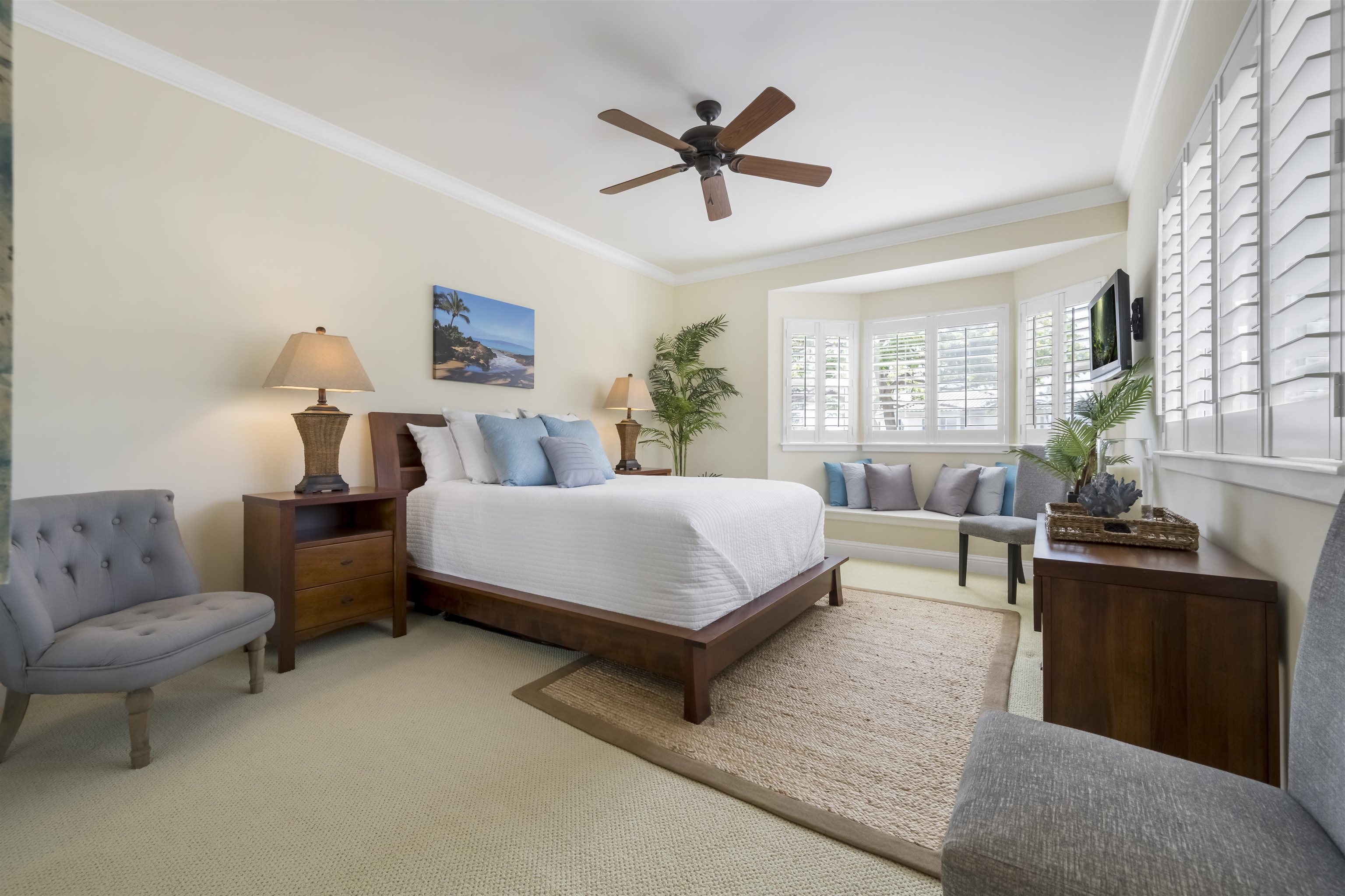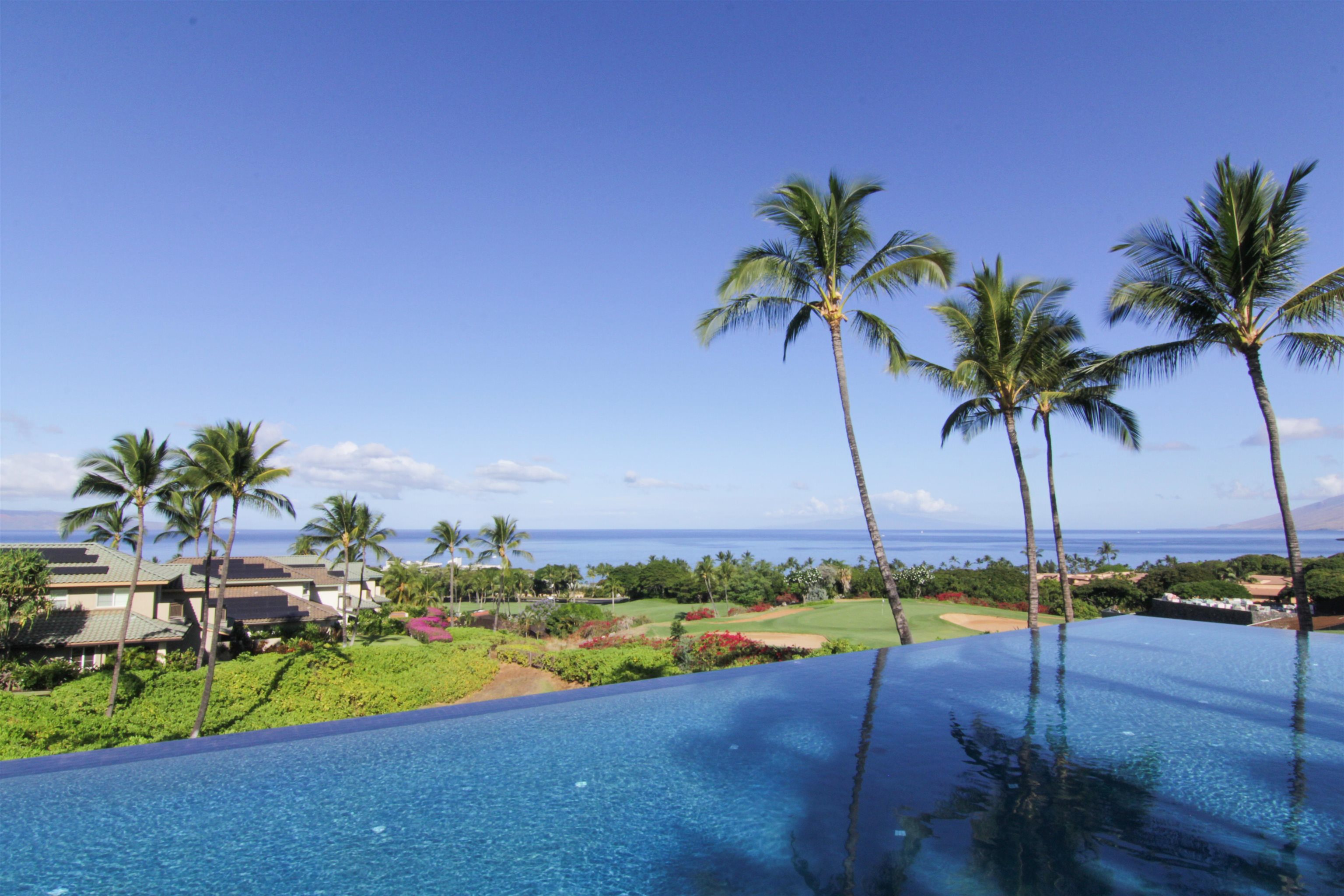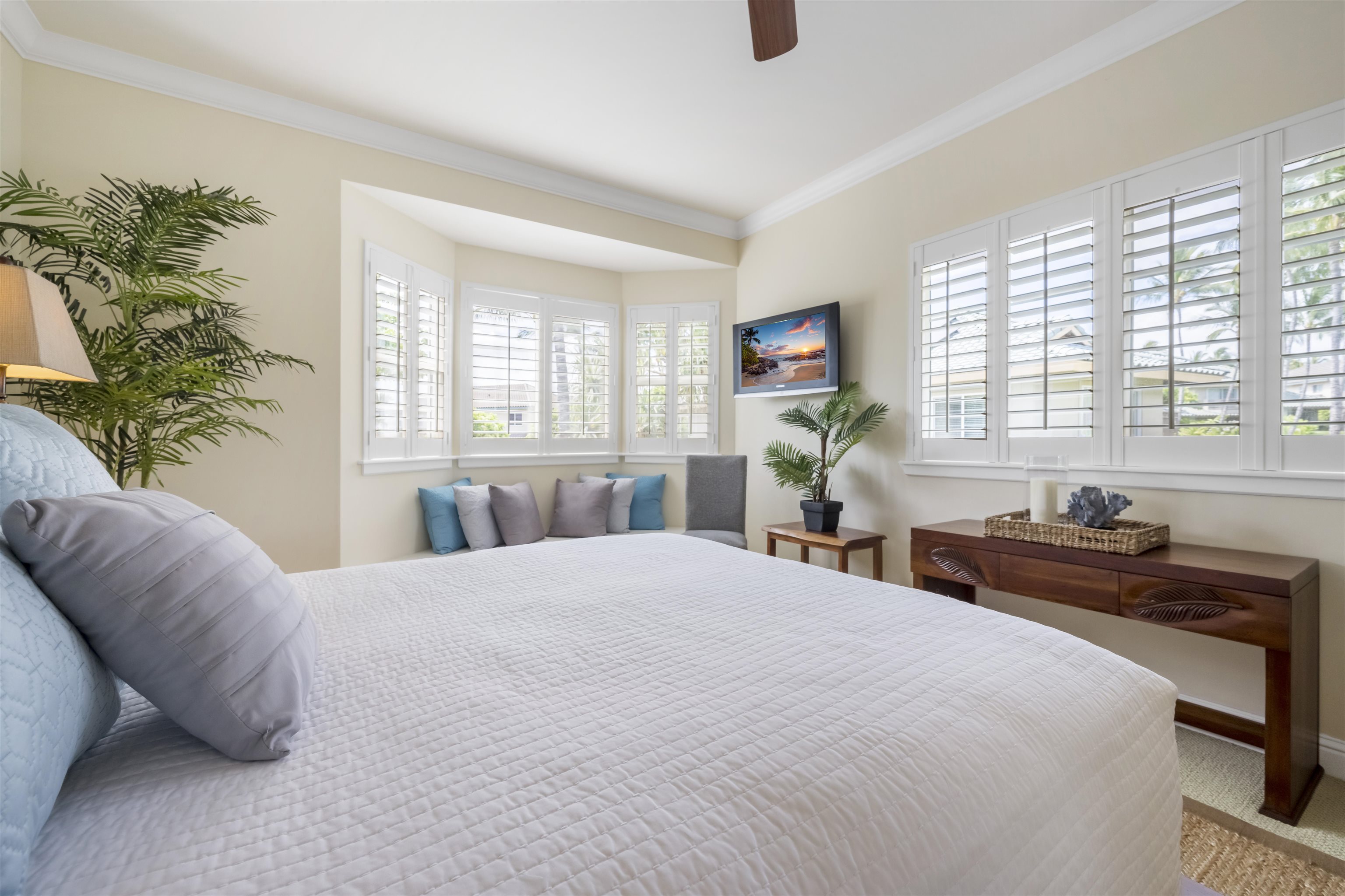 145 Kai La Place sets in the beautiful gated community of Kai Malu. This townhome is the "Honua" floor plan with the primary suite on the main. Stepping inside you will find an open vaulted ceiling floor plan allowing abundant natural lighting. This home has an extended yard and lanai to enjoy the morning Haleakala sunrise view and the relaxing backdrop of Haleakala Mountain & Wailea Blue Golf Course. The primary suite includes two large closets with a separate shoe closet. The primary bathroom has double vanities, walk-in shower, large soaking tub & separate water closet with beautiful sea glass doors. A half bath & laundry room is on the main floor with 2 oversized bedrooms & full bathroom upstairs overlooking the golf course. The oversized 2 car garage with 2 extra storage closets conveniently enters into the open gourmet kitchen with stainless appliances, Subzero refrigerator/freezer, convection oven, built in microwave, vented cooktop, black contemporary faucet, 3 stage water filter system, a custom coffee bar with De Longhi espresso maker, wine/beverage cooler & walk-in pantry. This town home features 2 Tesla power walls and 40 photovoltaic panels for low energy bills. A newer Lennox 4 ton, 22 seer AC unit, custom white plantation shutters & the kitchen and 3 bathrooms have granite counters & travertine stone flooring. The living room, dining room & primary suite all feature wood flooring & modern ceiling fans. You will enjoy this private location on a peaceful cul-de-sac & the manicured tropical landscaping. The open-air clubhouse has an outdoor fitness center with panoramic ocean views to enjoy year round sunset views from Wailea's finest 75 ft. infinity lap pool & oversized hot tub. The clubhouse bathrooms each feature a sauna, steam spa, private outdoor shower & indoor showers. The office has onsite staff daily & security on the weekends. Relax and breathe in all Wailea, Maui has to offer.