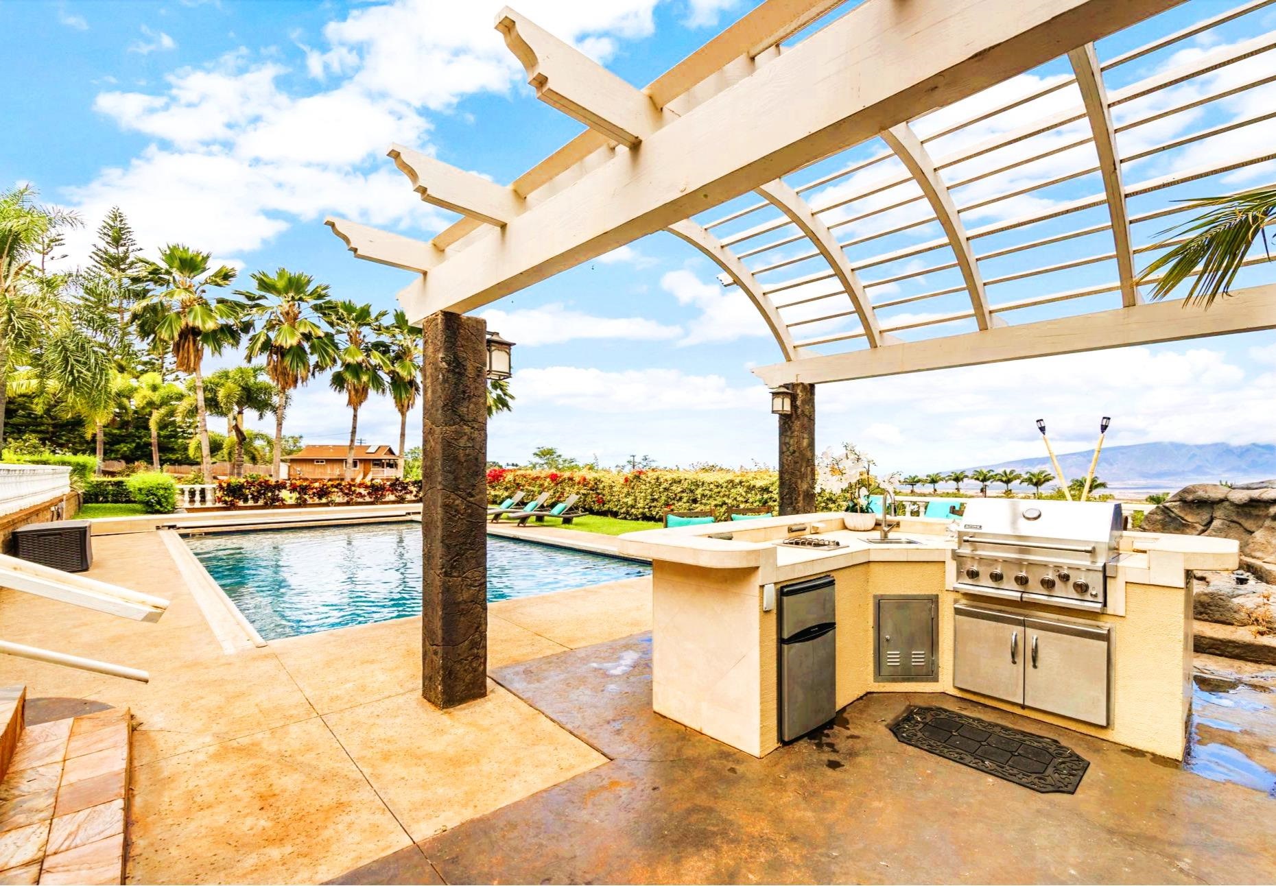 Magnificent Bicoastal Views! Experience the Maui Dream with an extraordinary gated estate offering panoramic bi-coastal views from nearly every room. Perfectly situated on 4.4 acres along the temperate lower slopes of Haleakala, this property combines luxurious privacy and the freedom to create your legacy estate, an equestrian haven, wedding or event venue, or agricultural retreat. There is plenty of space for a barn, a potential riding ring, and additional outbuildings. Enter through grand leaded-glass double doors into soaring ceilings, gleaming marble floors, and an expansive open-concept living area designed for both sophisticated entertaining and serene relaxation. The chef's kitchen with a walk-in pantry flows into an ocean-view formal dining area, while seamless indoor-outdoor living invites you to entertain and unwind by the sparkling pool, jacuzzi, "summer" kitchen, and fully equipped outdoor cabana. A graceful curved staircase leads to a spacious entertainment area. The palatial primary suite offers a wraparound lanai, spa-inspired en-suite, and sweeping coastal vistas. Additional features include an office/media room, full laundry room, two-car garage, and multiple covered parking areasideal for car enthusiasts or a sports-lifestyle collection. Rental potential is plentiful with multiple bedrooms, versatile living spaces, and a separately gated two-bedroom 'ohana complete with its own yard and drivewayperfect for guests, extended living, or rental income. Allow your property to help support your lifestyle. The estate is adorned with lush tropical fruits and flowers, including giant mango, coconut palms, plumeria, papaya, liliko'i, citrus, bougainvillea, ti, bamboo, and a rare Princess Palm, creating a lush, fragrant oasis for relaxation, privacy, and income potential. Privately gated and accessible via winding palm-lined driveways, the property is centrally located – just minutes from Maui's finest beaches, championship golf courses, world-class dining, luxury shopping, renowned surf and windsurfing spots, and the airport. Whether you envision a full-time residence, a home away from home retreat, an investment property, or a multi-generational estate, this exceptional offering invites you to live, work, and play in paradise. Your Maui sanctuary awaits. Schedule your private tour today.