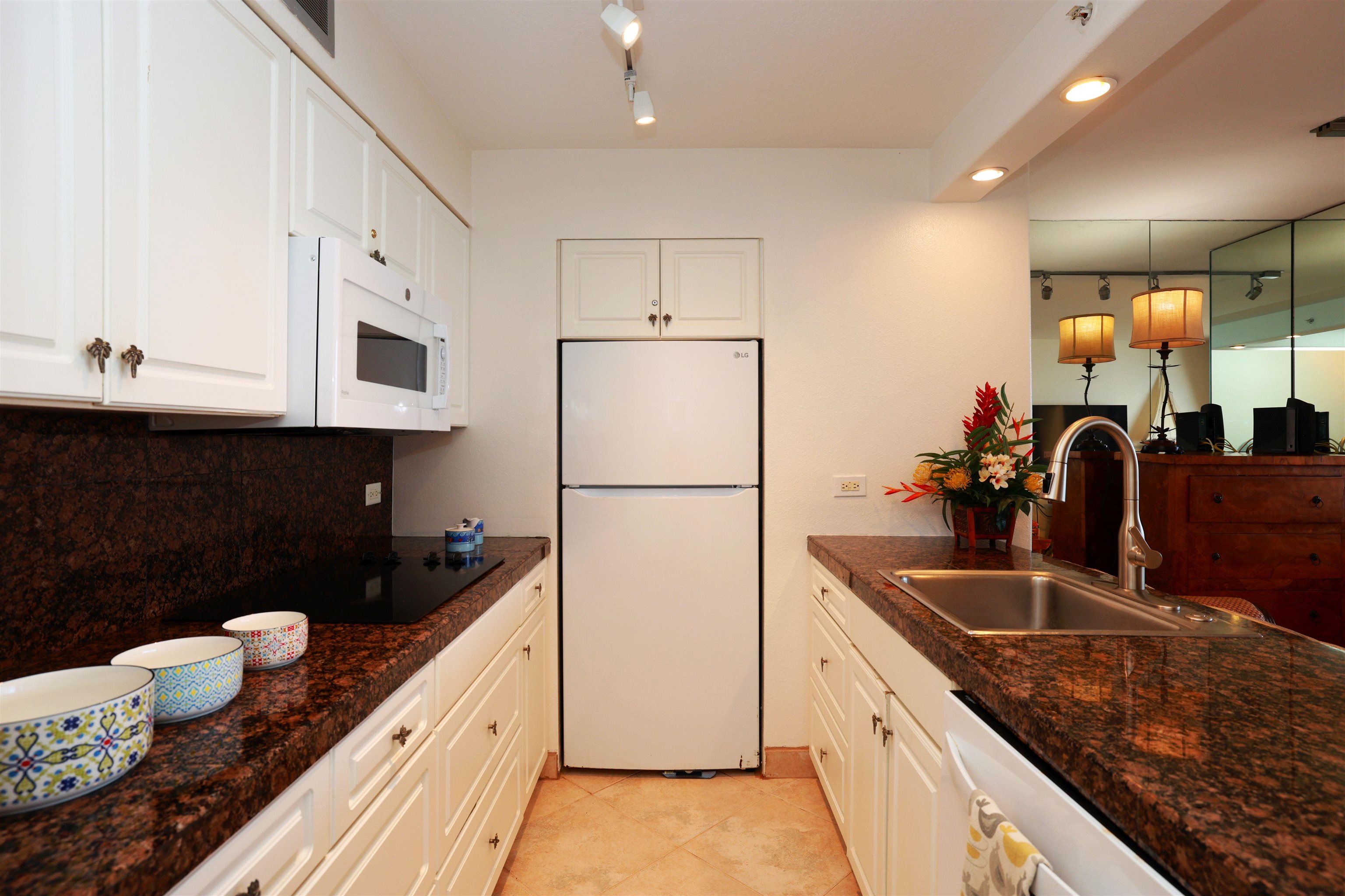 NEWLY RENOVATED IN FALL 2025…..VIEWS VIEWS VIEWS! Rarely does a 4th floor, direct beachfront Mahana studio become available until NOW! This spacious studio condominium is located directly on the famous white sand beaches of Kaanapali North Beach. Offering 180 degrees of unobstructed island, ocean & sunset views from YOUR lanai, this is the best of West Maui resort living! Mahana 412 is a studio of 456 square feet of living area. Sold furnished with exception of the 7-drawer wooden office table. The Mahana of Kaanapali is a beachfront high-rise condominium community that consists of 216 units across two 12-floor buildings. The property includes pool, spa and BBQ amenities. The Mahana is zone HOTEL-and allows transient vacation rentals. The monthly HOA fee is $1,935.56 (Elec, Gas, Water, Sewer: $262.71 + Maintenance fee: $640.66 + Reserve: $378.14). Special Assessment: $654.05 per month (through March 2027-current balance as of 3/31/25 is $23,545.92). Property is currently occupied with fire-evacuee victim (aka Lima Charlie Inc): $6,000 per month plus HOA $2,436.50. Lease ends 7/31/2025. YOUR Time is Now.