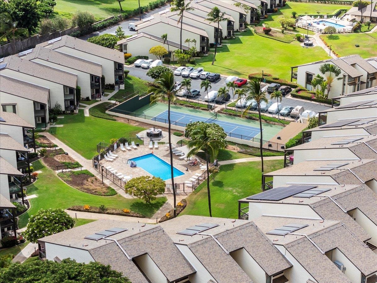 If youve been searching for something special in South Kihei, this top-floor, two-level condo at Hale Kamaole could be exactly what youre looking for. With 2 bedrooms and 2 bathrooms, plus a rare grandfathered loft, theres plenty of room for family or guests. The main floor bedroom includes a queen bed and shares the guest bathroom, which features a shower. Upstairs, the primary suite offers a king bed and a private en-suite bathroom with a walk-in shower. Both bedrooms are equipped with air conditioning and ceiling fans for added comfort. The loft area provides additional sleeping space with twin trundle beds and its own ceiling fan. Bright vaulted ceilings make the space feel open and airy. Step out onto the lanai to enjoy partial ocean viewsideal for your morning coffee, evening sunsets, and whale watching in season. The unit also includes an in-unit washer and dryer. Located in Building 4, one of the most desirable locations within the complex, youll have elevator access and be close to two resort-style pools, tennis courts, and BBQ areas. Right across the street is Kamaole Beach III, known for its sandy shoreline, great snorkeling, and frequent turtle sightings. Restaurants, shops, and markets in Kihei are just minutes away. Fully furnished and turnkey, this condo is ready for you to move in or rent out. The maintenance fee includes water, trash, basic cable, WiFi, common area maintenance and insurance. Contact your REALTOR today to schedule a showing.
