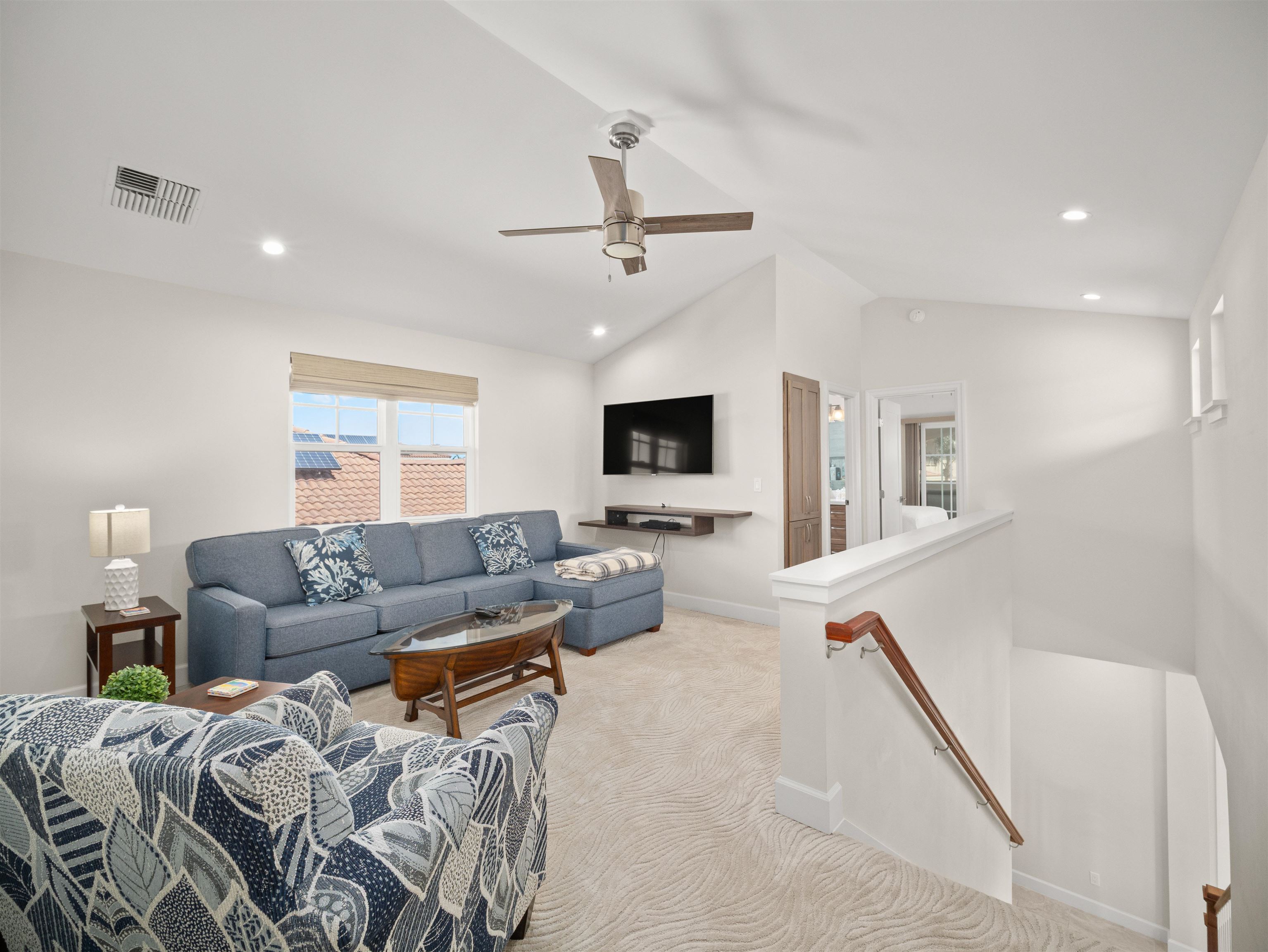 Best described as showroom condition, this lightly lived-in 3-bedroom, 2.5-bath home showcases the preferred Hokulani floor plan with the primary suite conveniently located on the first level. The open-concept design highlights 12-foot ceilings, abundant natural light, and seamless indoor-outdoor living. Upstairs youll find two spacious guest suites, a full bath, and a generous entertainment area that opens to a private lanaiperfect for relaxing or hosting visiting family and friends. Offered fully furnished with designer pieces, this home is truly turnkey and ready for immediate enjoyment. The two-car garage provides excellent storage, making it an ideal choice for a primary residence or lock-and-leave second home. Hokulani Golf Villas is a gated community surrounded by the back nine holes of the Maui Nui Golf Course, designed to create a serene, open-space atmosphere with manicured grounds, a stunning infinity pool, and clubhouse amenities. Enjoy the best of South Maui livingminutes from world-class beaches, dining, and shopping, yet tucked away in one of Kiheis most peaceful and beautifully maintained neighborhoods.
