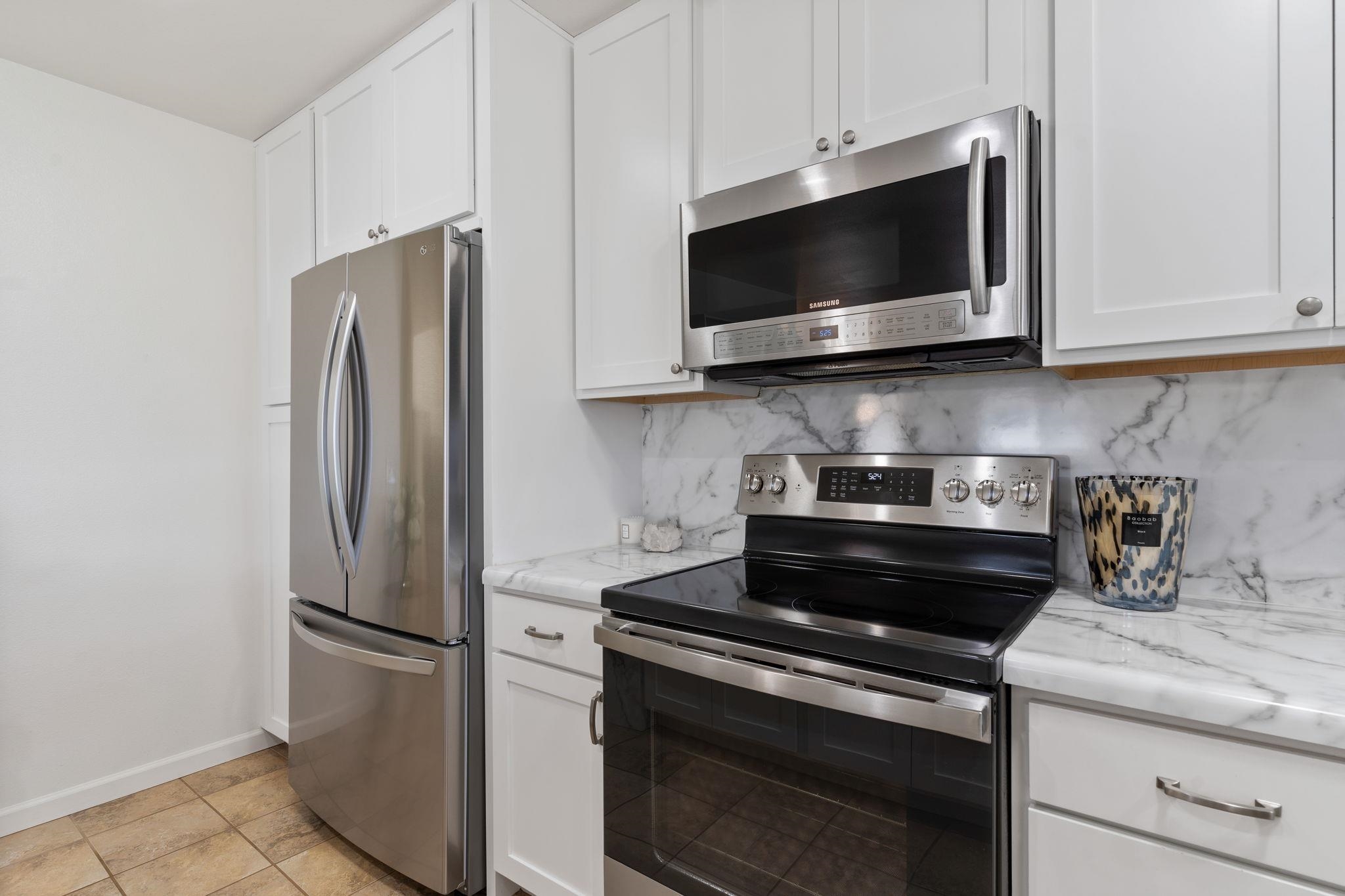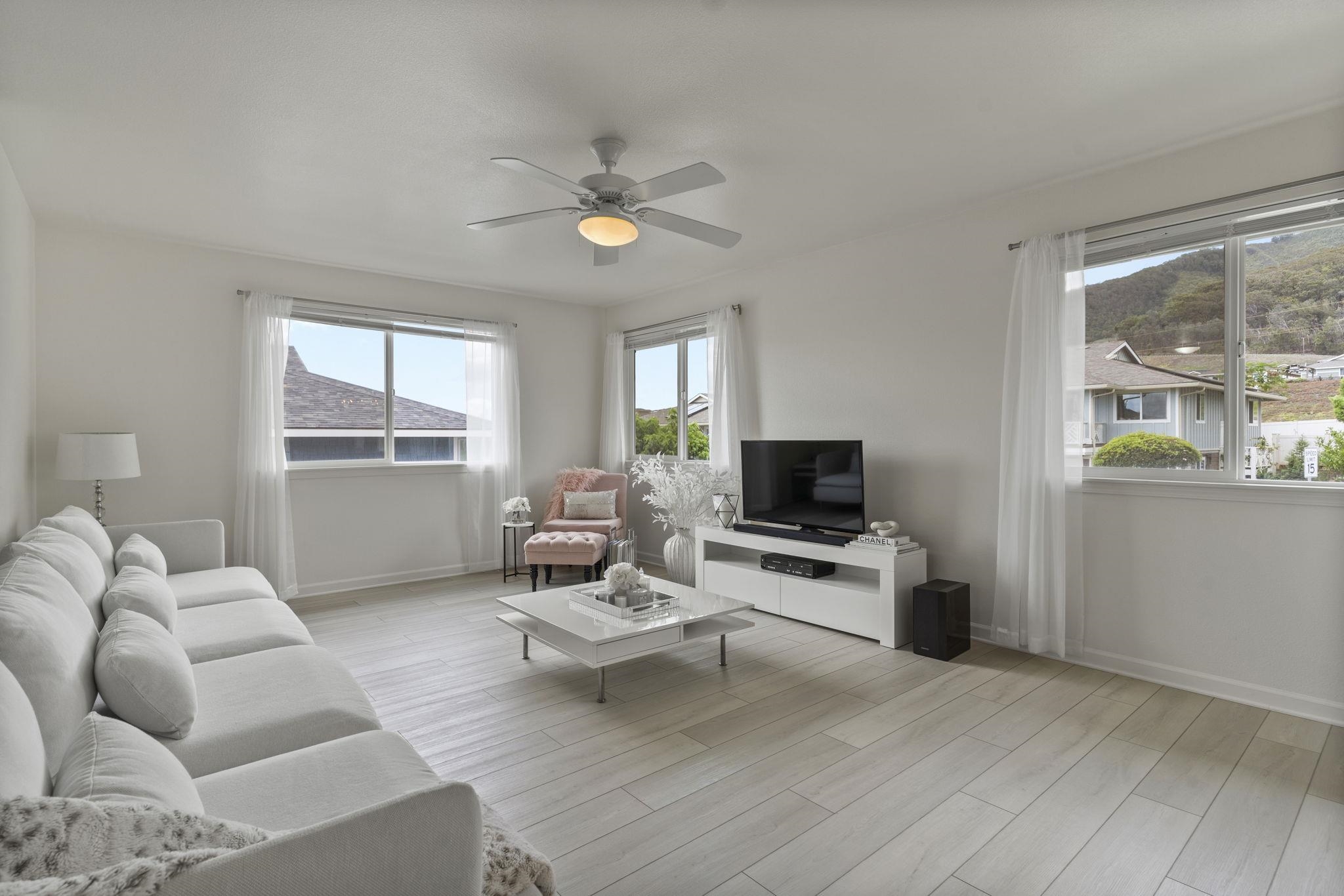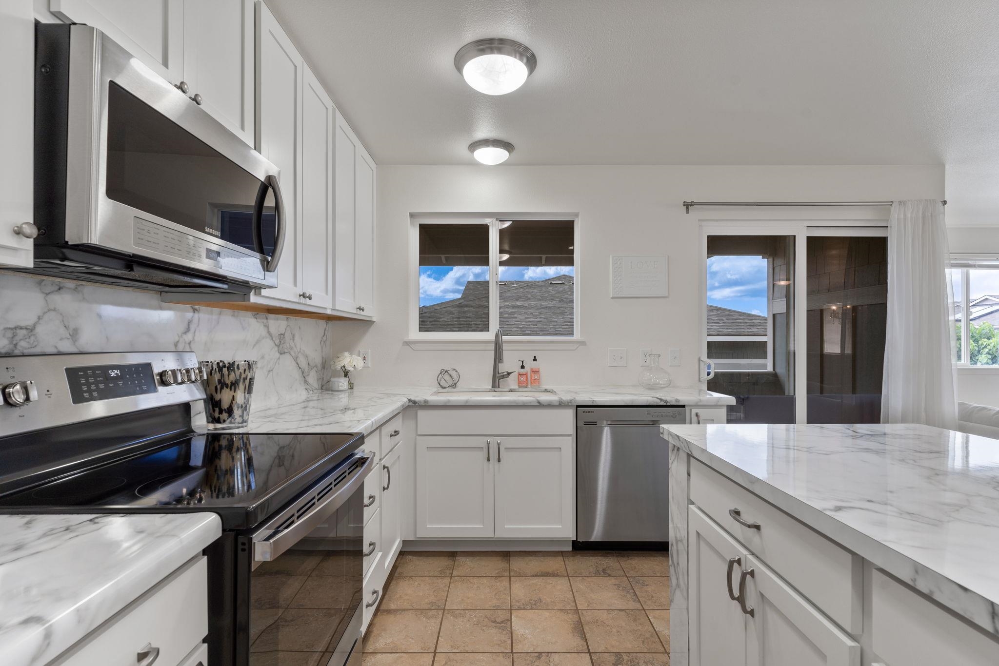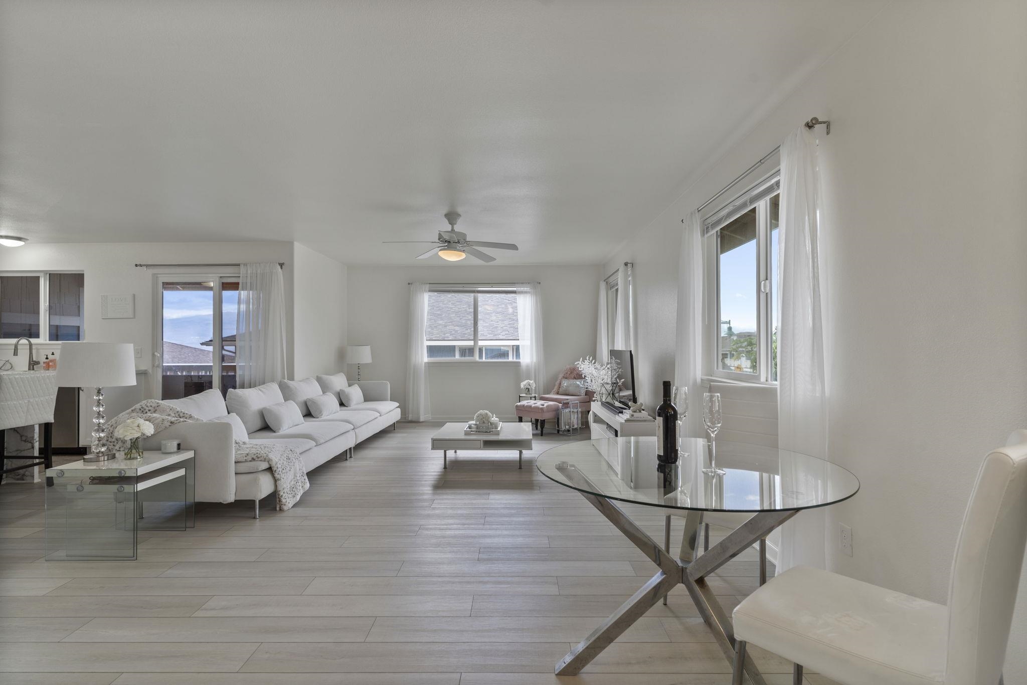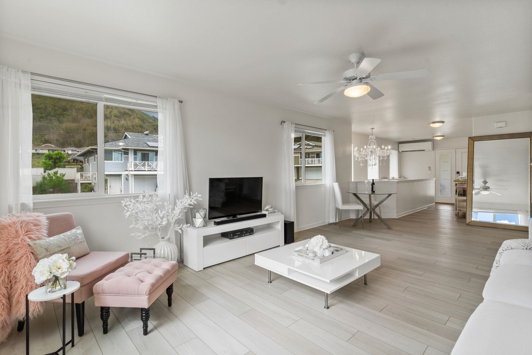 Everything you need at an outstanding value, this modern newly upgraded home awaits you in the primely located, highly sought after neighborhood Kamani at Kehalani. This exquisitely appointed 3bd/2.5 bath spacious townhome is 1465 sq. ft w/a peekaboo ocean view from the upstairs balcony! Upgraded with new stainless steel appliances, full air conditioning & window treatments throughout, a fully fenced yard w/custom gate & optional doggy doors, professionally maintained sprinkler system and landscaping, a spacious 2-car custom epoxy garage w/ XL freezer chest & additional storage shelving, & an XL commercial size washer/dryer set in the laundry room. Other special features include all new designer paint throughout, enhanced marble fx countertops, upgraded ivory cabinets throughout, custom built-in walk in closet room (can be converted to a bedroom, office, or nursery), designer lighting fixtures, solar hot water system, & dyson air purification system. A reverse osmosis filtered water system is already designed in kitchen; ready for hook up. Centrally located, you can walk to the 4 acre pocket park or the beautiful surrounding walking/biking paths or take an ultra short drive to Foodland grocery store, Coffee Bean, Starbucks, Jamba Juice, Longs, and all the Kehalani Pkwy shops. Also within close proximity; Pu'u Kukui Elementary (walking distance), War Memorial hospital, & charming Wailuku town. Arguably the best floorplanin the entire community. Comes furnished as photographed. For all info: just-pended-hawaii-2.aryeo.com/sites/ynbeoml/unbranded Available for 12 month+ lease. $4900k/mo + utilities.