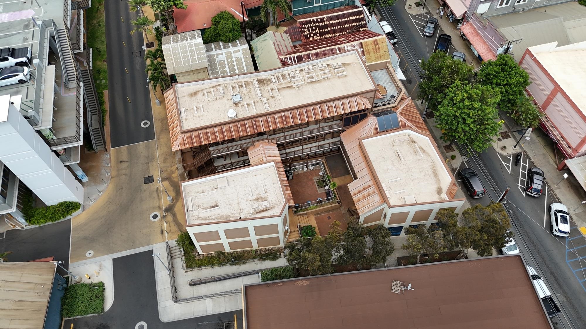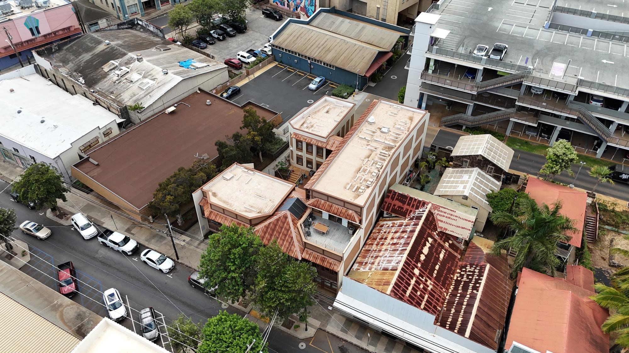Prime commercial offering in the heart of Wailuku featuring a 9,560 SF office complex comprised of three buildings arranged around a central plaza. The property includes 11 office units with common restrooms and benefits from adjacency to a newly developed municipal parking lot, enhancing accessibility for tenants and visitors. Several vacant offices present an excellent value-add opportunity through renovation. Ideal for an owner-user seeking a central business location or an investor looking for repositioning potential.