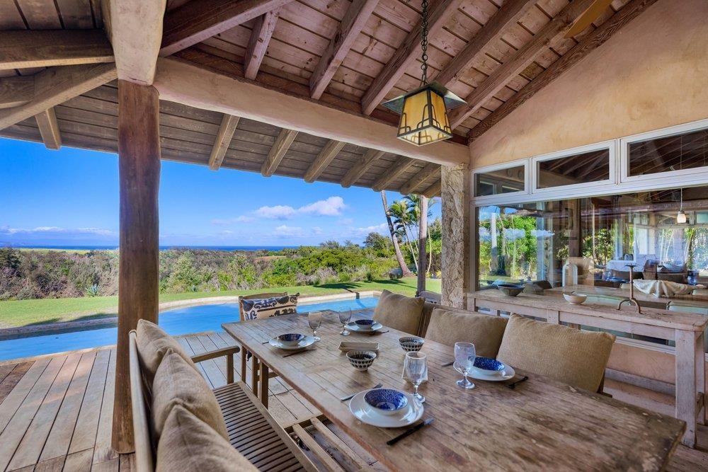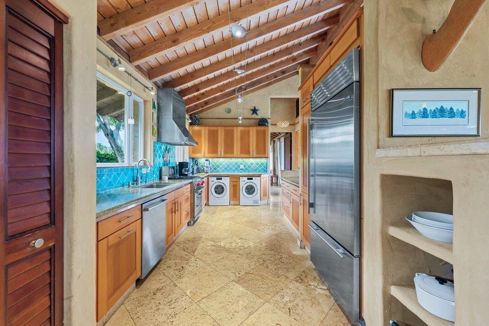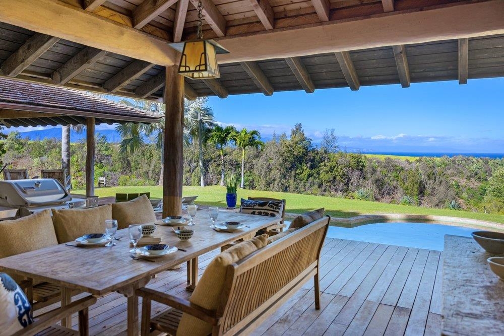 Custom-built in coral, this exceptional home is perched on the edge of Maliko Gulch in Haiku on Mauis North Shore. Surrounded by ocean views and nature, the property offers rare privacy and tranquility, with virtually no rooftops in sight. Set on a gated 2-acre estate, the property features a detached three-car carport, a clay tennis court, and a swimming pool. The main residence that is furnished offers three bedrooms (king, queen, queen) and three bathrooms, plus an office, and includes two outdoor showers that enhance the island living experience. The home features tiled floors throughout with no carpet whatsoever, and most walls are finished in Venetian plaster. The primary wing is a newer addition. The kitchen is equipped with a newer Wolf gas range and a Sub-Zero refrigerator. A spacious ipe wood deck provides an ideal setting for entertaining. The primary bedroom occupies its own private wing on the far left side of the home, complete with a generous walk-in closet and a covered deck featuring a hammock. Located in a quiet Haiku subdivision just past Maliko Gulch, the property enjoys convenient access to some of Mauis most desirable destinations: Hookipa Beach Park is only 23 minutes away, Paia Town is a 5-minute drive, and Kahului is approximately 20 minutes away. The property is not fenced.