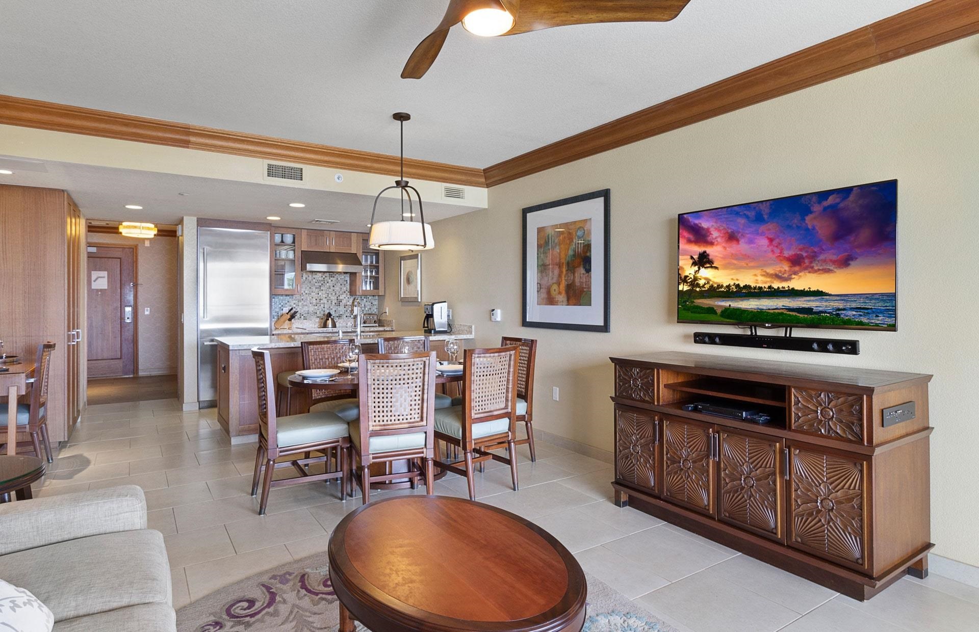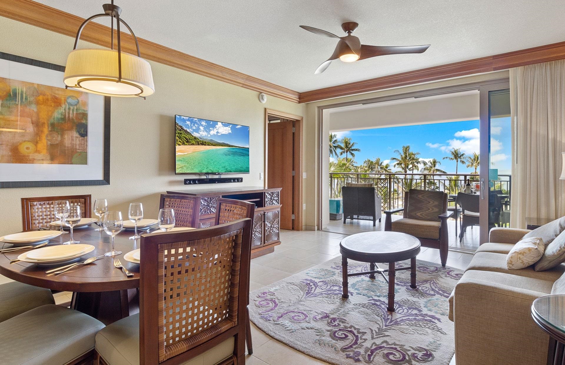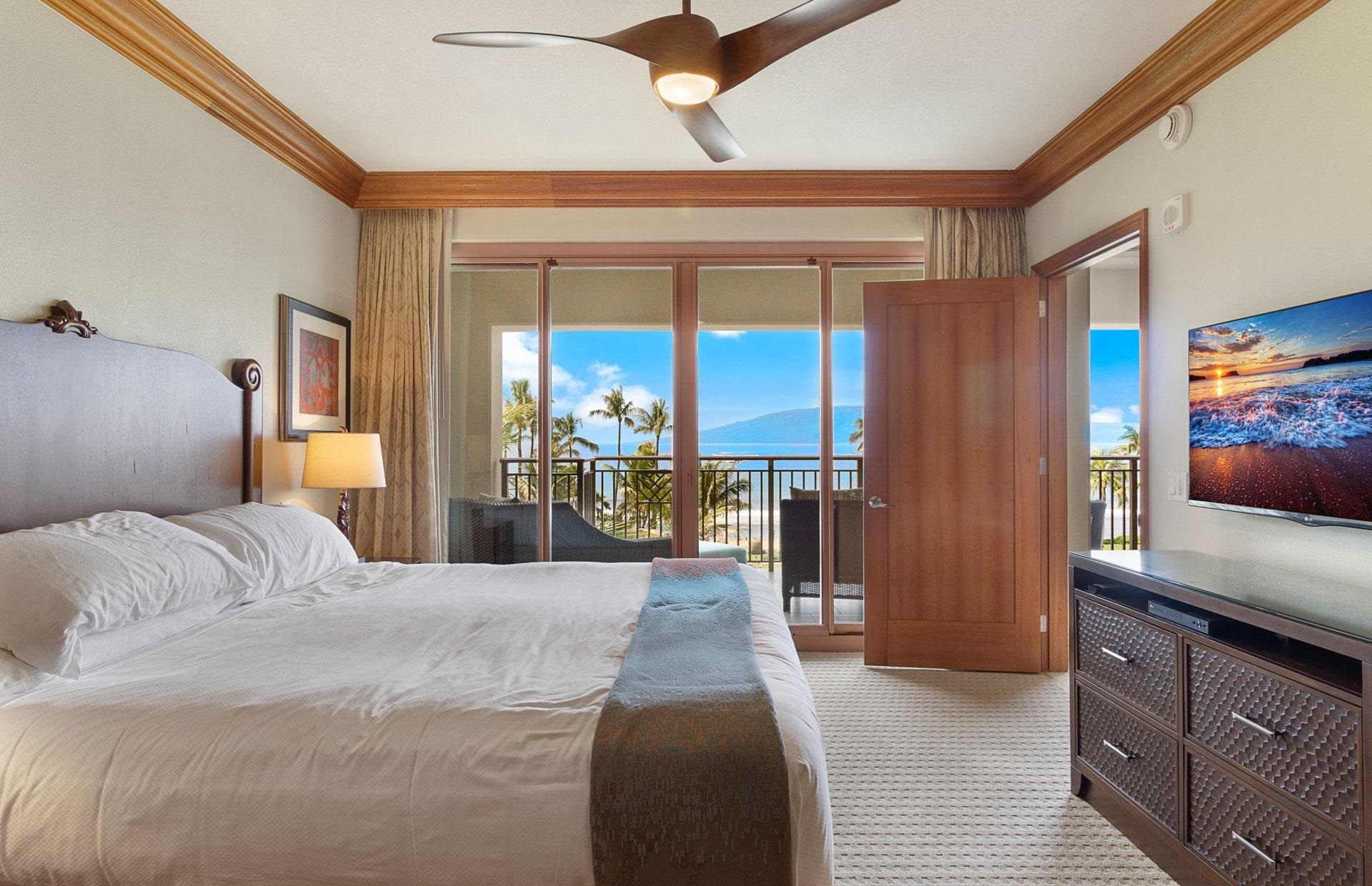 This is a 2/52 undivided interest fee simple deed for apartment number 3307 at the Hyatt Vacation Club Maui on Ka'anapali Beach with fixed time usage rights for weeks 51 and 52 every year. These usage rights entitle the owner to a guaranteed reservation for the 14 consecutive nights checking in on a Saturday and checking out on a Saturday that includes Christmas Eve and New Year's Eve. The owner shall also have exclusive rights to reserve and then use and occupy any 2BR/2BA unit on floors 1-4 (floor request is first come first serve with the other 29 2BR Lower Level owners). There are are a total of 30 2BR units on floors 1-4 all with Ocean Views (see unit mix photo). First year of occupancy is 2026 with a reservation for 12/19/26 – 1/2/27. Price does not include 2026 HOA dues of approx. $8,590.68 already paid by Seller and to be reimbursed by Buyer at close of escrow. Sleeps 7 guests. All utilites, property taxes and reserves for regular remodel and refurnishing cycles included in HOA dues. No resort fees. All parking is by valet which is complimentary. Daily housekeeping a la carte. Master Bedroom – King Size bed with lanai access and adjoining bathroom with two vanities, stand up shower, stand alone tub and private water closet. Second Primary Bedroom – Queen-size bed plus loveseat with twin-size pullout and an adjoining bathroom includes one vanity and shower/tub combo. Queen-size convertible sofa sleeper in living room. Flat screen smart TVs in all rooms. Full kitchen with Bosch appliances, J.A. Henckel cutlery and CaesarStone countertop with three bar stools. Dining room table seats six. Ceiling-to-floor accordian glass doors open up the entire living area to the lanai space with spectacular views of the Ocean and Lahaina. Lanai includes table, four chairs and a day bed. Washer and Dryer in closet next to the kitchen.